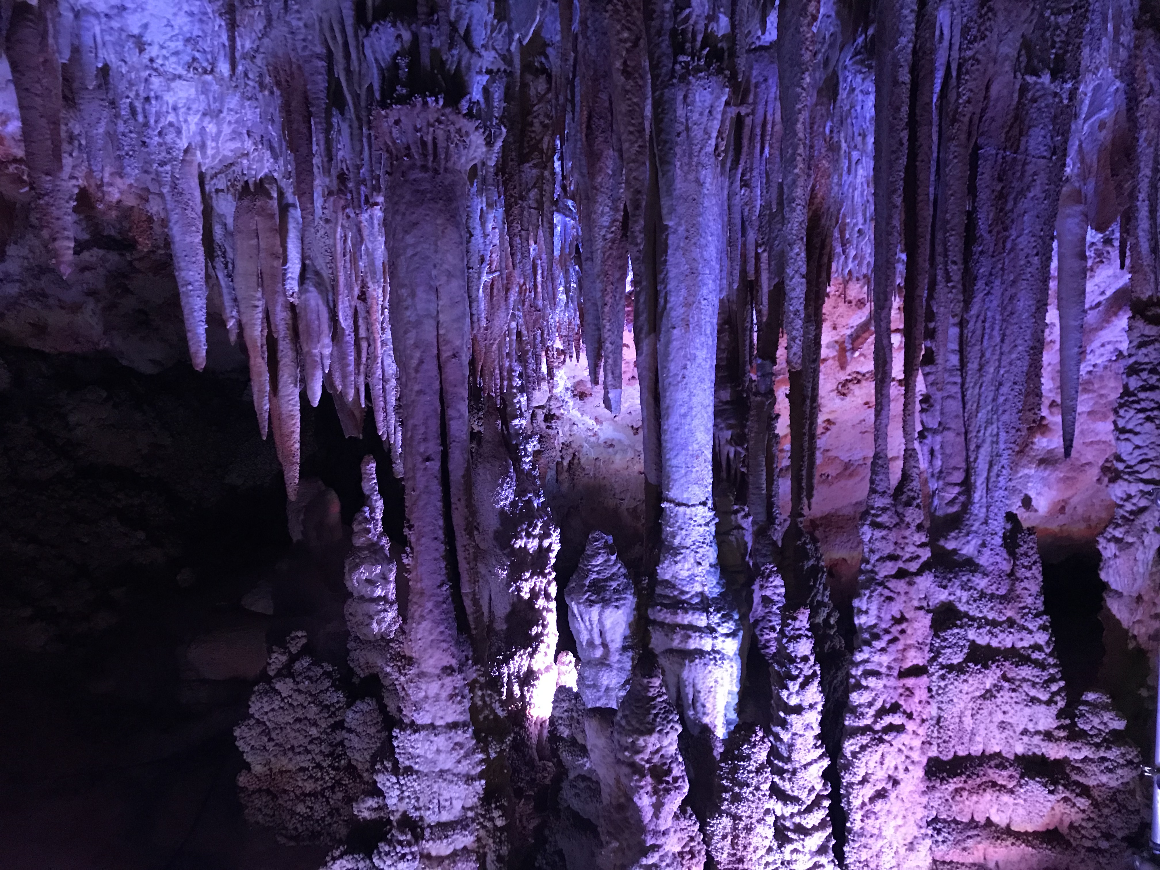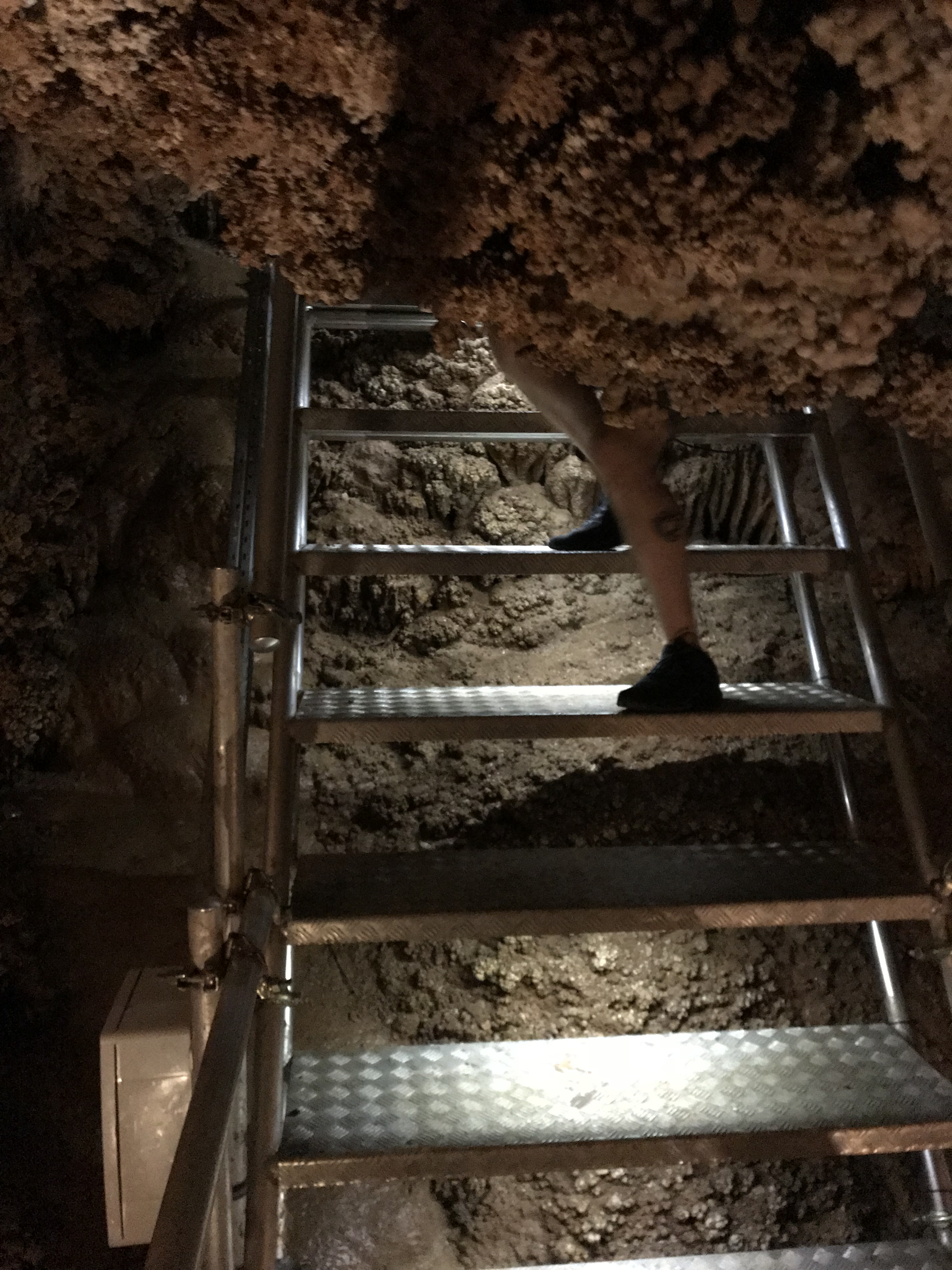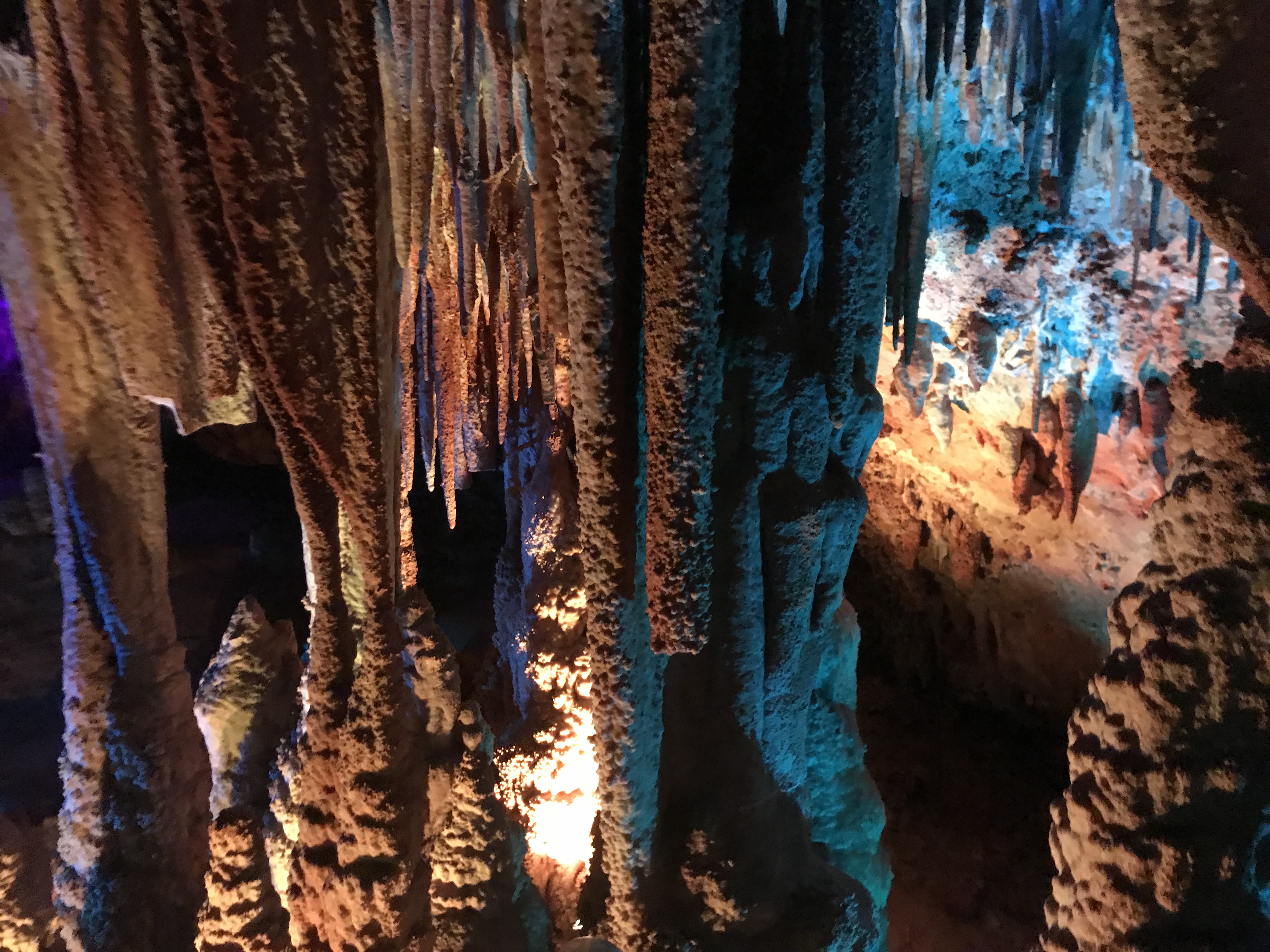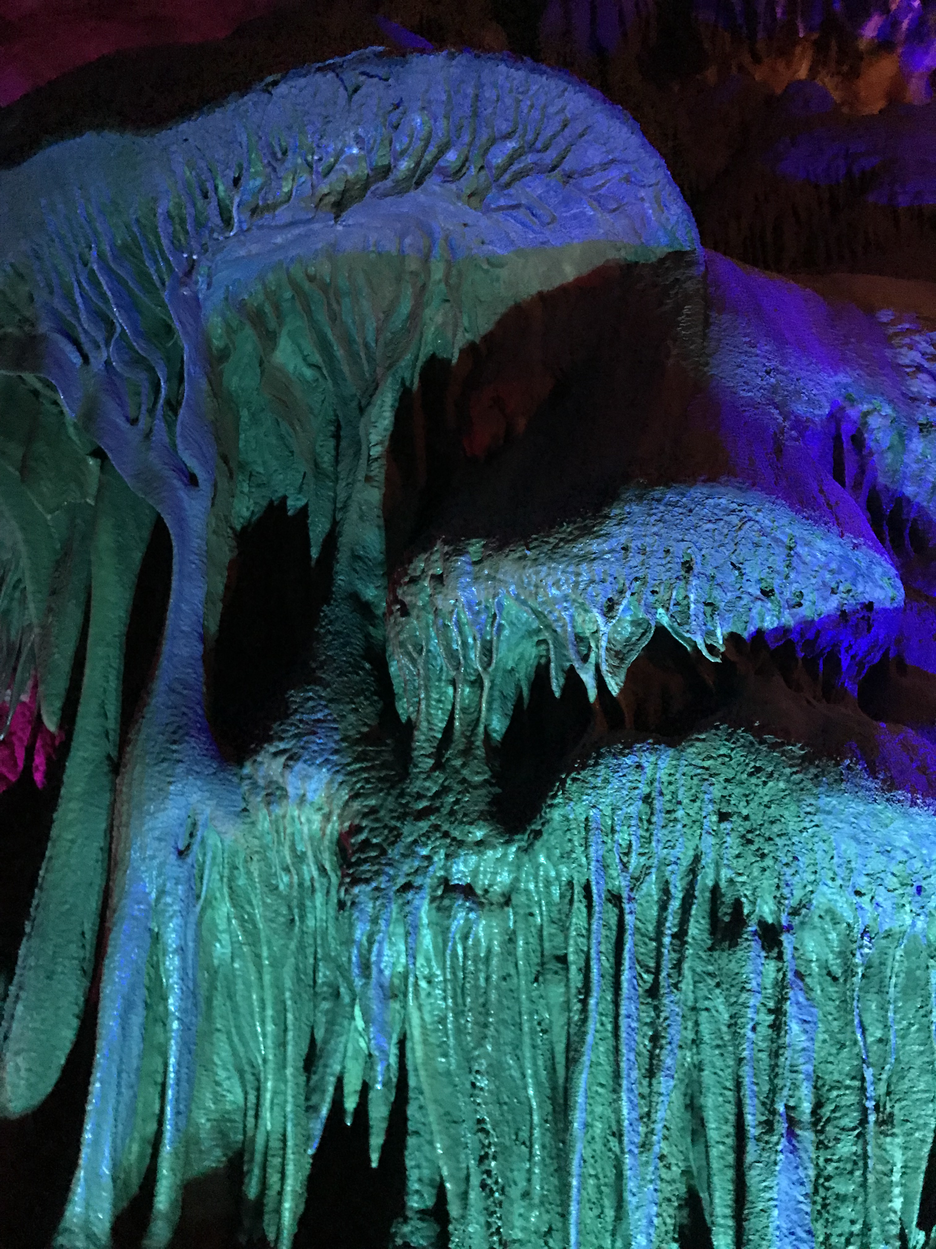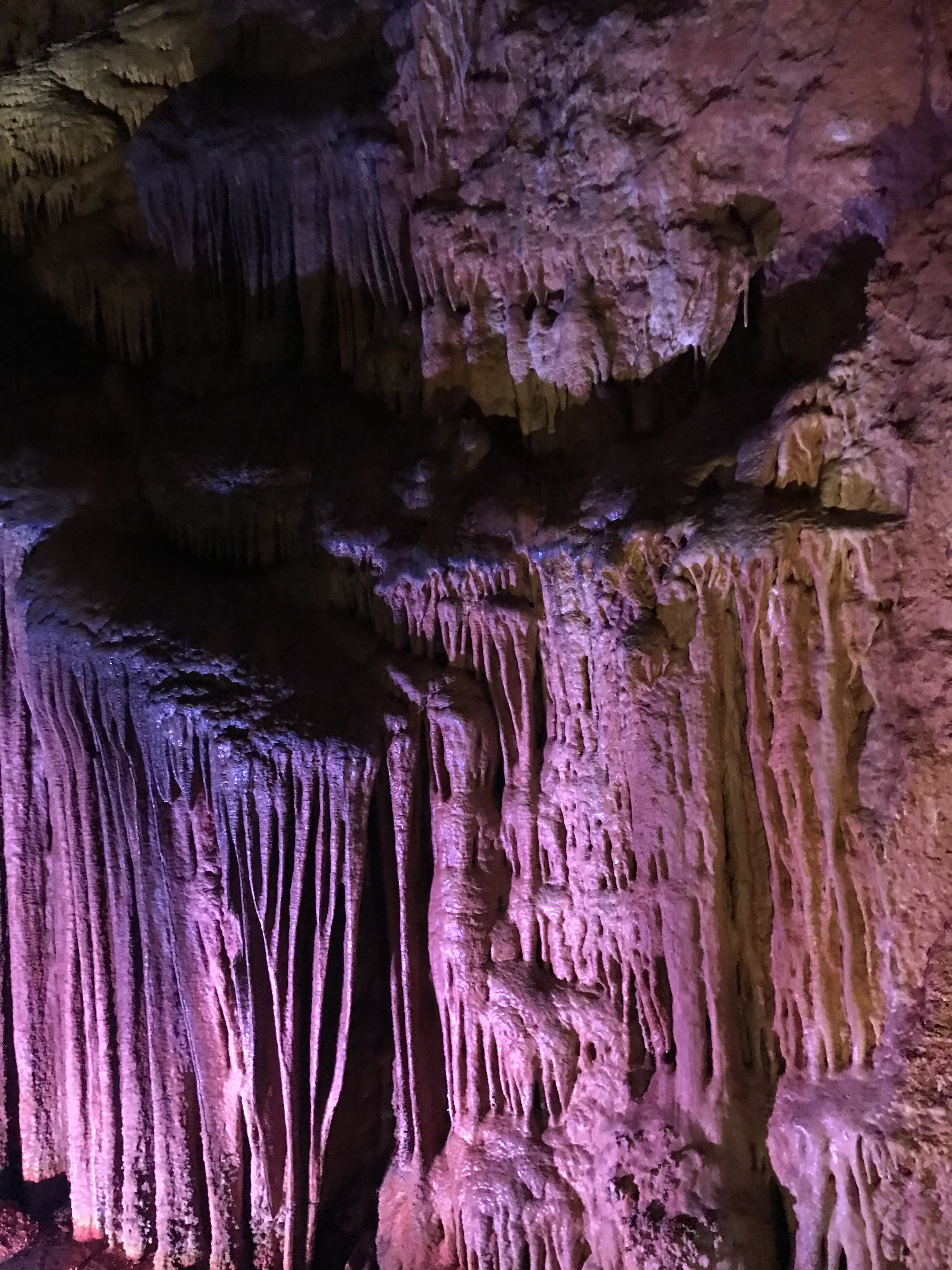 We stayed at the fortress for over an hour before heading back to our car. Next, we headed over the mountain and ended up at a cave at the foot of the mountain. There was some confusion between our tour guide and the people running the cave, as they did not want to take a group of less than 15, and we were 4 total. But the tour guide convinced them to let us in, and two more English speakers joined us. We had to put on hard hats, as some of the stairs were very close to stalactites and other rock formations within the cave. The cave was found in the late 20th century and only opened to the public in 2015, so the natural rock formations are still very well preserved. They had added walkways, stairs, and changing-colored lights, and it was absolutely beautiful.