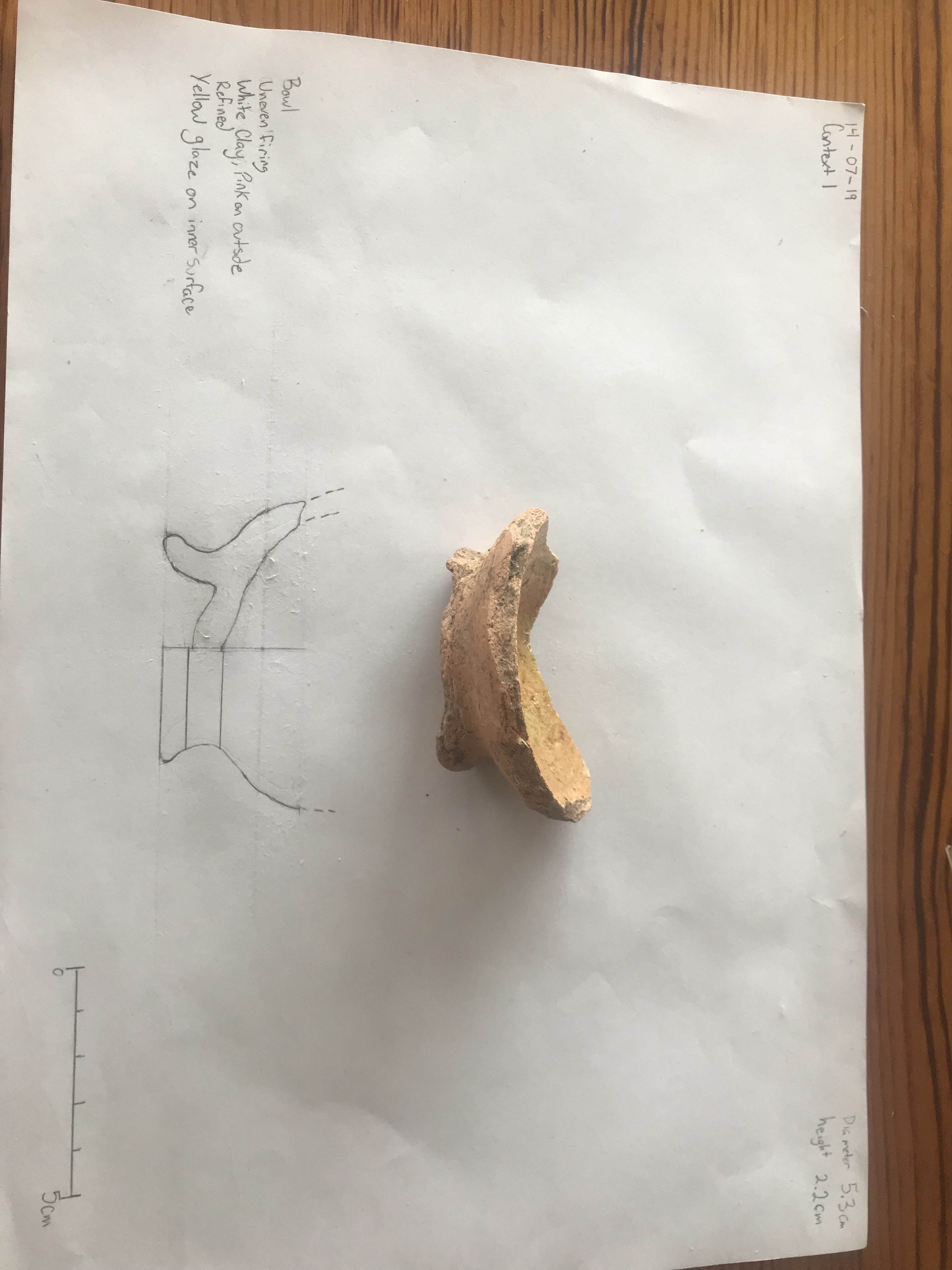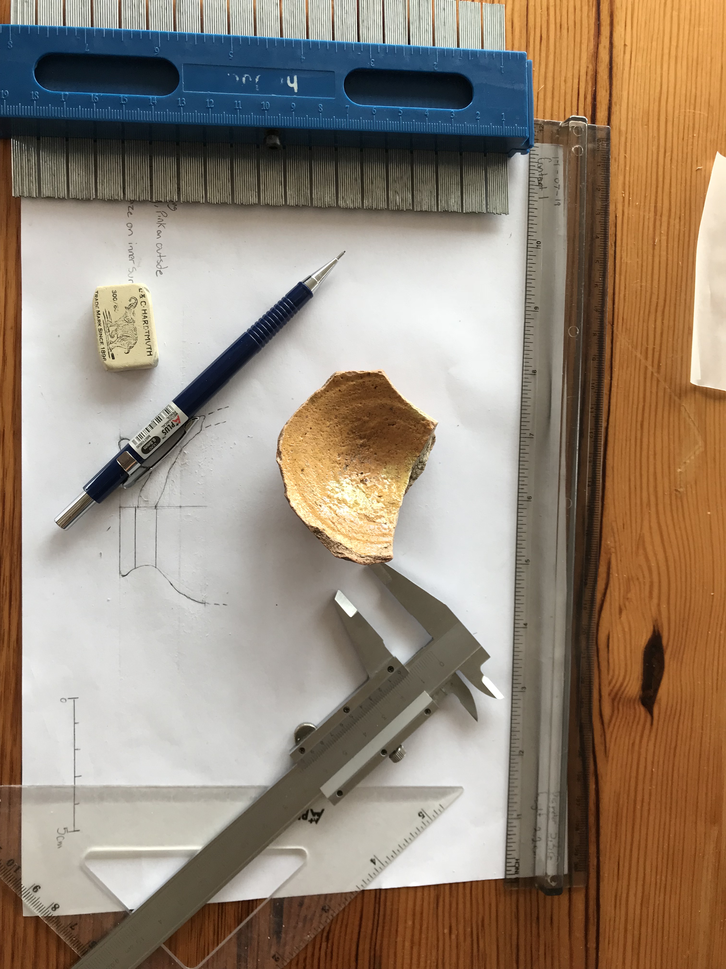 Sunday was supposed to be our free day, but the forecast didn’t look good on Friday, so we instead decided to do a day of work on Sunday to avoid the rain later in the week. We got to the site, and our task for the day was a horizontal plan and drawing. We got about halfway through before it began to rain. We had our daily tea break early, and then three of us headed back to the hotel to the second of our two drawing-pottery workshops. It was still ugly and rainy outside, so I was able to catch up on my blog posts from the last few days.