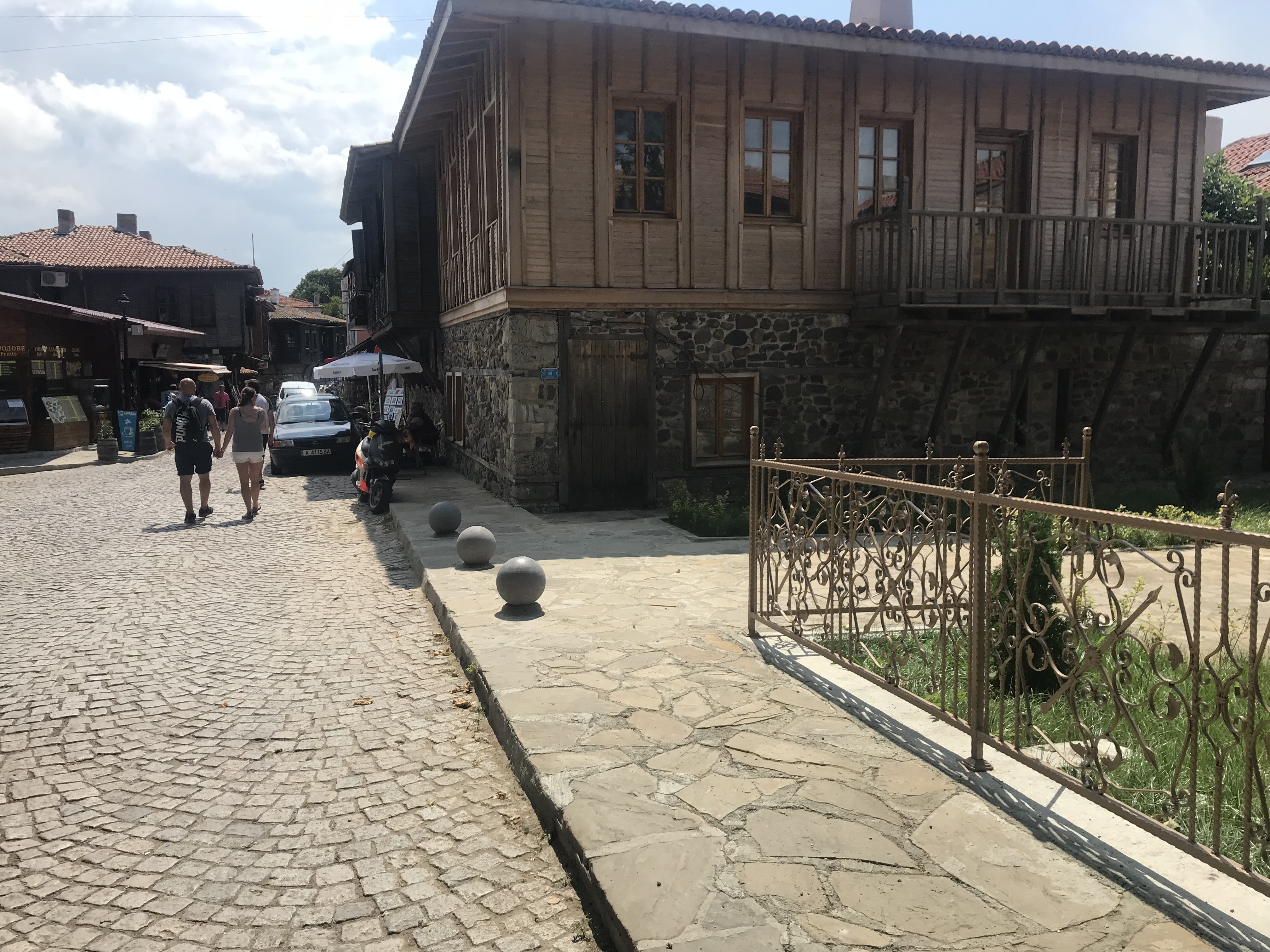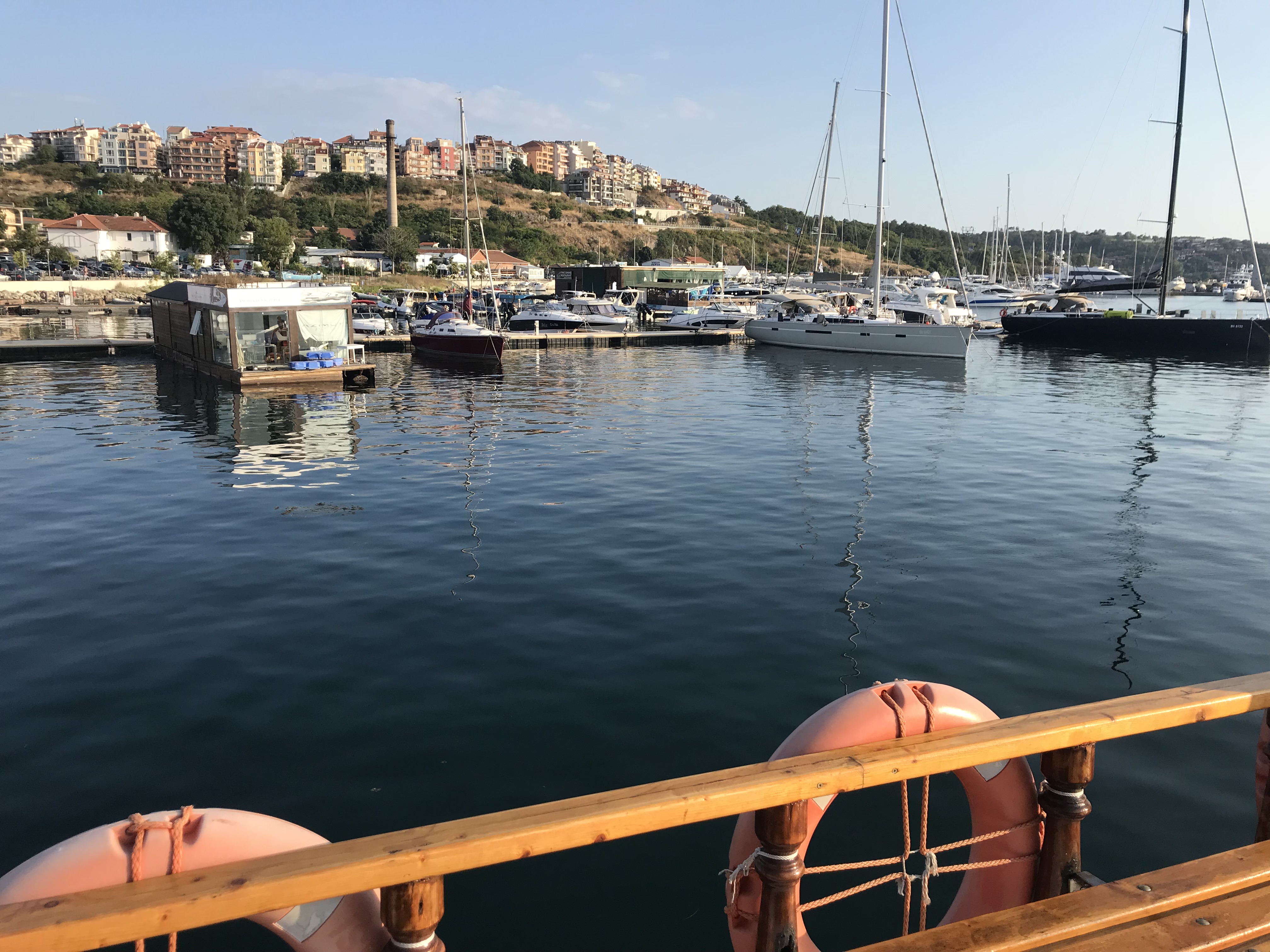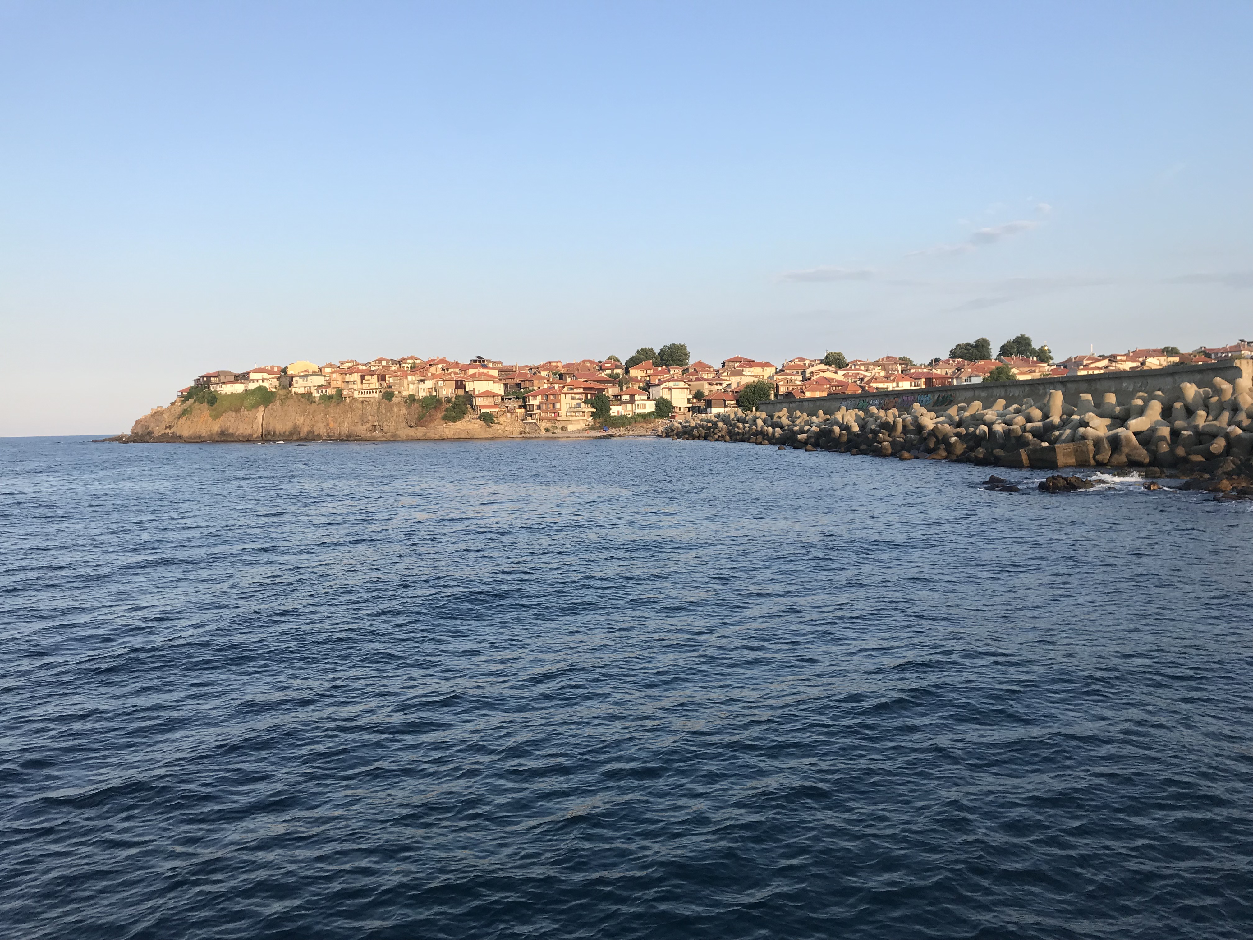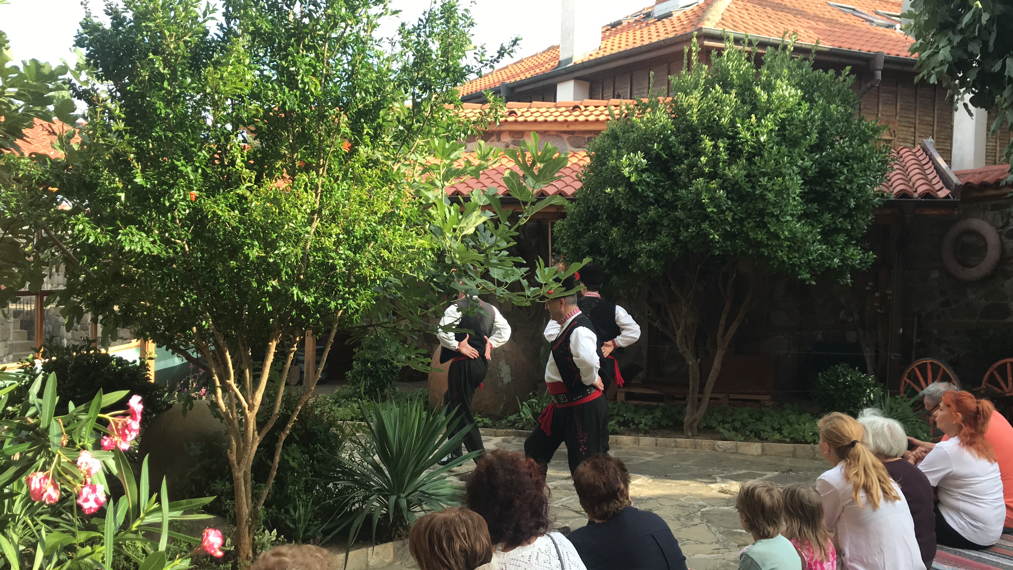 Then, after lunch, my roommate and I relaxed until it was time for our goodbye dinner. We walked through the old town to eat dinner at a traditional restaurant with a windmill overlooking the water. We were served the traditional salad, a chicken and creme dish, and homemade ice cream with green fig. It was a delicious meal, and we got to see and participate in more traditional dance. It was an amazing way to end my time in Sozopol.