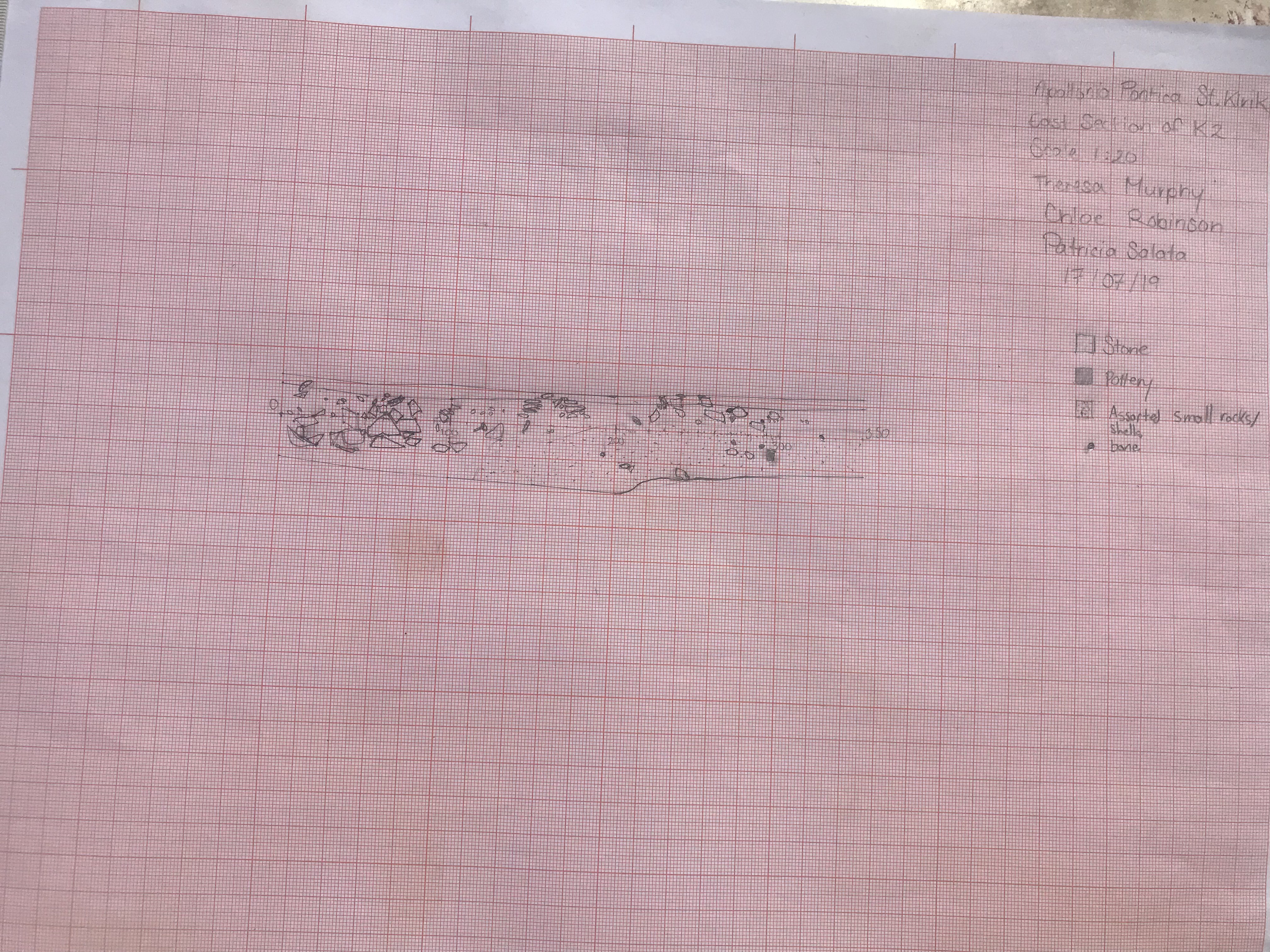 The next day, I learned how to draw a vertical plan and sorted some pottery. Then my roommate and I walked through the old town. We came back to the site in the afternoon for our first day of sorting pottery, where we were able to see some of the beautiful finds other people had stumbled upon at the site. After pottery sorting, a group of us had dinner and then walked around the new town at night.
