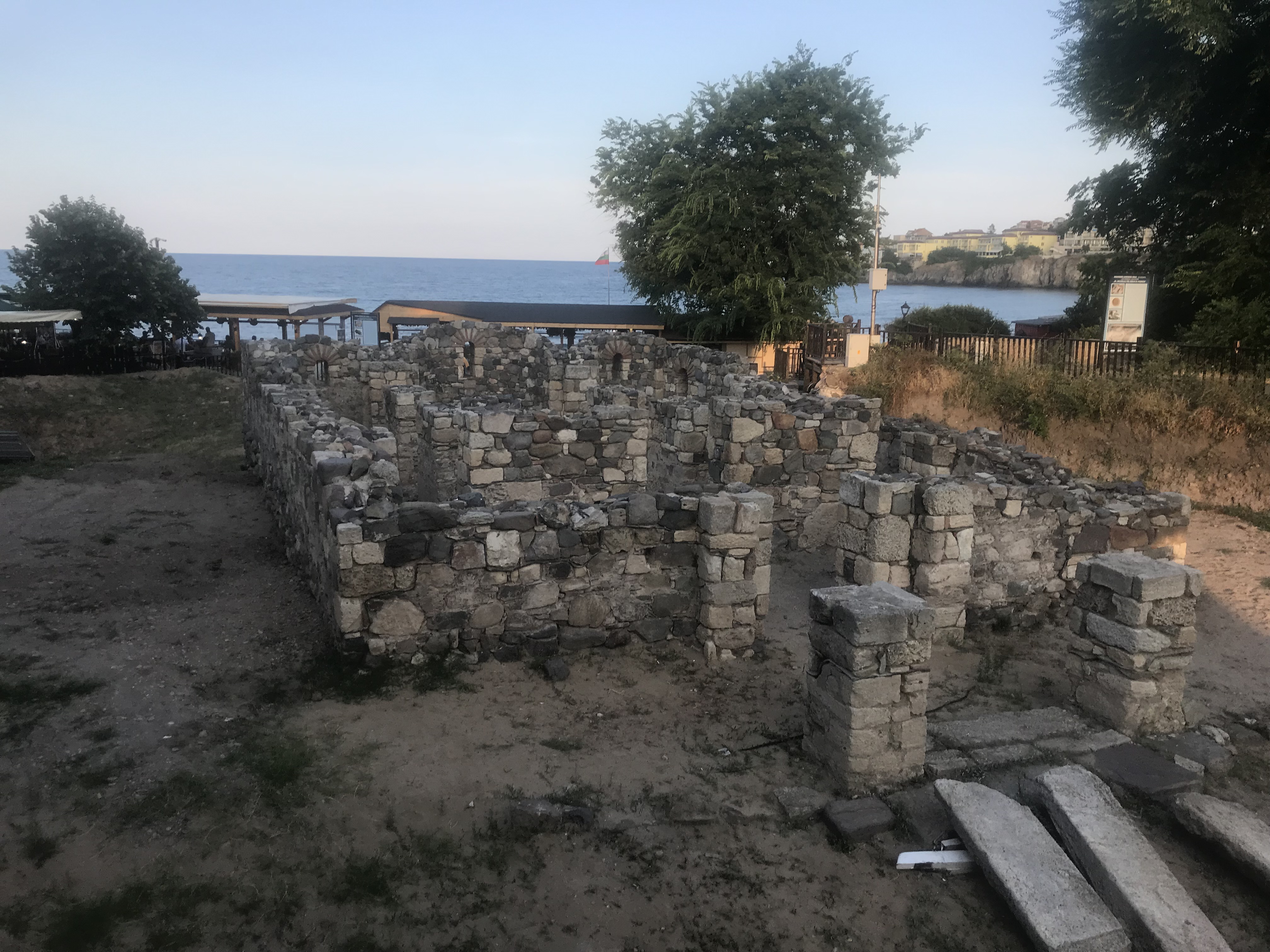 The next day, was probably the best of my trip. I finished the horizontal plan I was working on and then got to clean out and level an area for photographs using the brushes and pickax, my two favorite parts of digging. Then I had a great lunch with a couple of friends. Instead of having a workshop in the afternoon, we got to go to the Balkan Heritage Field School’s exhibition contained exclusively things found by students of various field schools throughout Bulgaria. One of my friends had been working on conserving a fish plate during his first two weeks there, and his plate was displayed in the exhibition. The mayor, the leader of the Balkan Heritage foundation, and a few others spoke, followed by some time to explore the exhibits, and then a short walk to a reception where they had traditional Bulgarian dancers performing. I got to participate in the dancing, which was so much fun! Afterwards, a group of my friends and I picked up some food and ate it on some rocks while watching the beginning of the sunset.