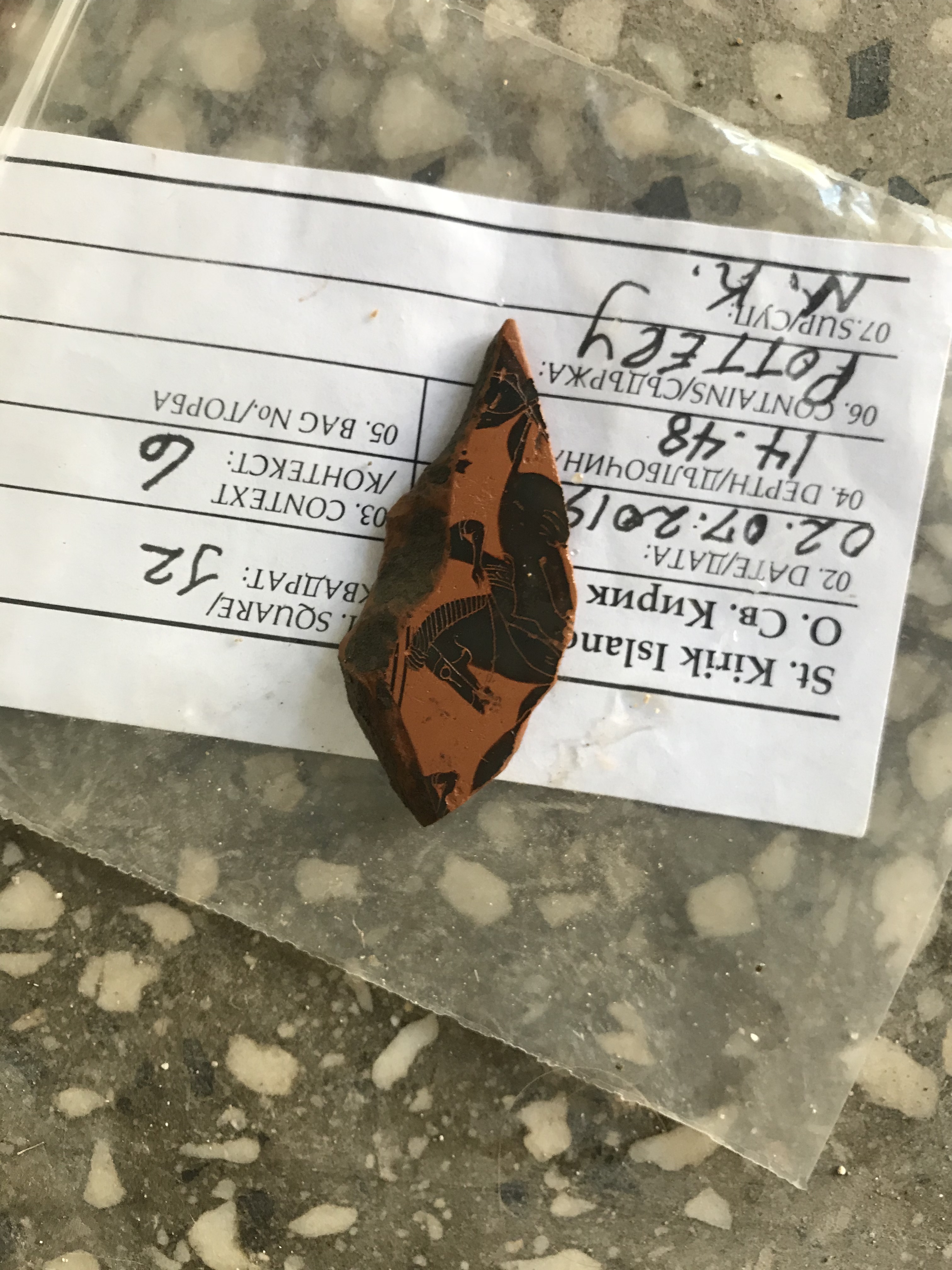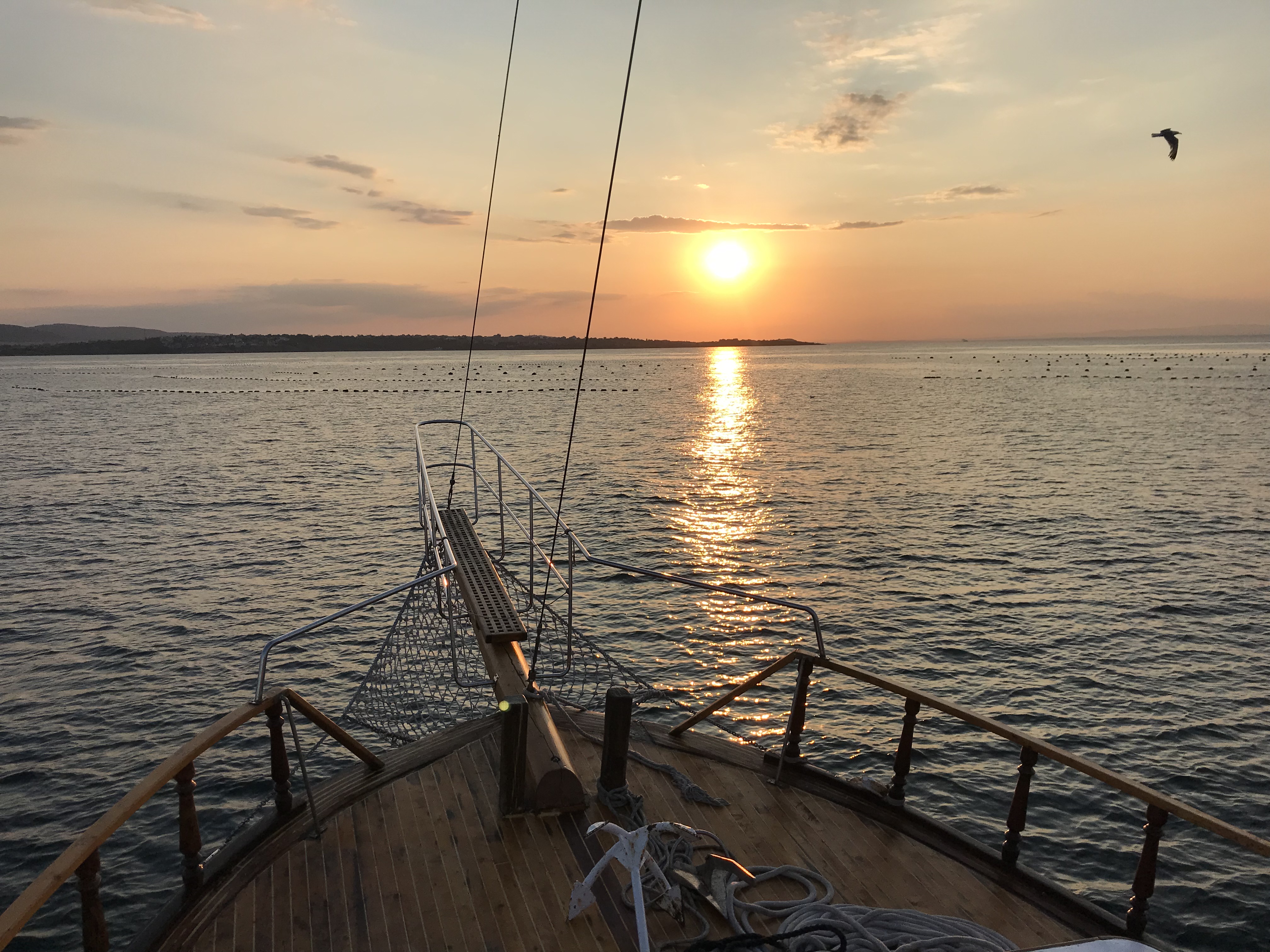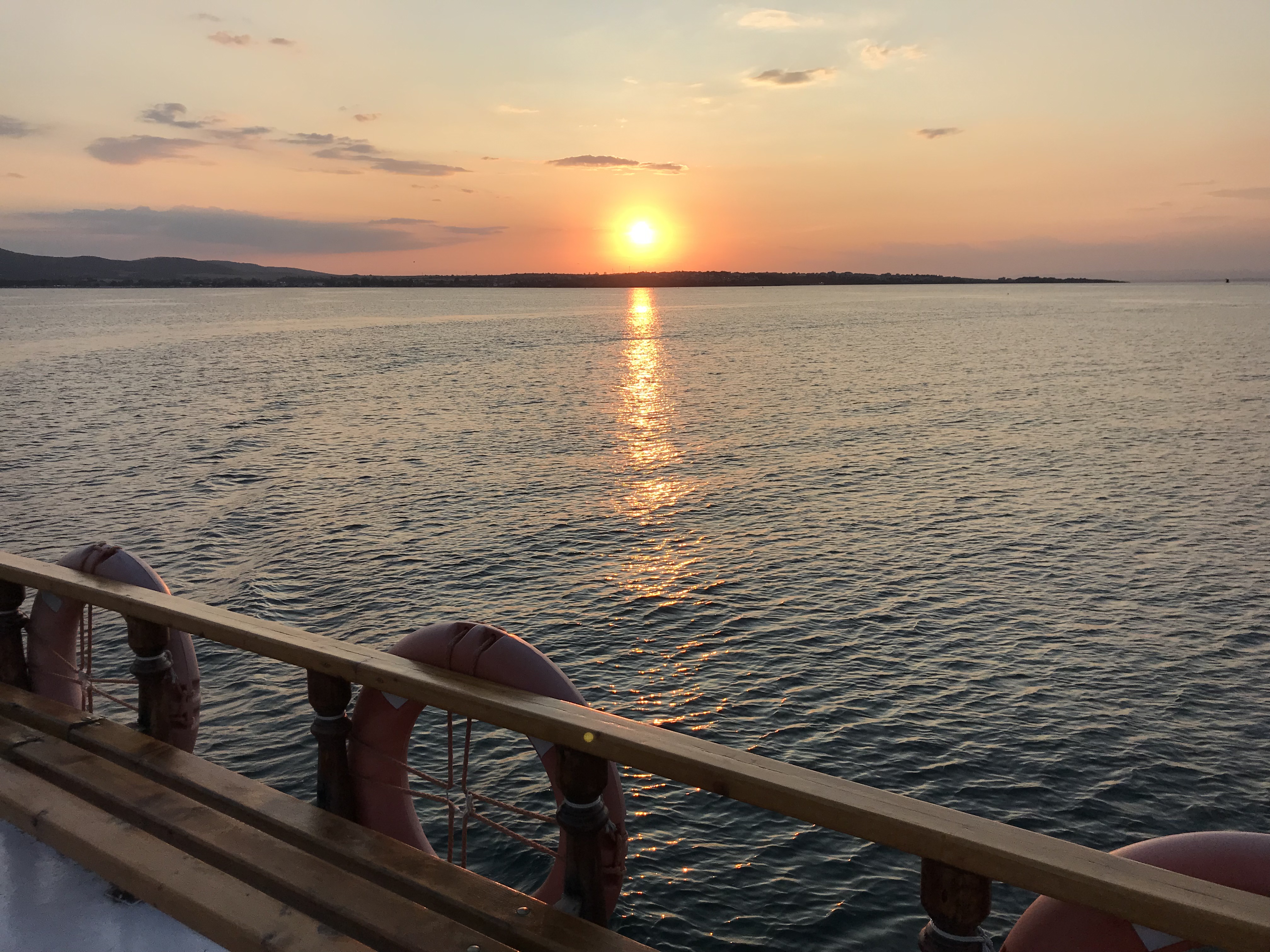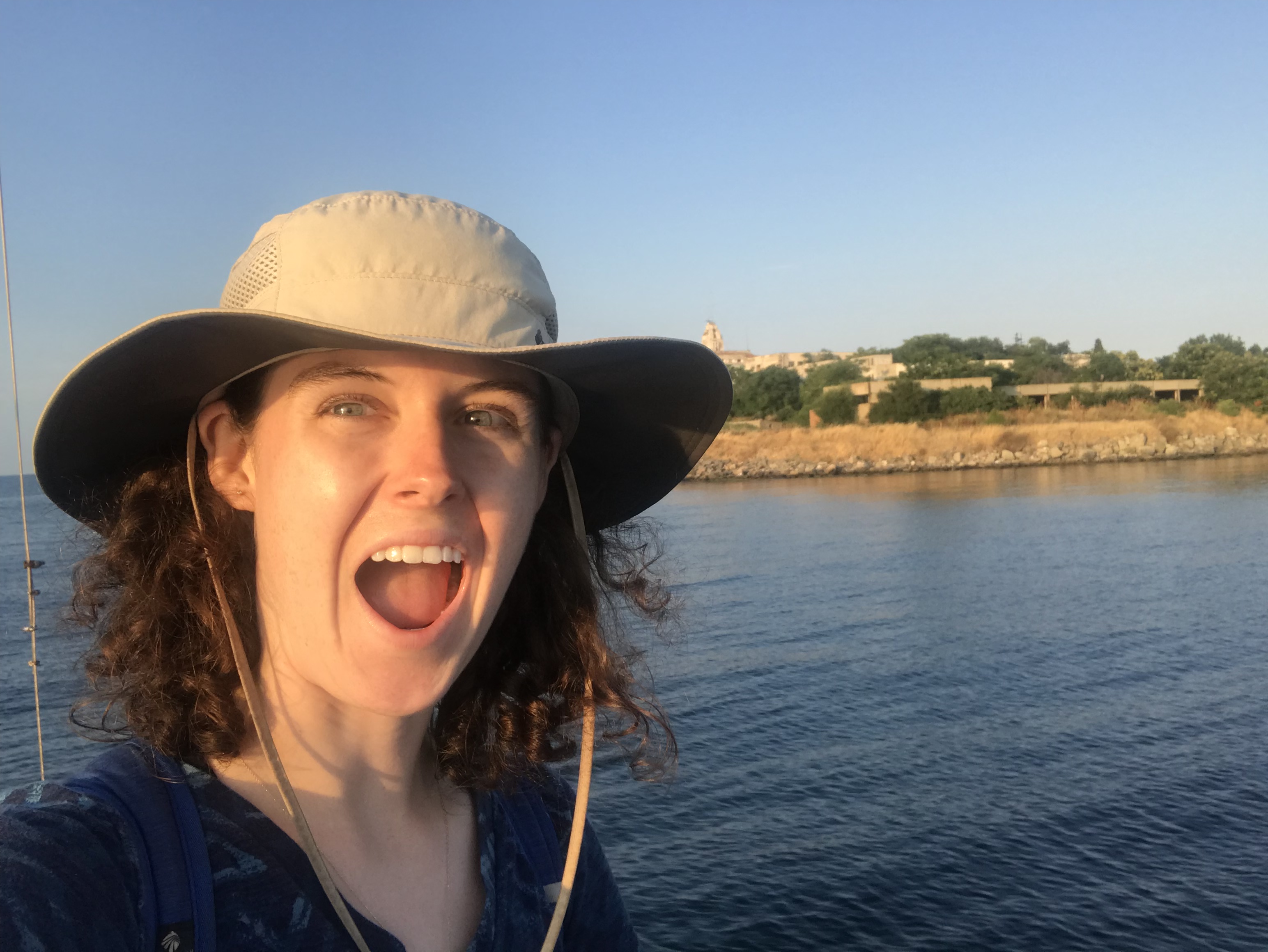 Thursday, I got to do some more cleaning for photographs, and then continued to try to level the bulk that I had started on the first day. We made a major dent in it and one of the girls digging with me found a large fragment of pottery with designs and a discernible shape. After digging, my friends and I headed to New Town beach and spent a few hours swimming, which was an absolute blast. We showered and then returned to the island for our last day of workshops, more pottery sorting. Once pottery sorting was done, a few friends and I decided to take a sunset cruise because we hadn’t been on a boat yet. We got to take the boat from the harbor near our island, past Old Town beach and the rocks where we’d eaten on Tuesday, all the way to the New Town beach. It was about an hour and we were able to catch most of the sunset. We ate dinner near the harbor, where we were able to catch the last bit of sunset.