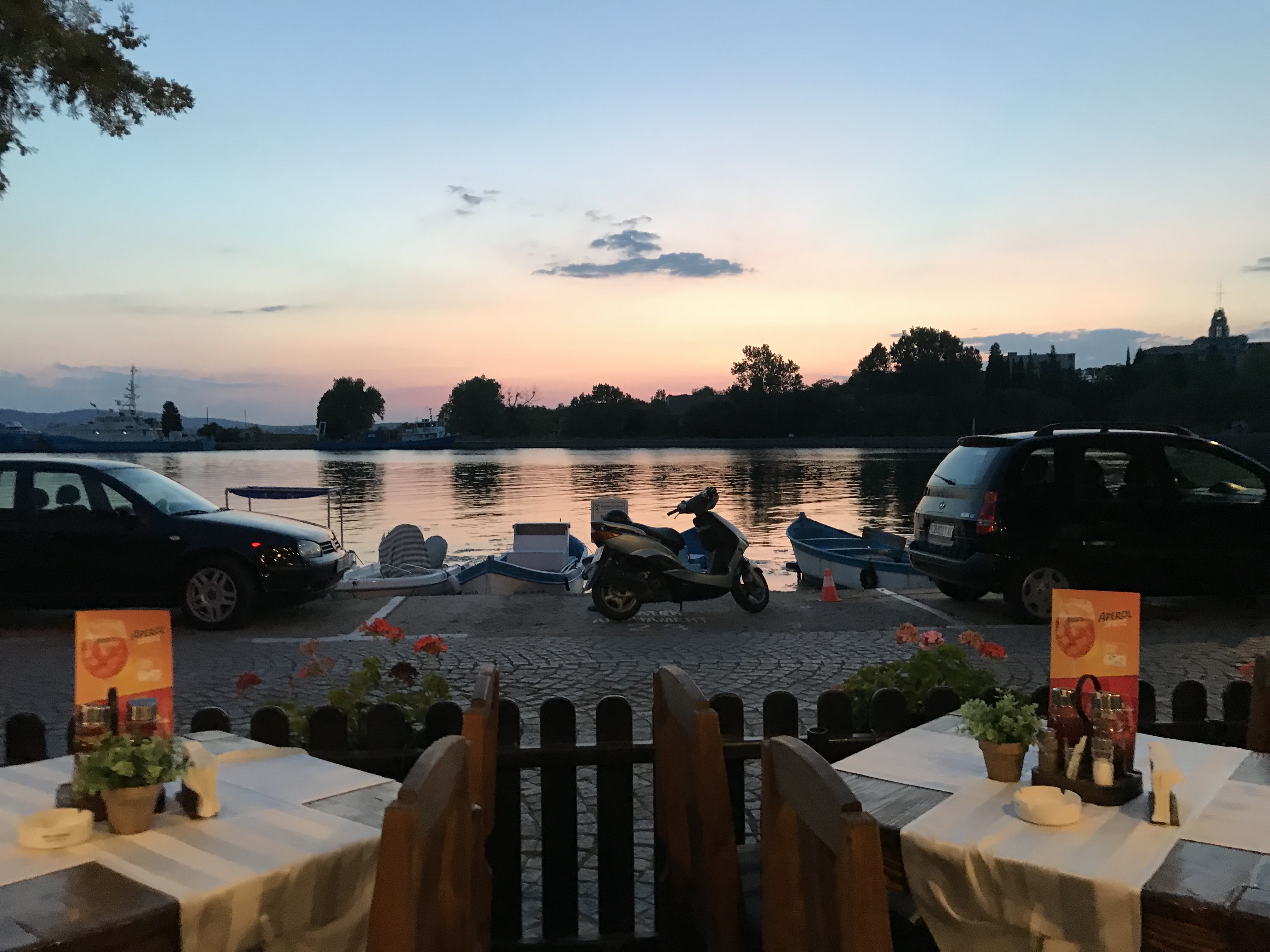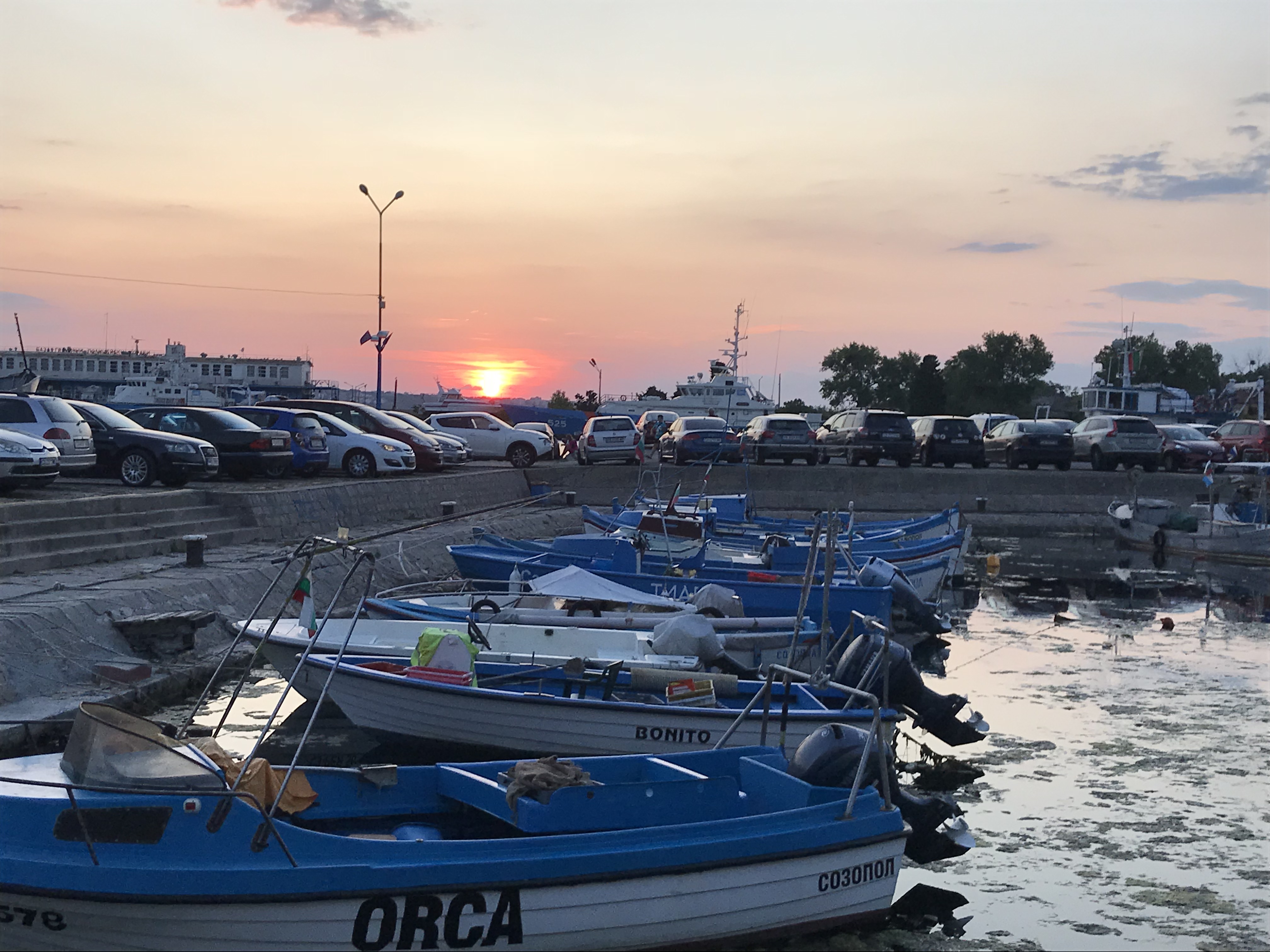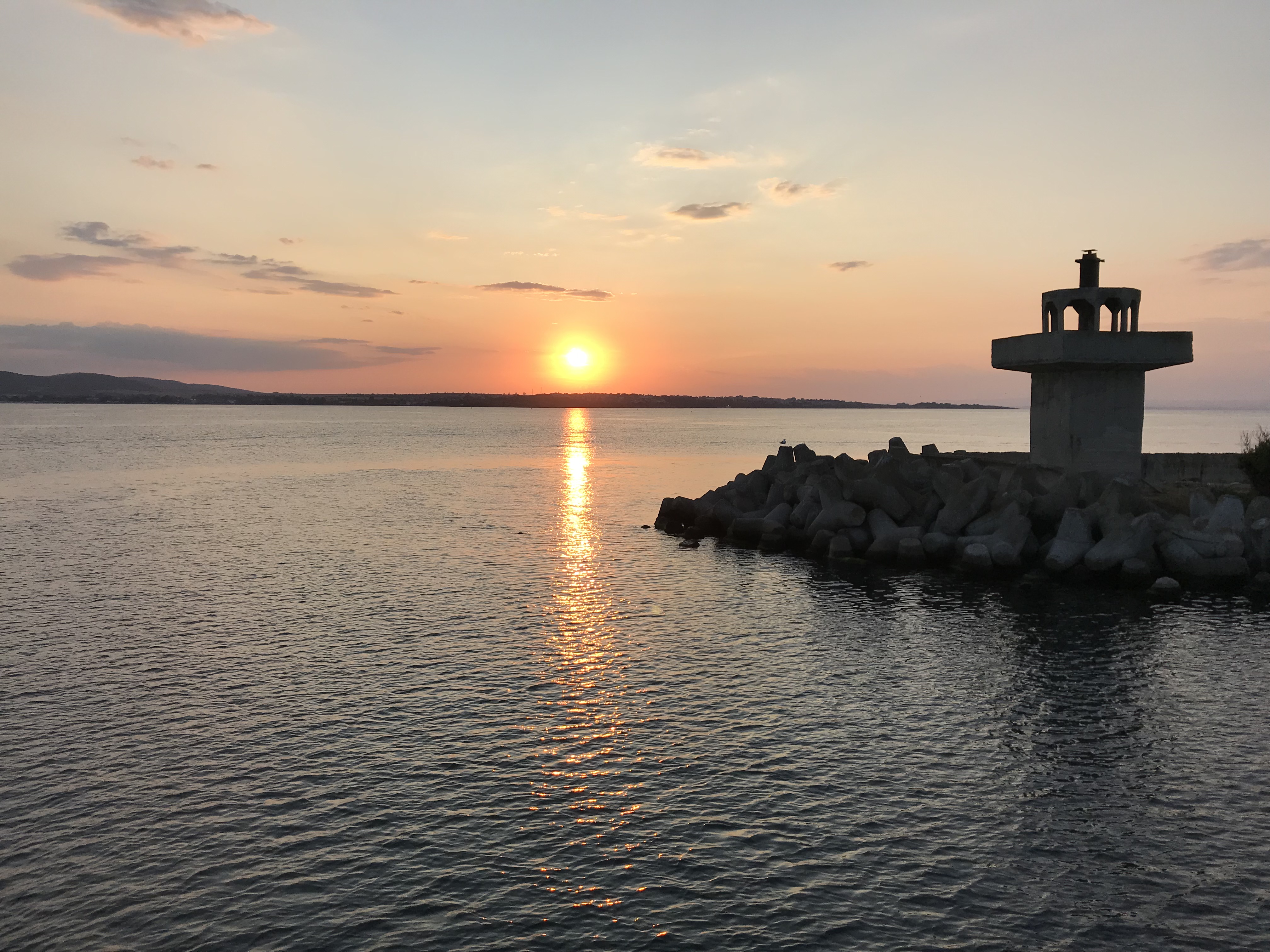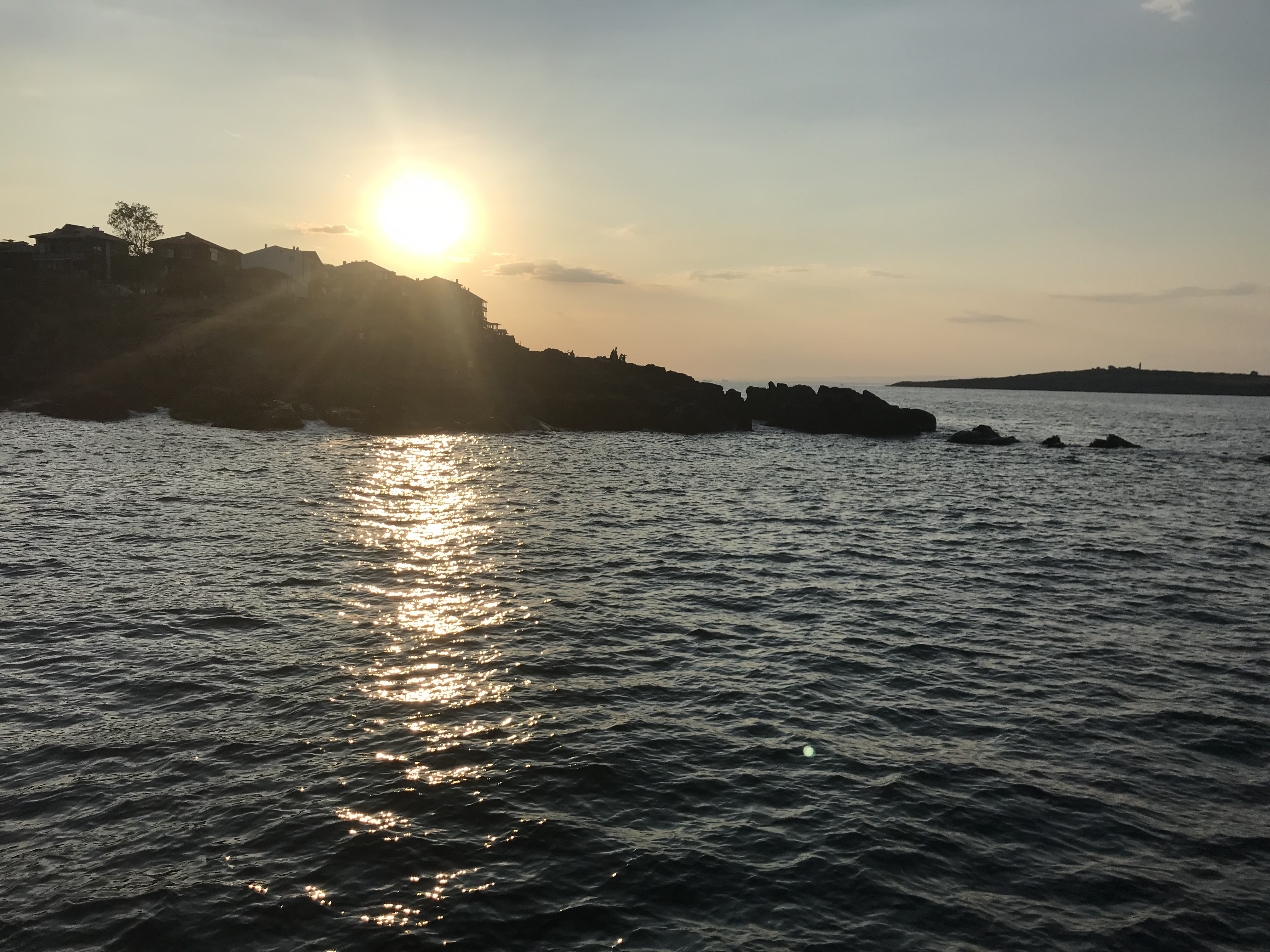 Thursday, I got to do some more cleaning for photographs, and then continued to try to level the bulk that I had started on the first day. We made a major dent in it and one of the girls digging with me found a large fragment of pottery with designs and a discernible shape. After digging, my friends and I headed to New Town beach and spent a few hours swimming, which was an absolute blast. We showered and then returned to the island for our last day of workshops, more pottery sorting. Once pottery sorting was done, a few friends and I decided to take a sunset cruise because we hadn’t been on a boat yet. We got to take the boat from the harbor near our island, past Old Town beach and the rocks where we’d eaten on Tuesday, all the way to the New Town beach. It was about an hour and we were able to catch most of the sunset. We ate dinner near the harbor, where we were able to catch the last bit of sunset.