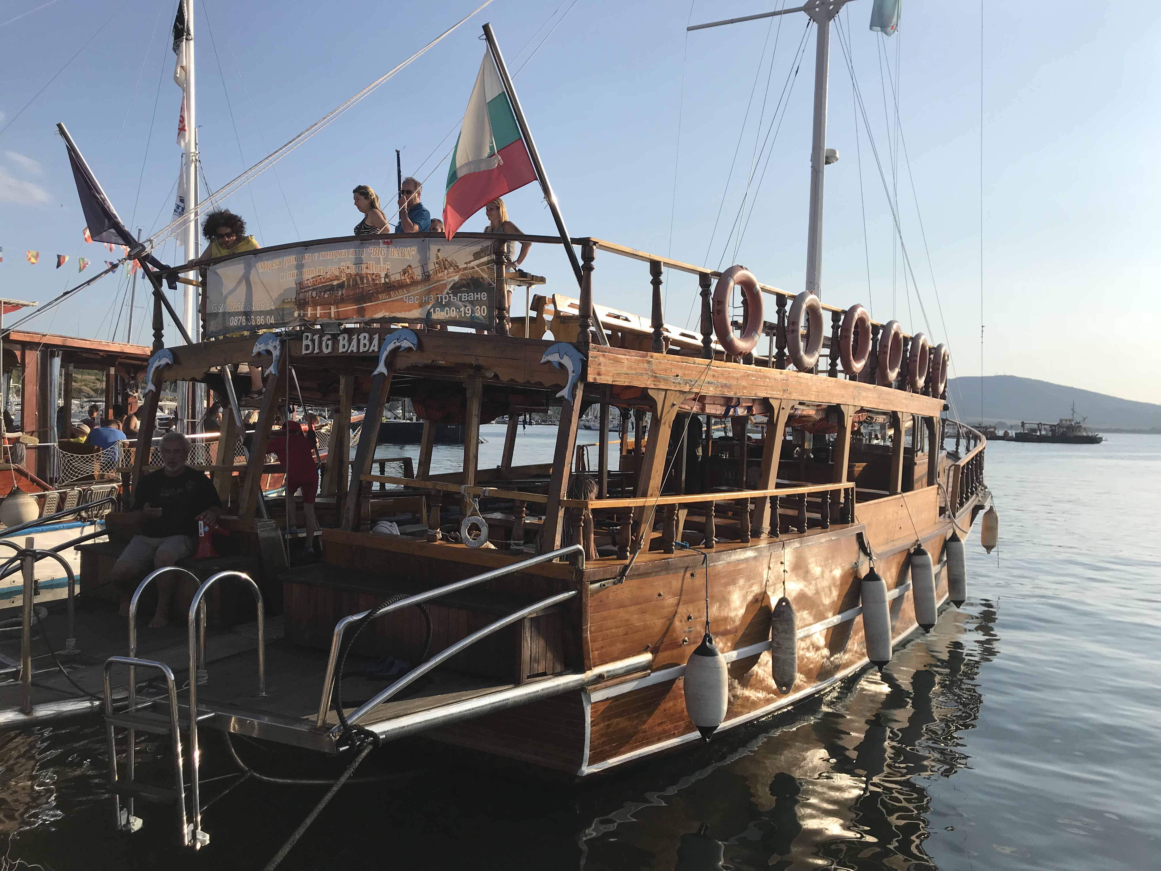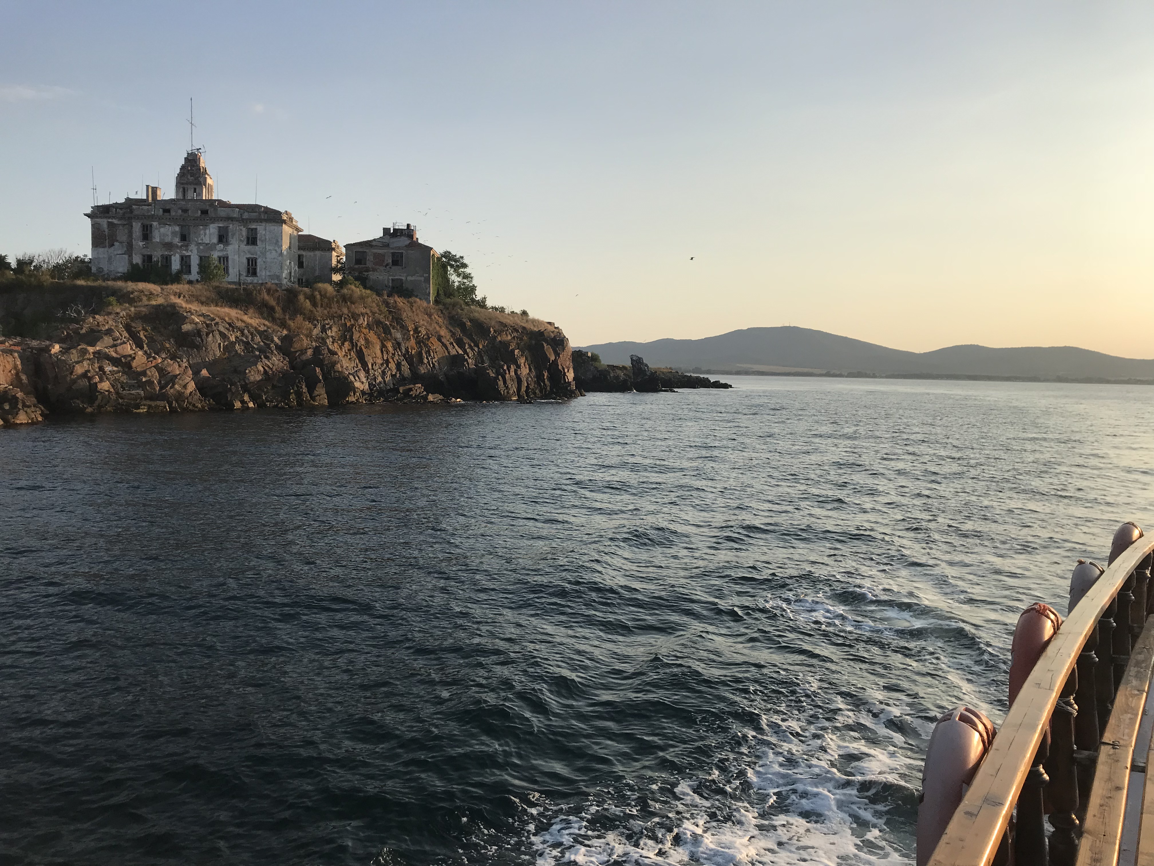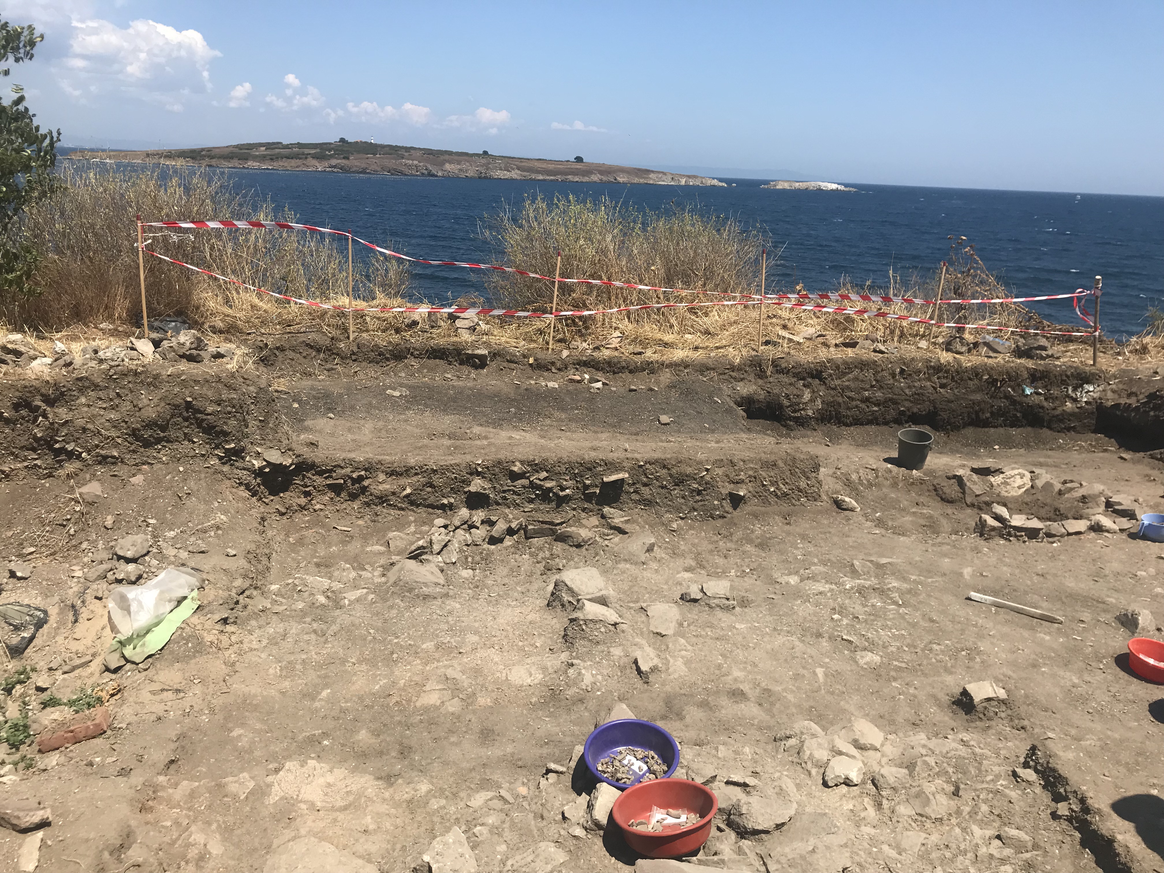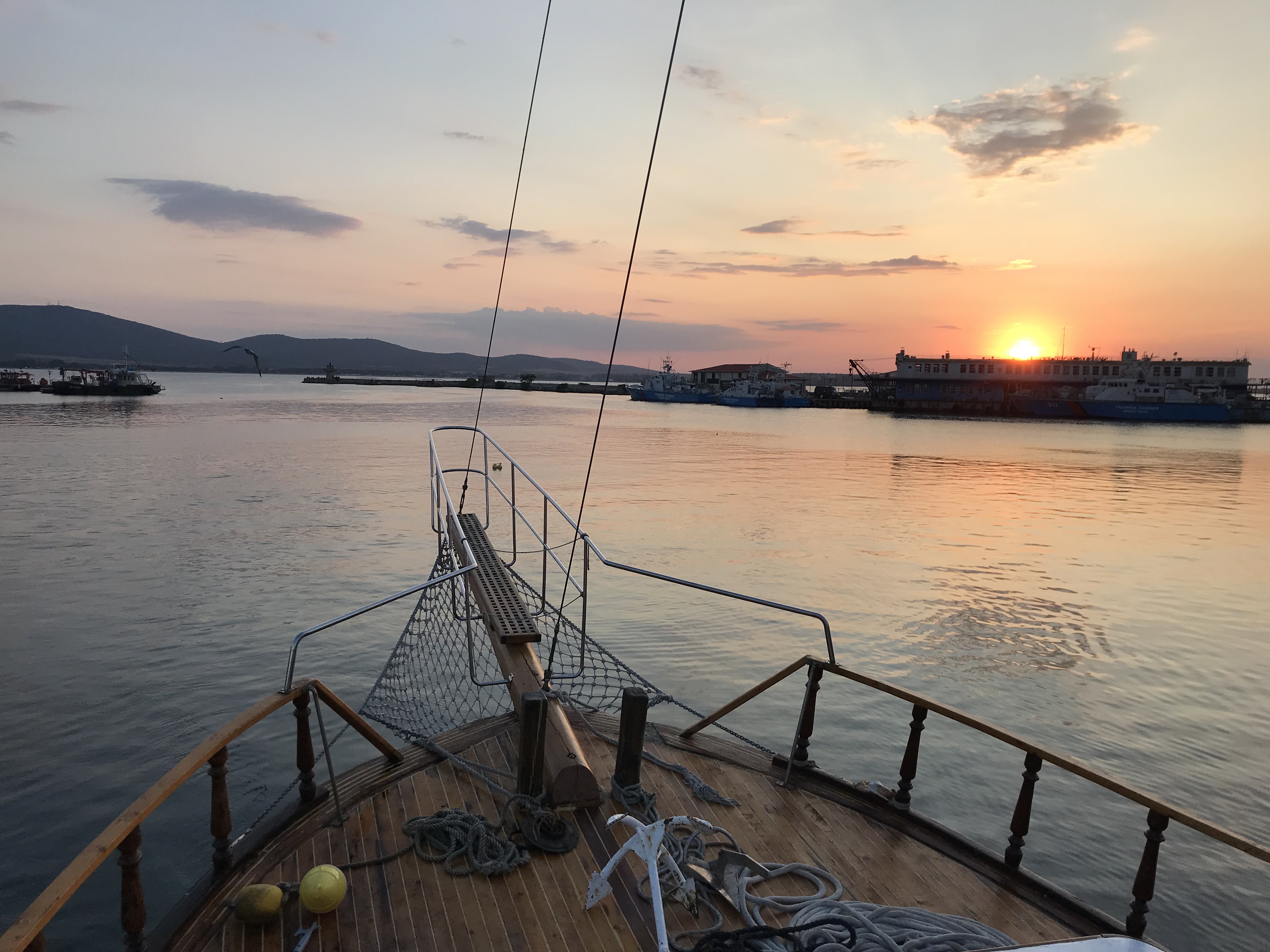 Thursday, I got to do some more cleaning for photographs, and then continued to try to level the bulk that I had started on the first day. We made a major dent in it and one of the girls digging with me found a large fragment of pottery with designs and a discernible shape. After digging, my friends and I headed to New Town beach and spent a few hours swimming, which was an absolute blast. We showered and then returned to the island for our last day of workshops, more pottery sorting. Once pottery sorting was done, a few friends and I decided to take a sunset cruise because we hadn’t been on a boat yet. We got to take the boat from the harbor near our island, past Old Town beach and the rocks where we’d eaten on Tuesday, all the way to the New Town beach. It was about an hour and we were able to catch most of the sunset. We ate dinner near the harbor, where we were able to catch the last bit of sunset.