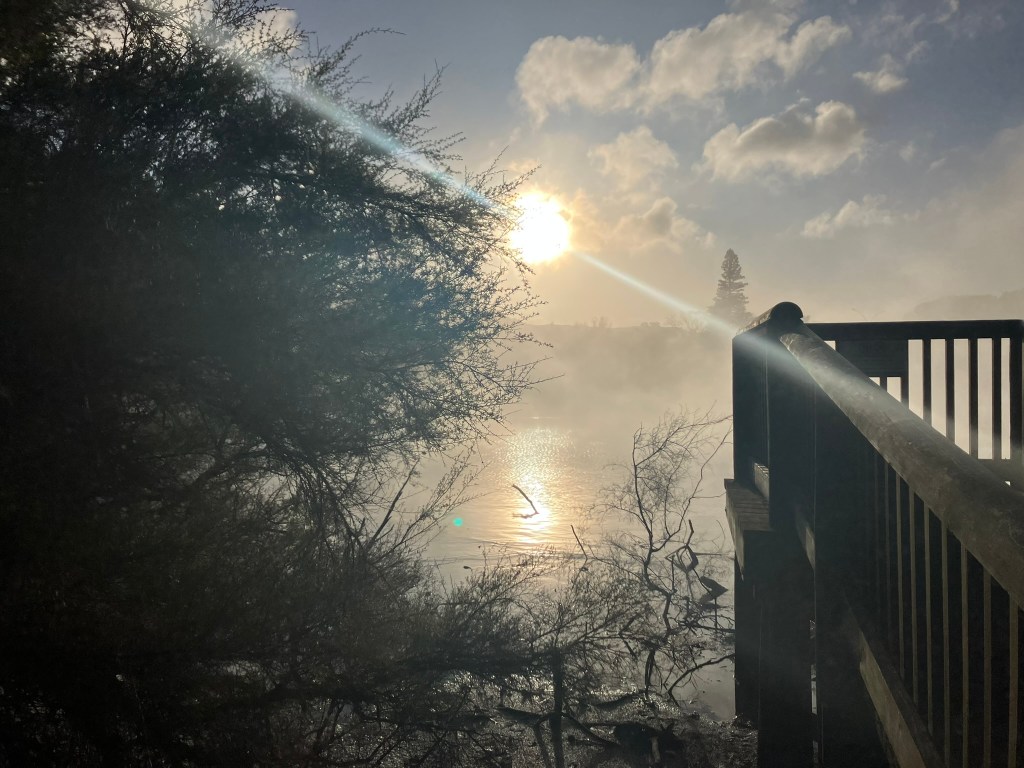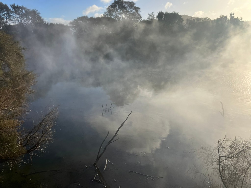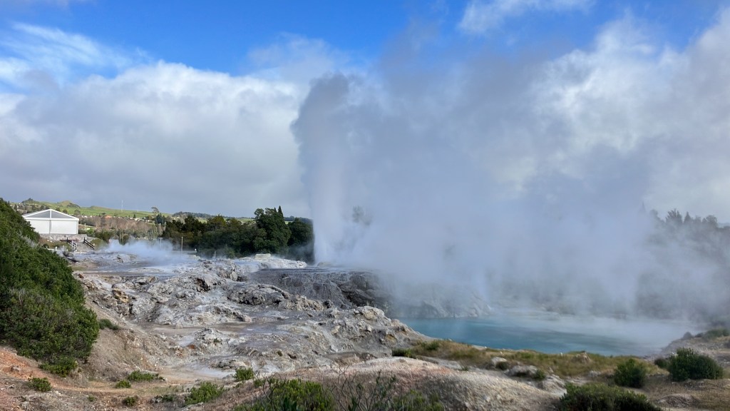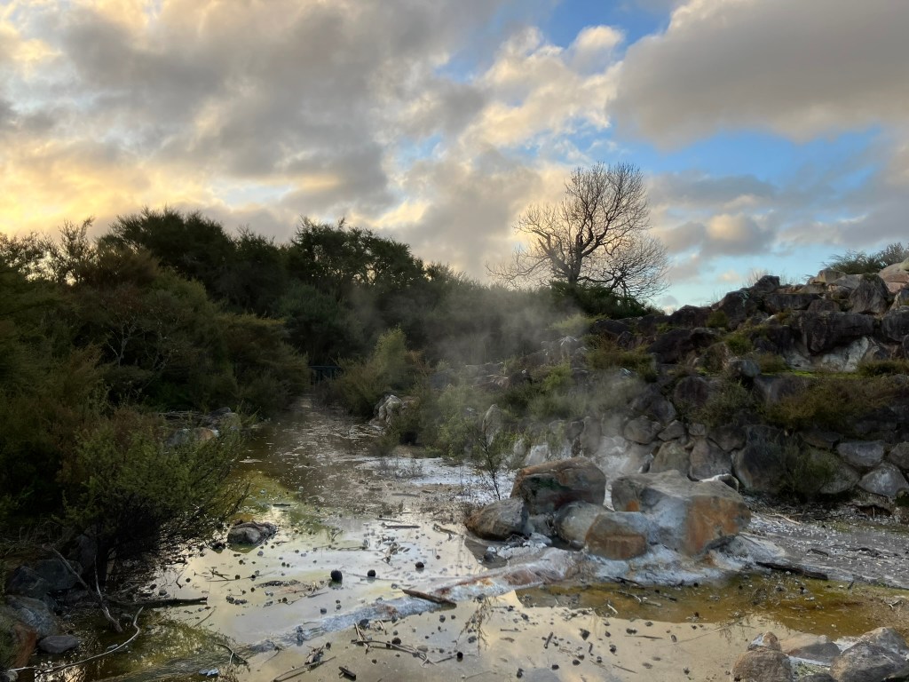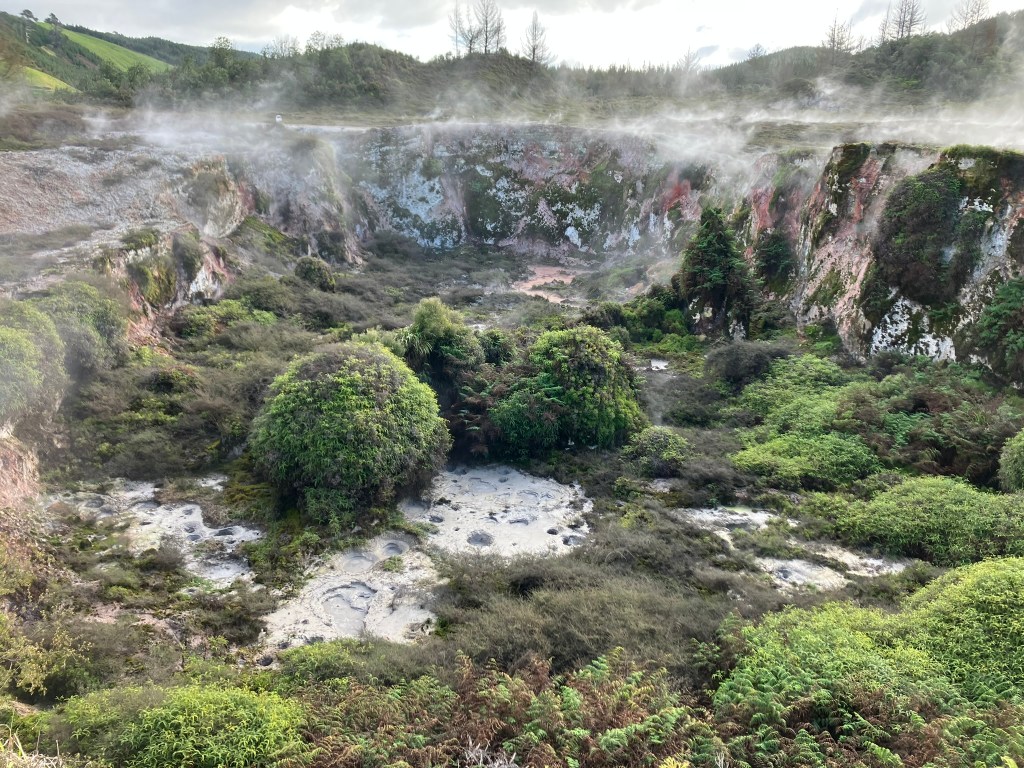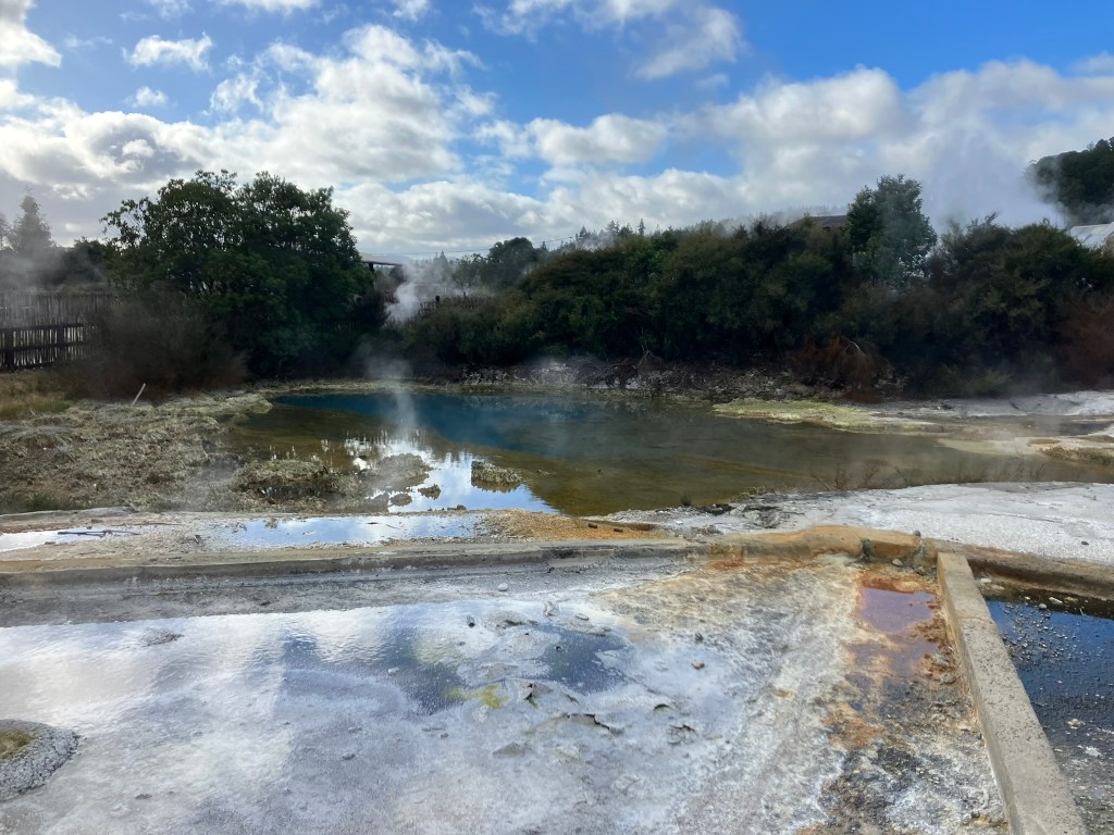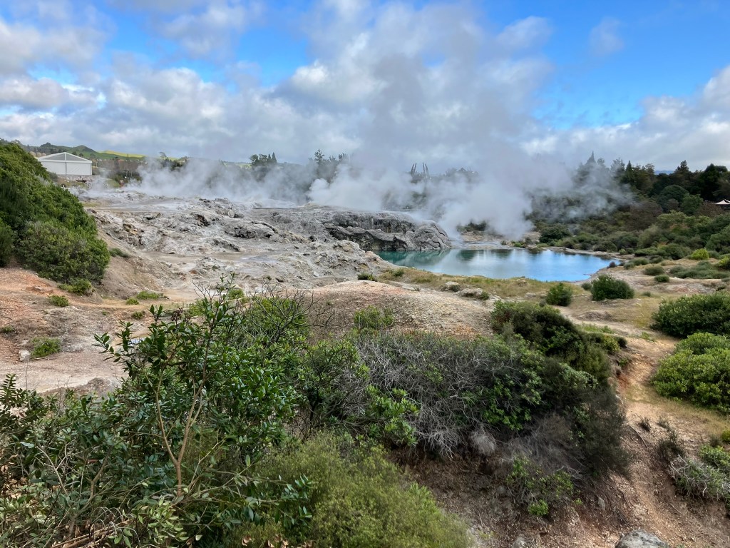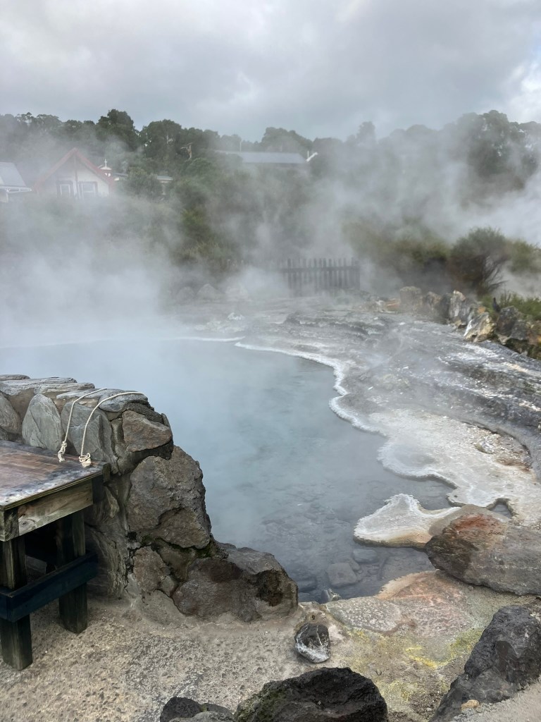 I stayed about an hour farther, close to my next morning’s activity, the Waitomo caves. The Waitomo caves are Māori-owned caves that house glow worms. These are worms whose tails literally glow in the dark so that it literally looks like stars in the sky. The tour had both a walking part and a boat ride. My tour was small, and so our tour guide allowed us to check out some parts of the tour that he couldn’t normally take people, and when we got to the boat we were able to fully lay down and experience the “sky” of glow worms just like you would experience stargazing. It was only the second day, and I had another one of the most magical experiences of my life. In addition to the Waitomo caves, I visited another local cave on a walking tour. This cave also housed glow worms. To end off the day, I had a a few hour drive east across the country. I stopped along the way at a Kiwi sanctuary, where I was able to see the national bird, before finally ending up in Rotorua, which is a city filled with hot springs and other geothermal activity.