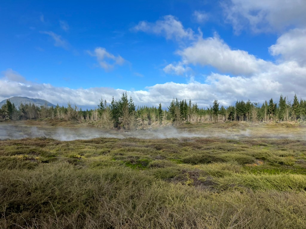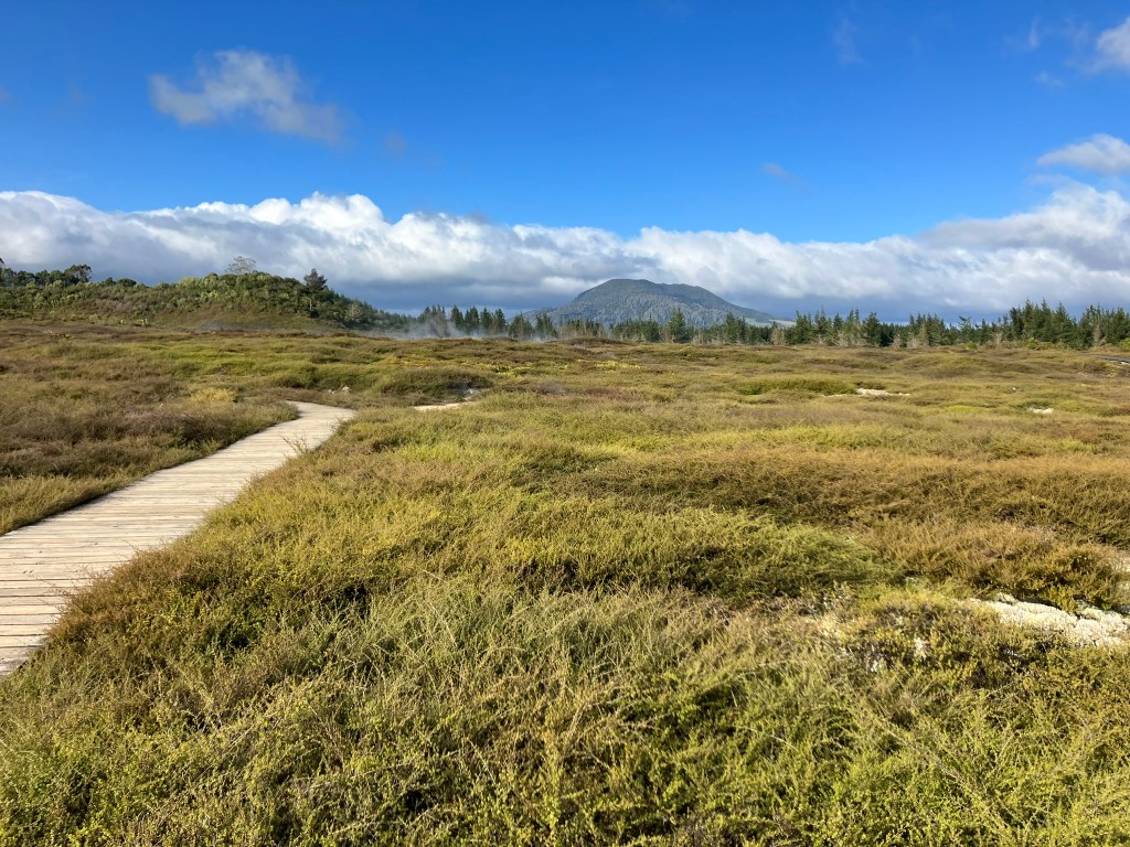 Day 3 consisted of me getting myself to the capitol, Wellington. I started the day off in Rotorua, visiting a local living Māori village. On this tour, a local Māori guide shared the history of the village as a tourist spot dating back to the late 1800s, as well as showing us how they used the hot springs for cooking and providing us with some fresh, hot-sprint-cooked corn. After hearing about local history and customs from the guide, we were left to watch the local geyser go off. After the geyser erupted, I departed Rotorua in the direction of Wellington. On the way, I stopped at another geothermal site called the “Craters of the Moon” which sat fairly near the town of Taupo and the local Lake Taupo. I also drove through Tongariro National Park and planned to stop for a hike, but it was the only time during the trip that the weather truly did not cooperate, and I decided not to stop because it was pouring. It turned out okay, though, as I continued on my trip and arrived in Wellington early enough to still grab dinner.