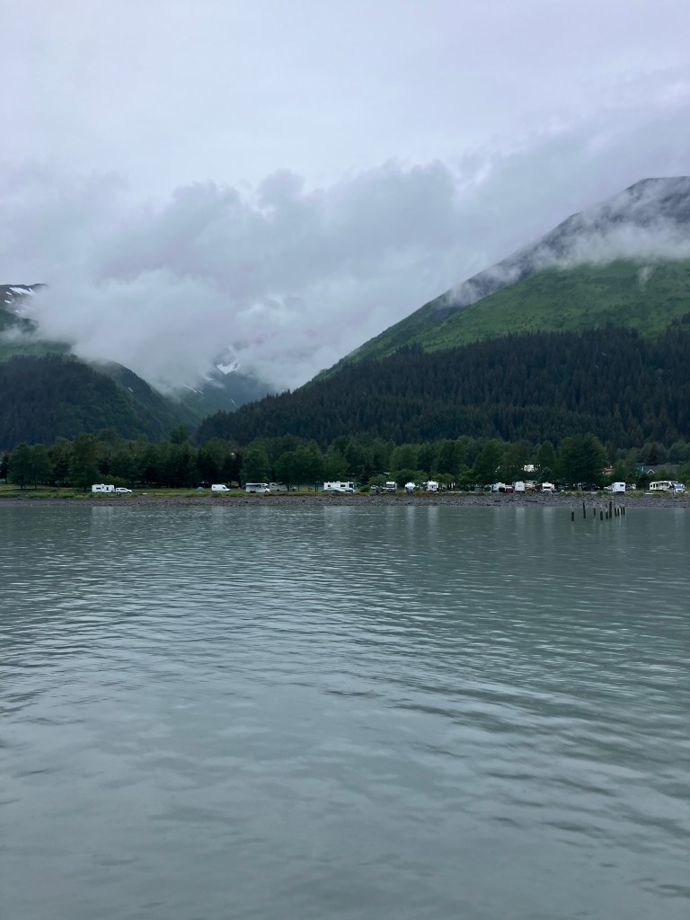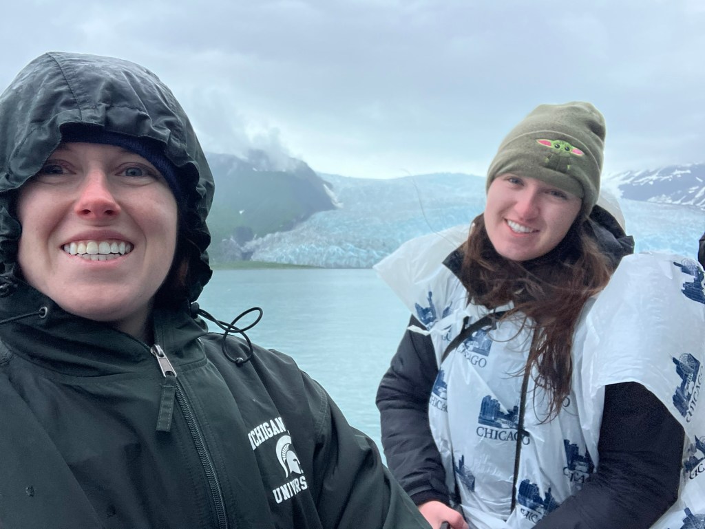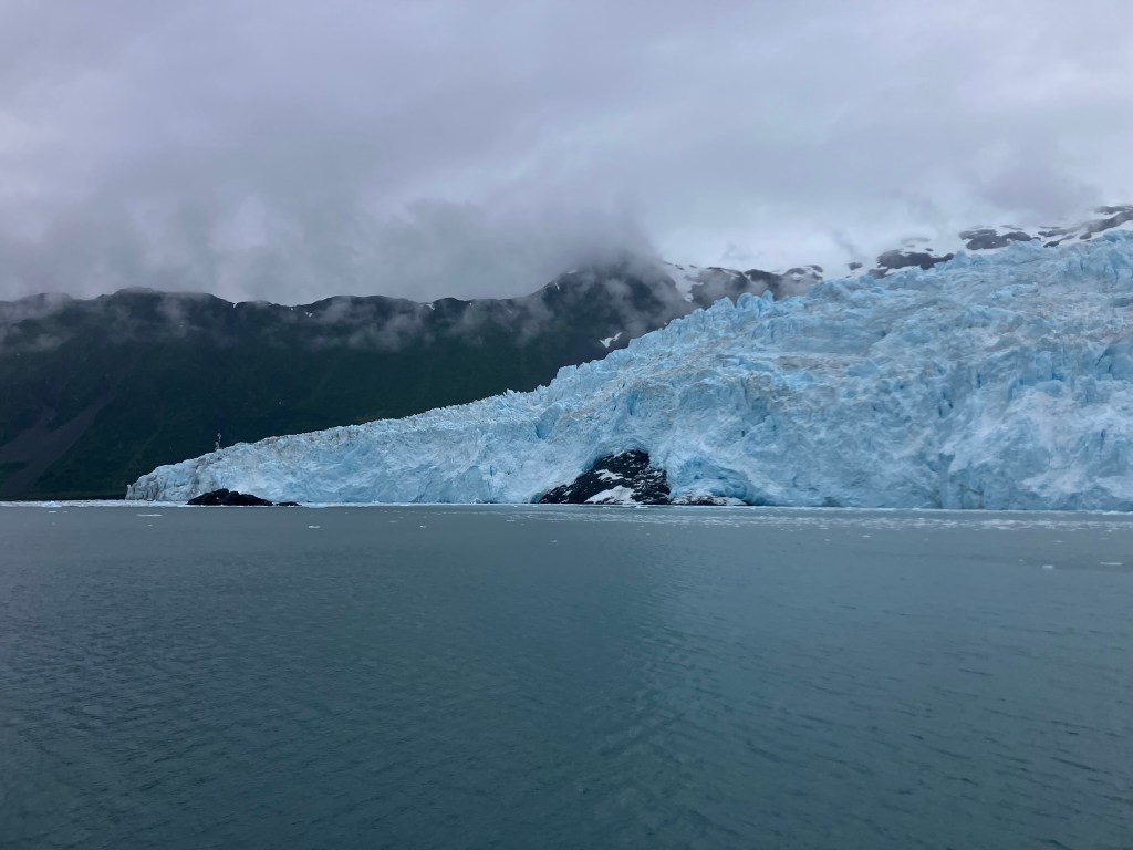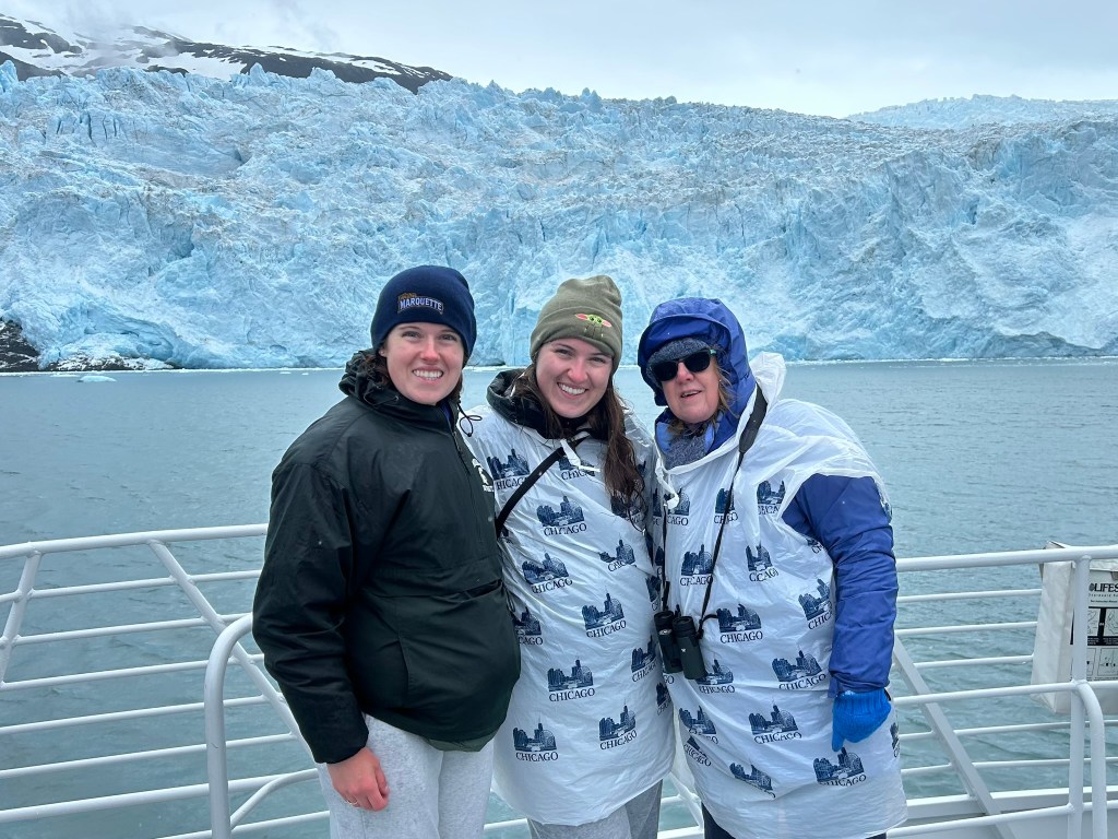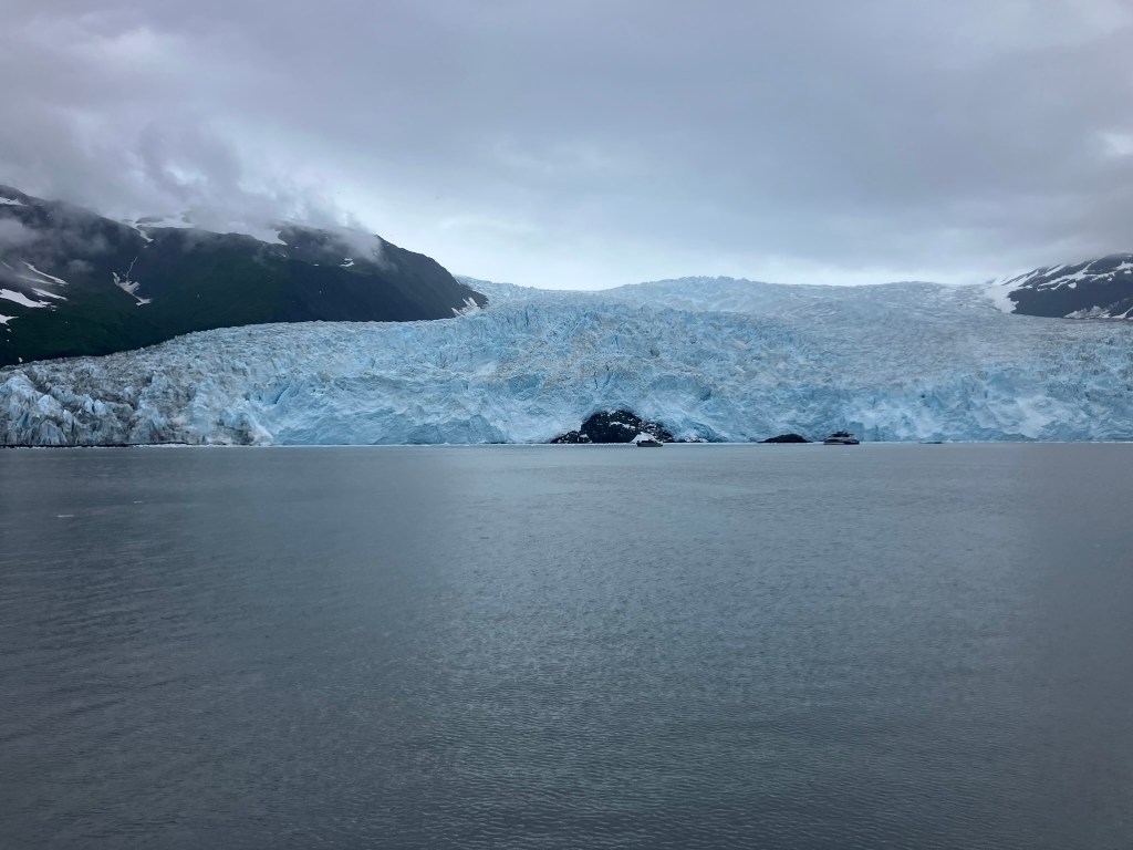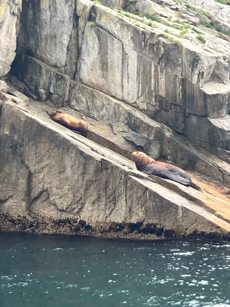 From the glacier, it was finally time to turn back. We retraced our route, pulling into different inlets to catch sight of yet more sea lions and sea birds. We were given warm cookies on our way back and were able to comfortably enjoy the pull into the harbor (accompanied by a harbor seal). After the tour, we wandered through the town, walking in and out of gift shops. We made our way to dinner on the waterfront, where I had Alaskan crab legs, Becca had salmon (again), and mom had crab cakes. From there, we grabbed some ice cream before finally heading back to our hotel room.