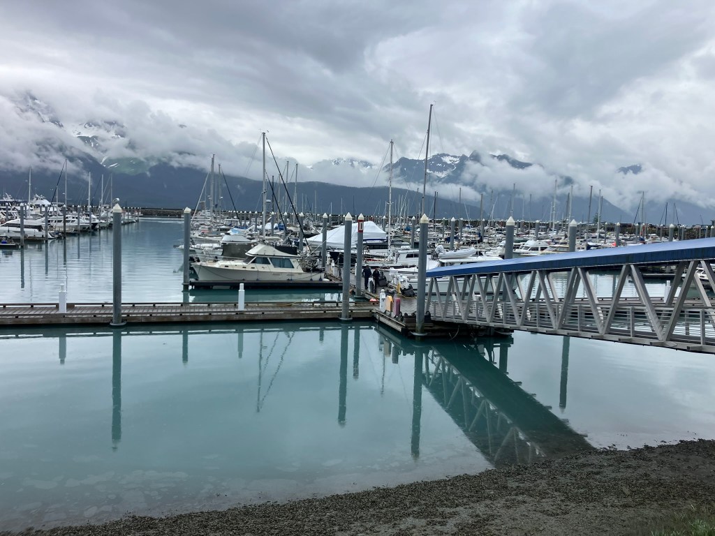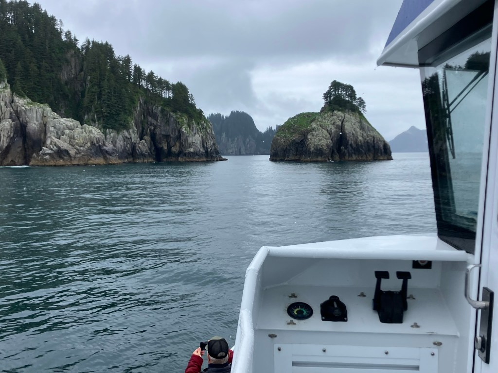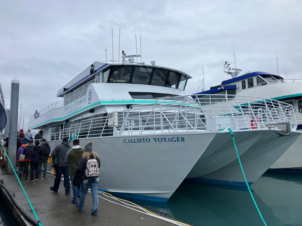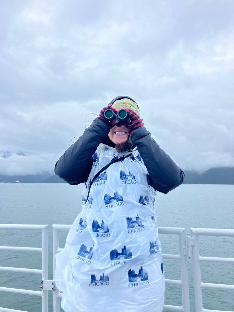 Our second day in Seward, we woke up, grabbed breakfast at our hotel, and caught the shuttle to the small boat harbor in downtown Seward. We were heading off on a 6-hour boat tour into the Kenai Fjords. We quickly stopped at the local hardware store to buy some binoculars (which mom has had on her list for a few years now), and then we wandered through the gift shop until our boat was ready to depart around 11:15 AM.