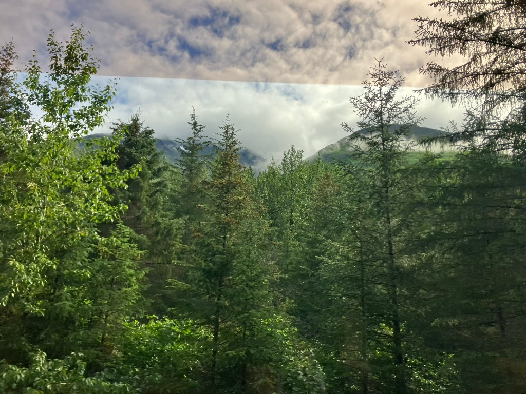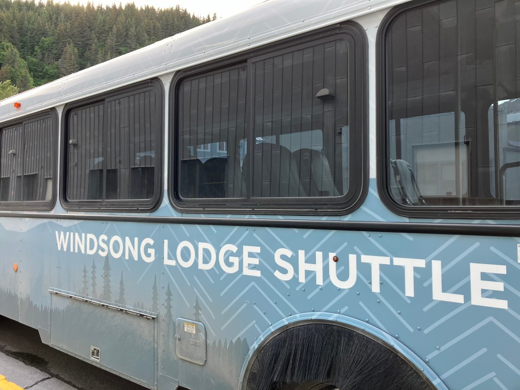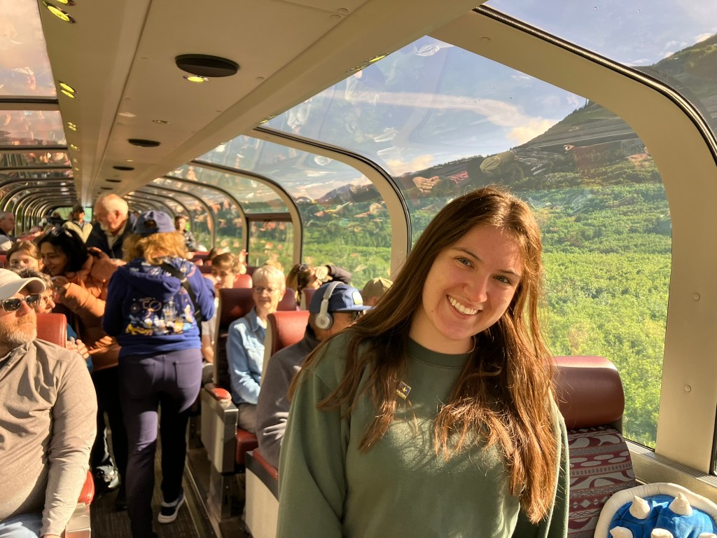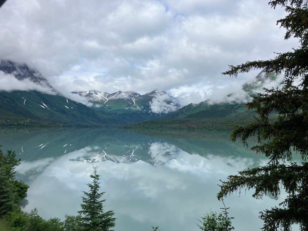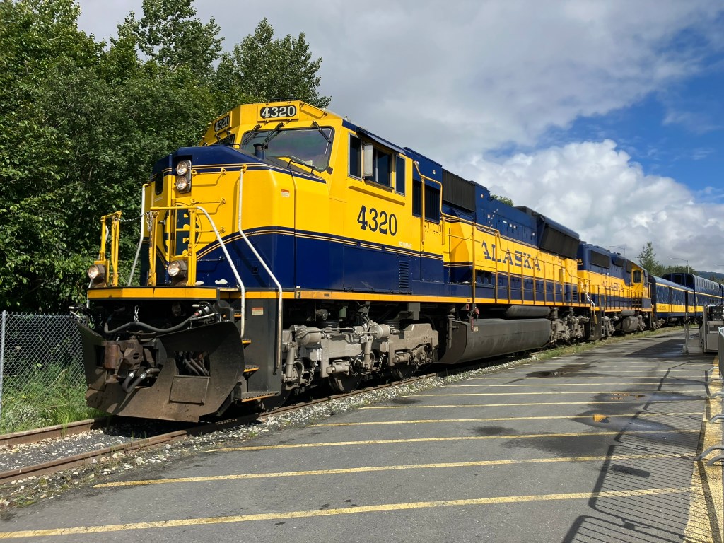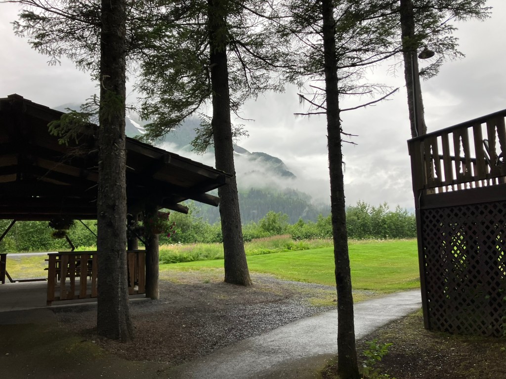 The second full day of our trip was our train adventure. We woke up before 6 and made our way to the train station. Now, all three of us are fairly well-traveled, and we’ve taken a fair number of trains in our lives. But at least Becca and I have never taken a train simply for the train ride. Instead, it’s always been primarily a form of transportation. But this train ride was the activity of the day. We’d arranged a tour that made all of our reservations for us, and the lady who’d helped me with the reservations had been able to upgrade our train rides for no extra cost. So we got the fancy treatment for this train ride. The car that we were in had glass roofs, a little outdoor viewing station, free drinks, and breakfast included. We took the nice four-hour ride, with the train employees periodically giving us history about Alaska. Our train tour guides, we learned, were high school students who had taken a class on Alaskan history and interviewed to get the job of sharing info during our ride.
