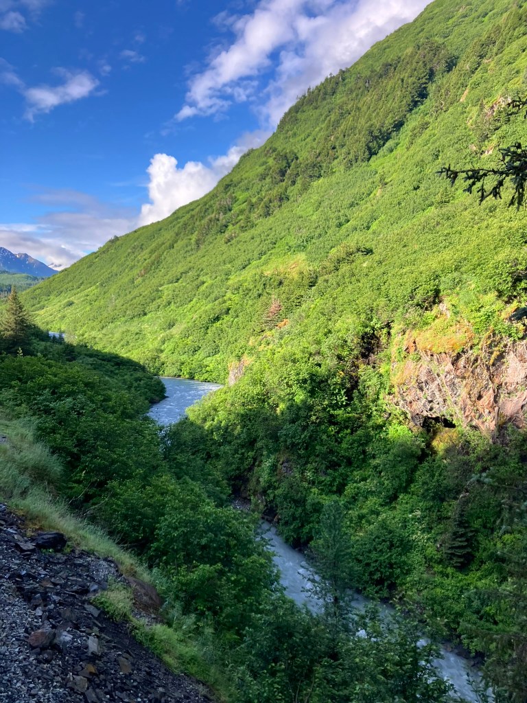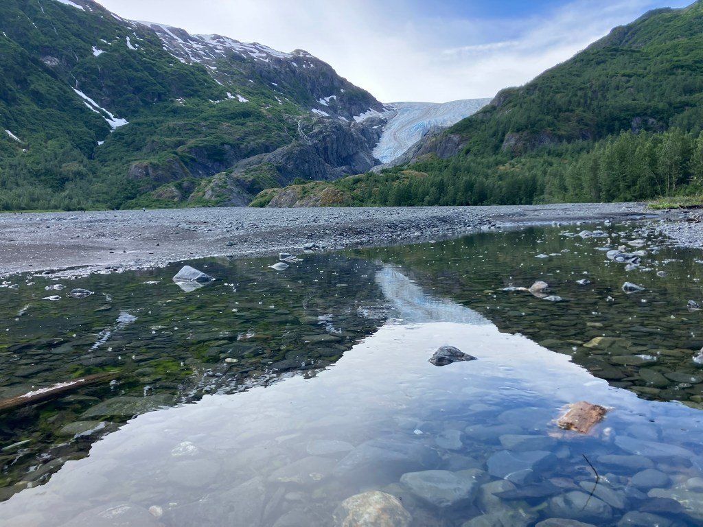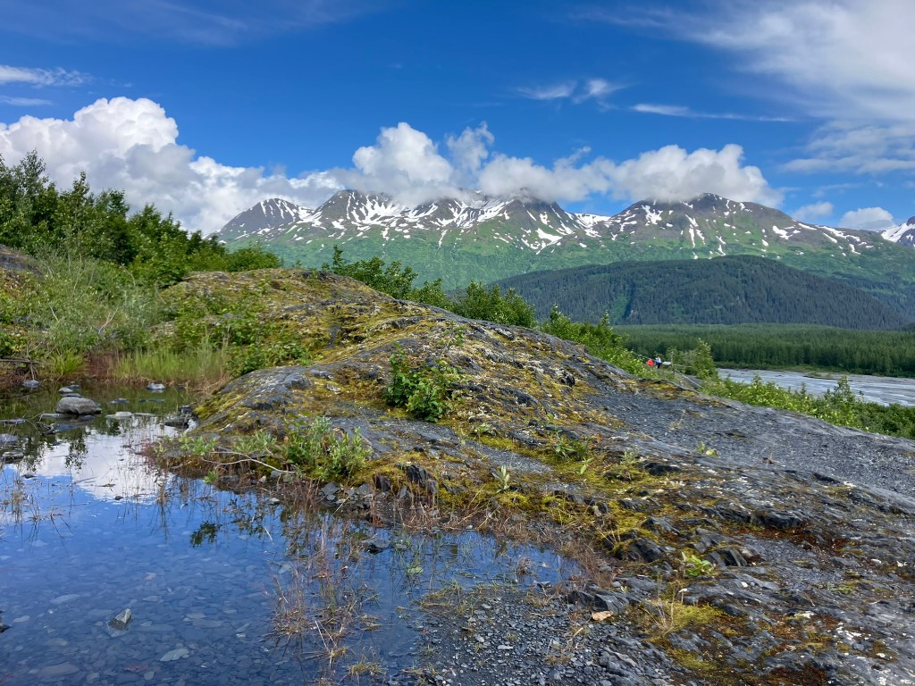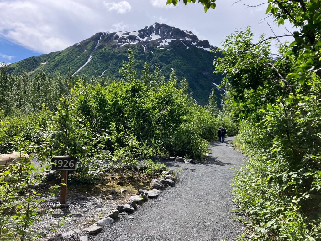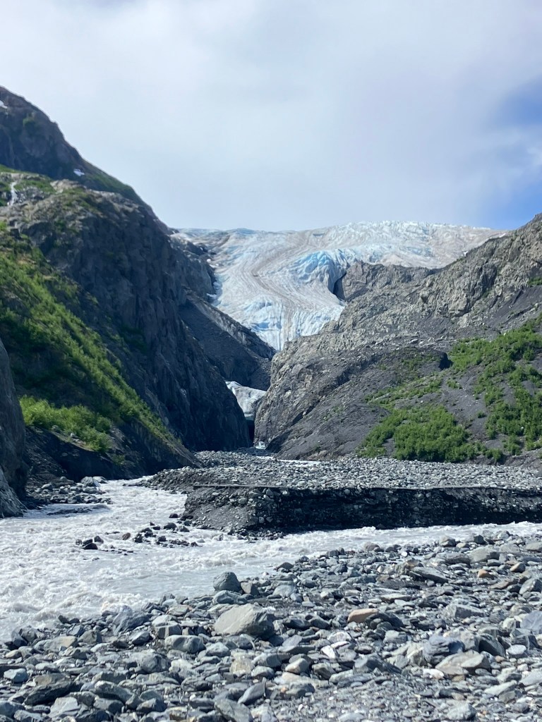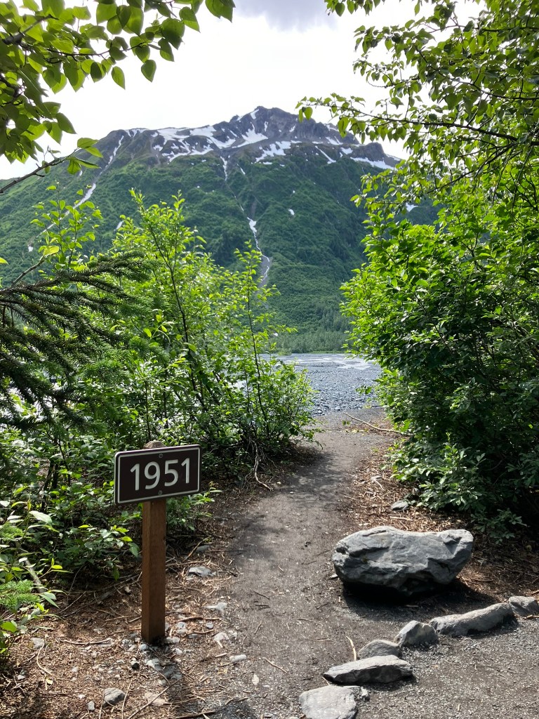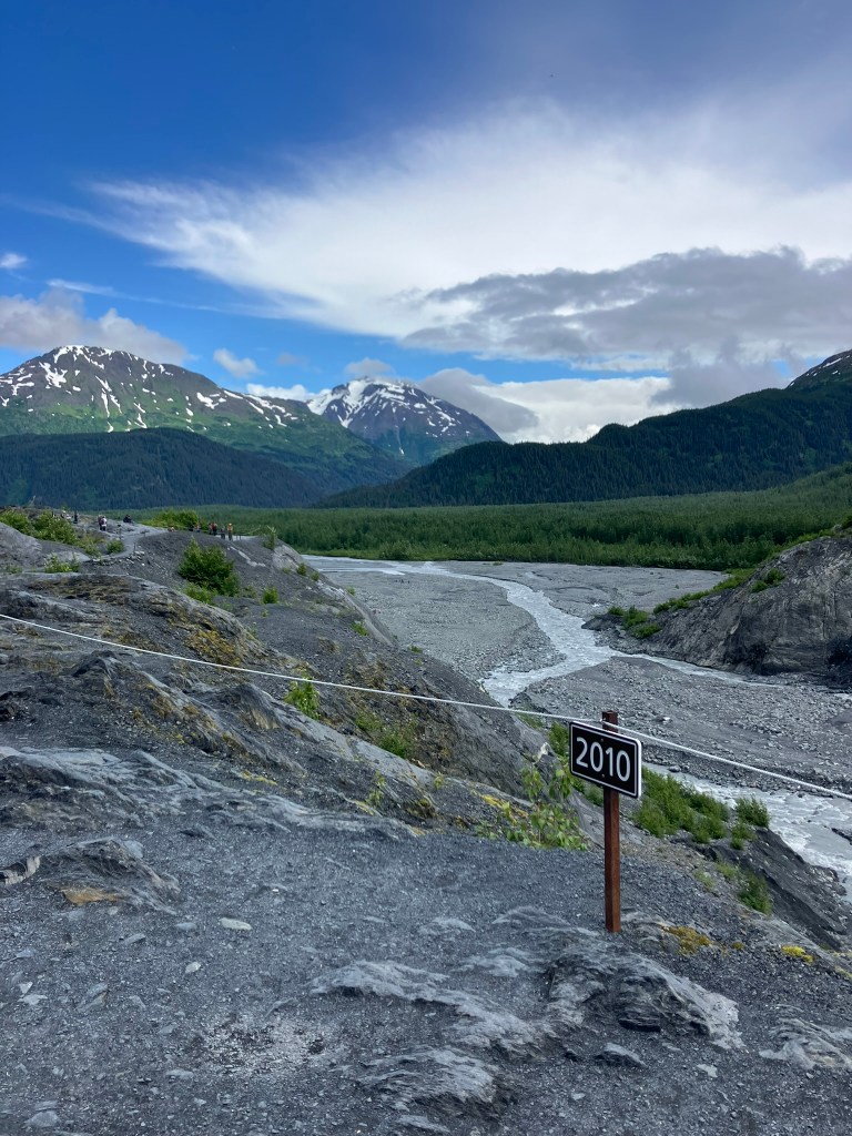 The hike was up to the Exit Glacier. It was only a little over a mile, very doable even without the proper hiking shoes. On the drive there, the driver had started to point out signs with dates on them showing how far out the glacier had been at various years. Even since 2010, the glacier has receded A LOT as a result of global warming combined with natural receding. Still, the glacier and the surrounding mountains made for a beautiful and memorable brief afternoon hike.
