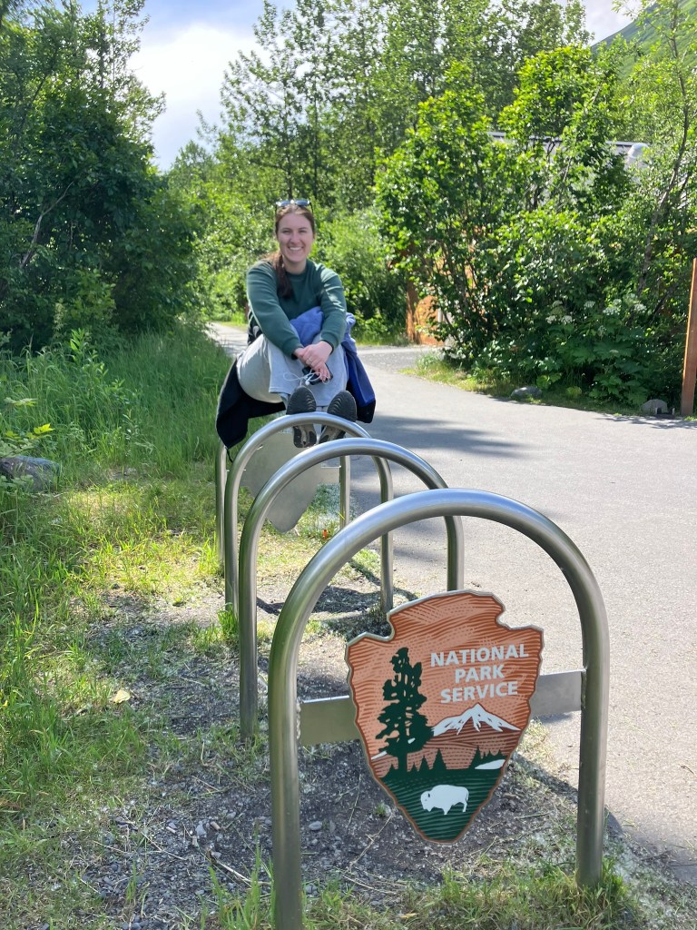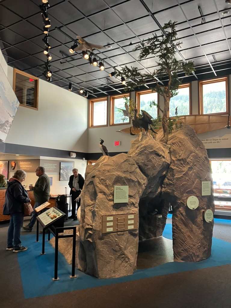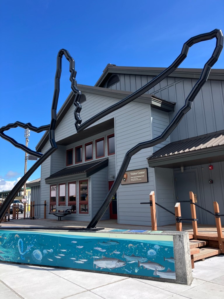 In Seward, we checked out the Kenai Fjords National Park Visitor’s Center so my mom could get her national park stamp. While there, we were inspired by the videos and displays, and we asked whether it would be feasible for us to get to the local glacier hike without a car. The hike was something I’d wanted to do, but because we were on our bus and train travel methods, I wasn’t sure we were going to be able to get there. The National Park employees gave us some advice about a tour company that could give us a ride, so we grabbed some lunch and got on their next ride.