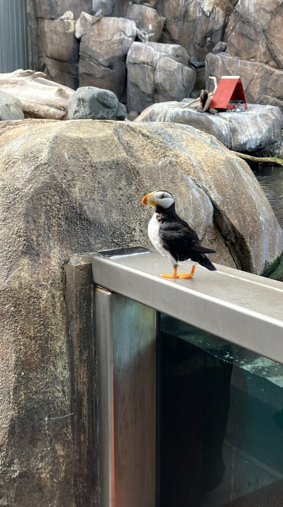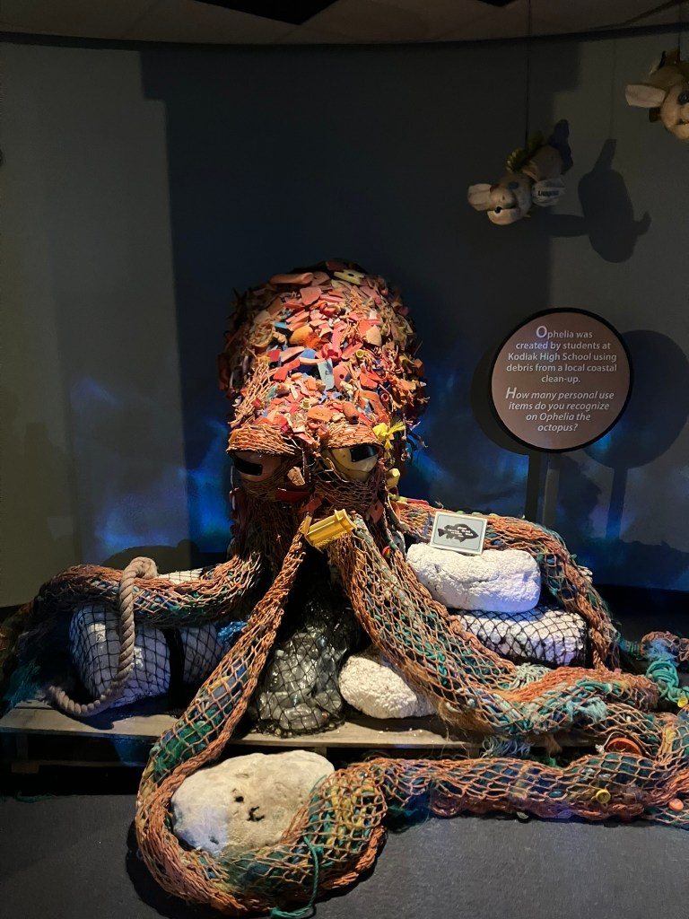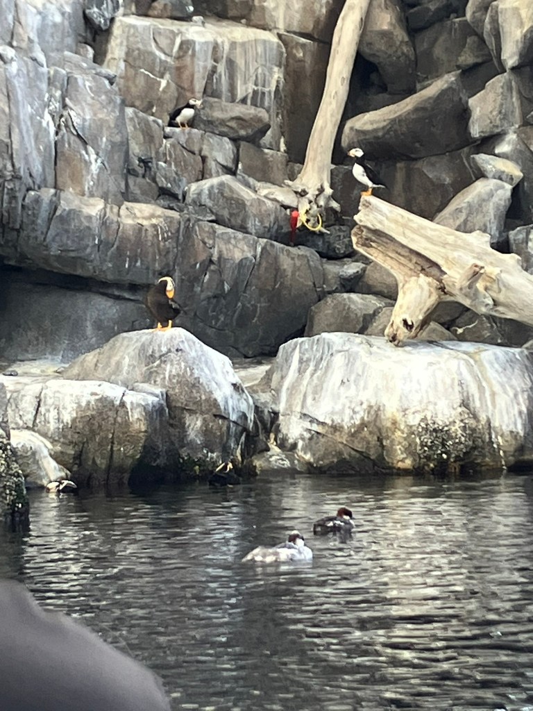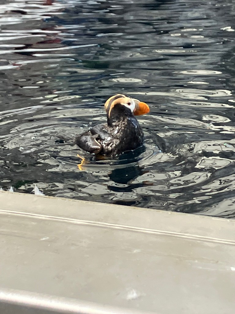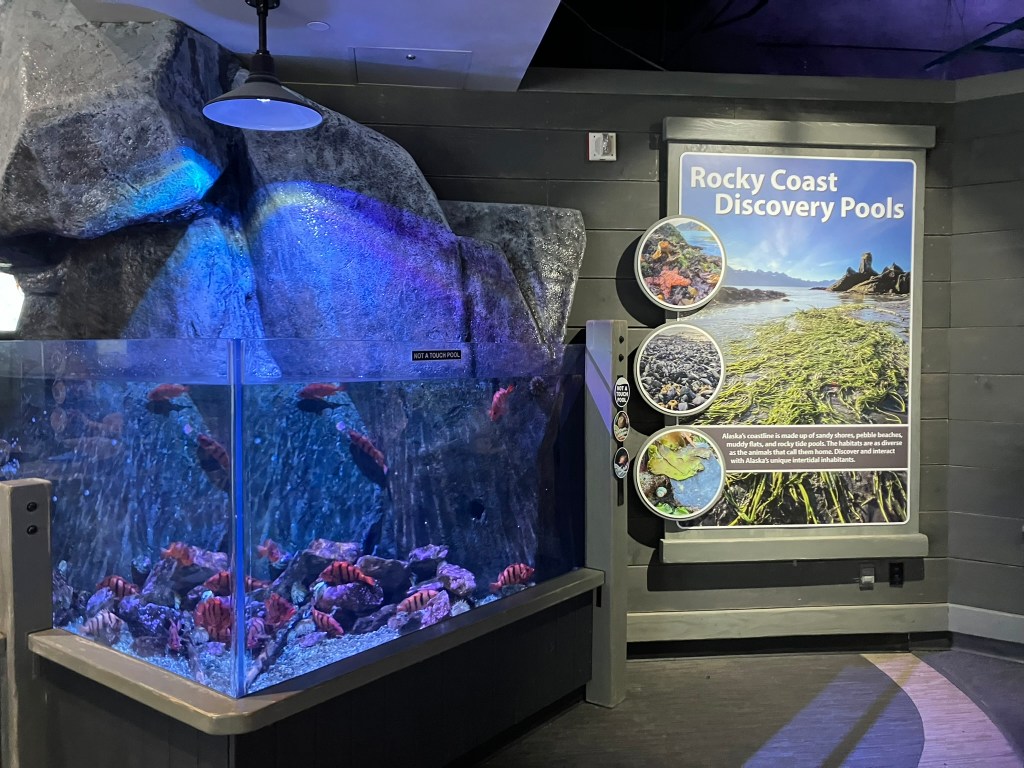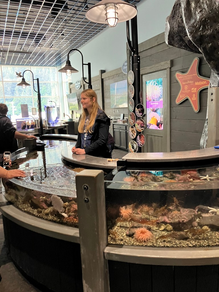 We arrived back in Seward in the late afternoon, but still with plenty of time to visit the Alaska SeaLife Center, an aquarium with local Arctic animals. We spent about an hour wandering through the two floors, seeing sea stars, puffins, seals, sea lions, and various fish. We got to touch some of the sea stars, anemones, sea urchins, and sea cucumbers. We also were able to catch a great view of the fjord from the outlook at the back of the center.