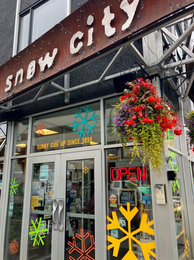Our flight out was at 11:59 PM on that last day, so we really weren’t pressed for time. With that much flexibility, we started the day with a restaurant called Snow City Cafe, which had been recommended by people we knew, strangers on the street, and travel books alike. We grabbed a great breakfast, including their signature cinnamon rolls.