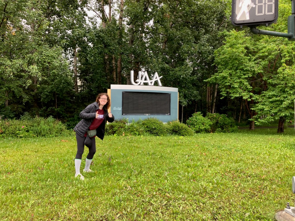 After breakfast, we found ways to fill our time based on each individual’s go-to sightseeing options. First, we stopped by the University of Alaska, Anchorage, so that I could see the campus and get a picture with the sign.