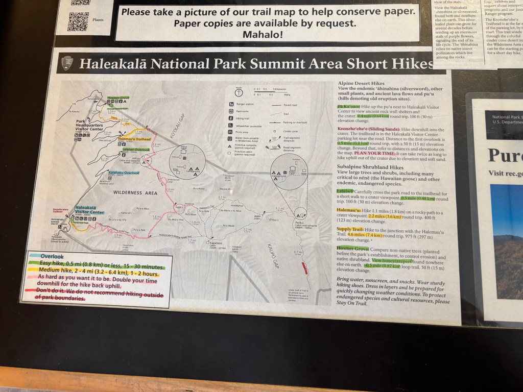 We woke up in Maui for our first day on our second of three islands. We had been debating whether to visit Maui or not because there had been a big fire the year before. However, we’d seen a news article with Maui residents advertising that they were functional and reliant on tourism for their economy, so we thought it would still be a good thing to fit in, even though we’d only have two days. Plus, one of my priorities was seeing a national park, and I had a hard time choosing between Volcanoes National Park (on the big island) and Halekala National Park (on Maui).