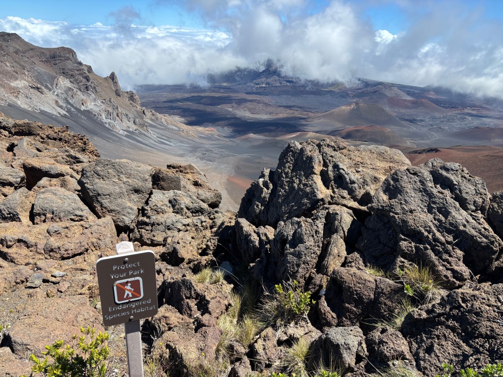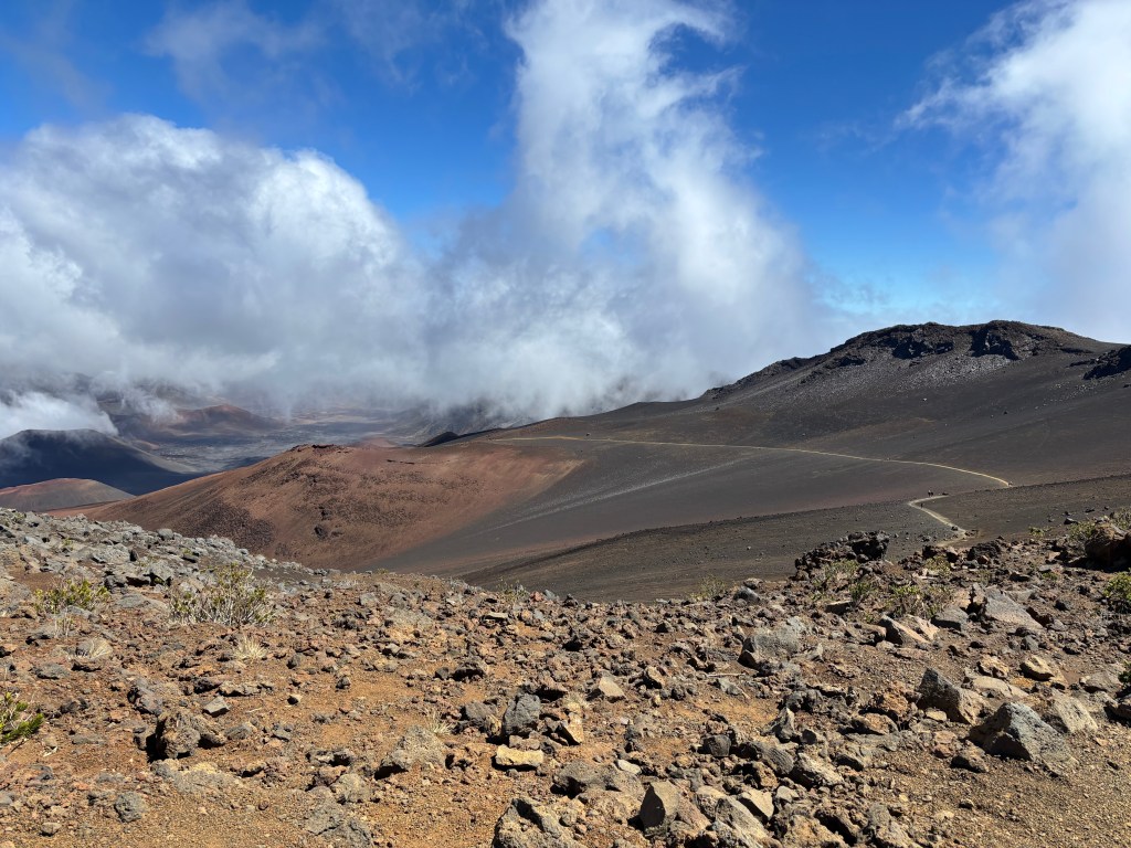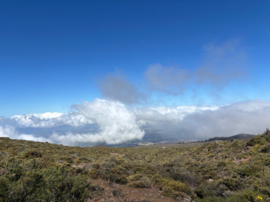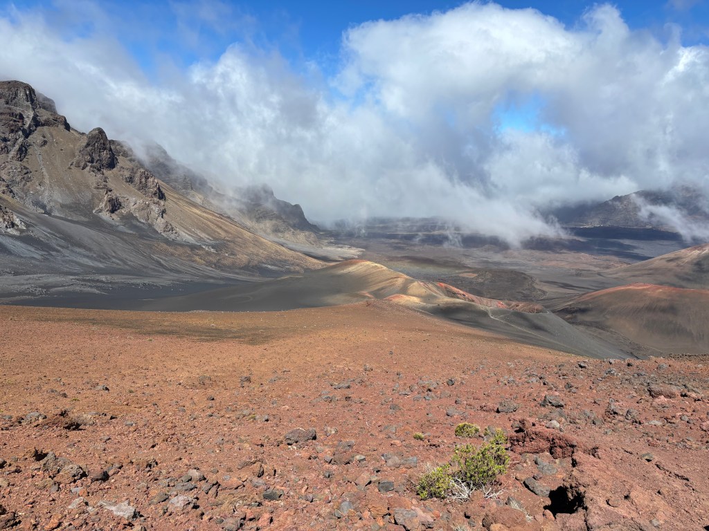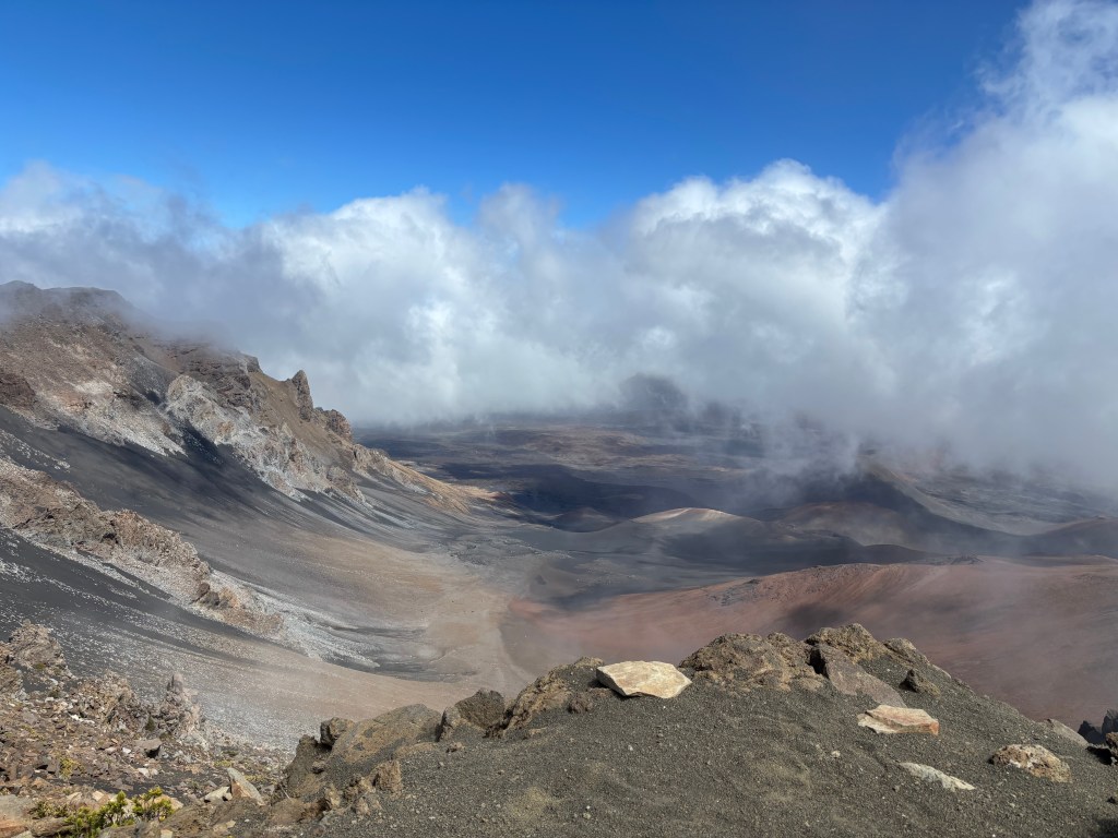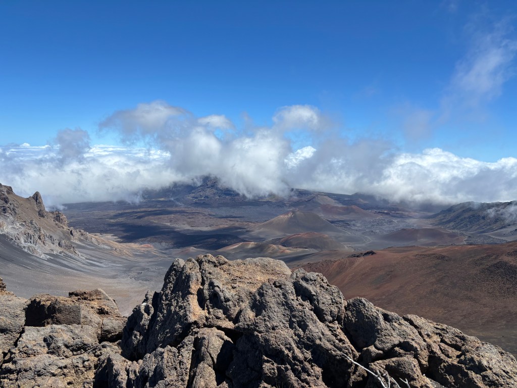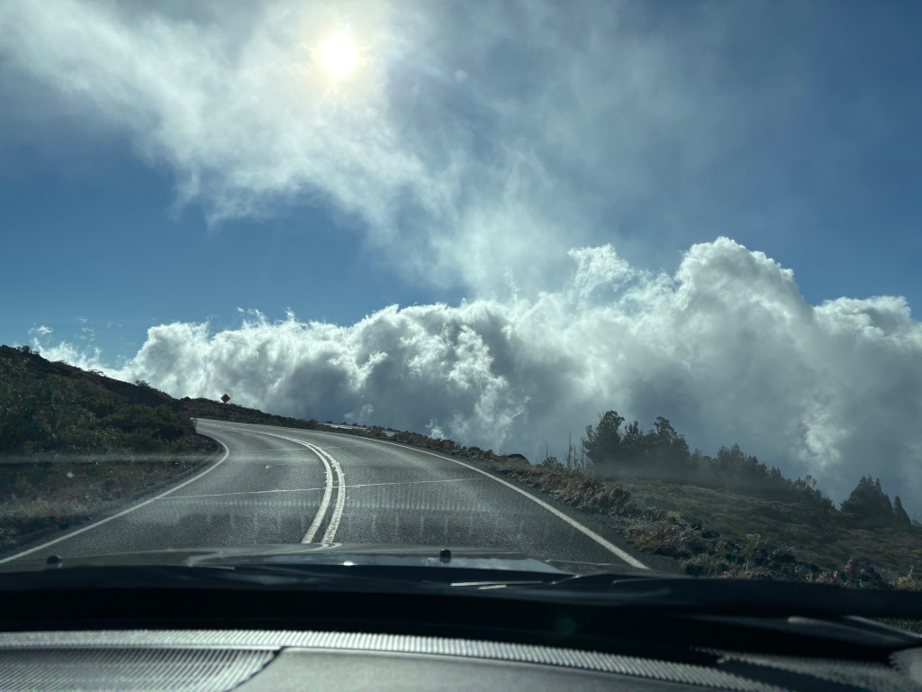 Halekala National Park is an active volcano that makes up the majority of the island, it’s highest peak standing at over 10,000 feet. The height was enough that we could feel the drastic temperature change, having to add layers as we drove higher. The peaks of Halekala were high enough as to be cloud-covered and blustery.