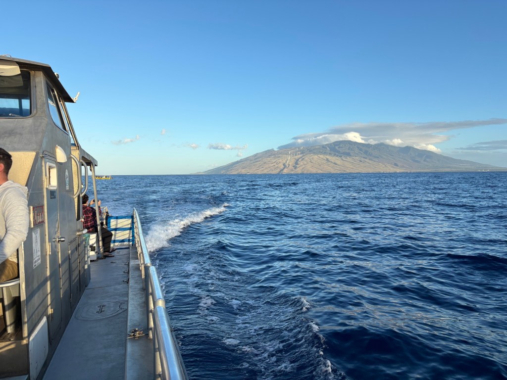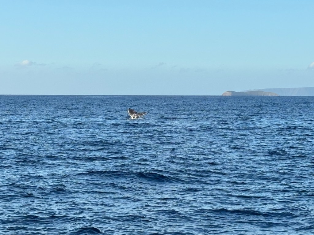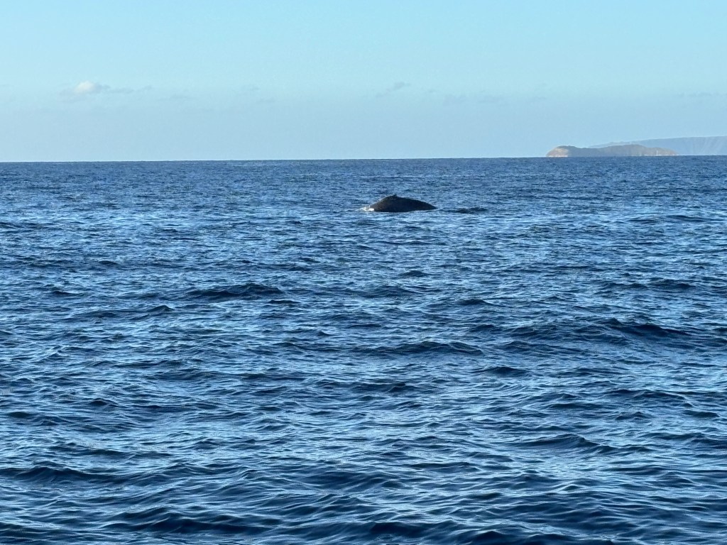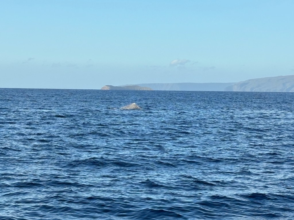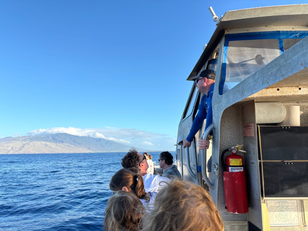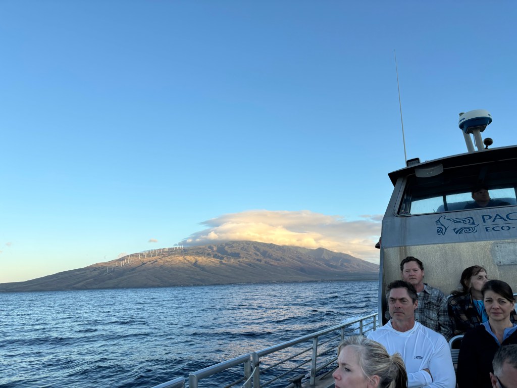 Our tour began at 7, and we spent two hours on the boat. Our guide had a master’s in conservation and was very knowledgable about whales. We enjoyed recieving information about whale migration patterns and feeding as we drove to an area where whales had been seen earlier in the morning. Our boat didn’t use any sonar because of the way the topography causes sound to bounce. Boats choose not to use sonar because if every boat used sonar, the whales would be overwhelmed by the noise within the confined space of the bays of Hawaii. Our boat drove around, looking for whales based on radio communication with other boats. Luckily, we stumbled upon a trio of young male whales and were able to follow them around for most of the ride. They said that the males didn’t usually travel together like that, but we’ve had great luck on whale watching tours recently! (Shout out to my sister’s friend Naina for suggesting this company!) At one point, the boat put down a hydrophone, or underwater microphone, so that we could listen to the whale song. It was one of the most hauntingly beautiful songs I’ve ever heard.