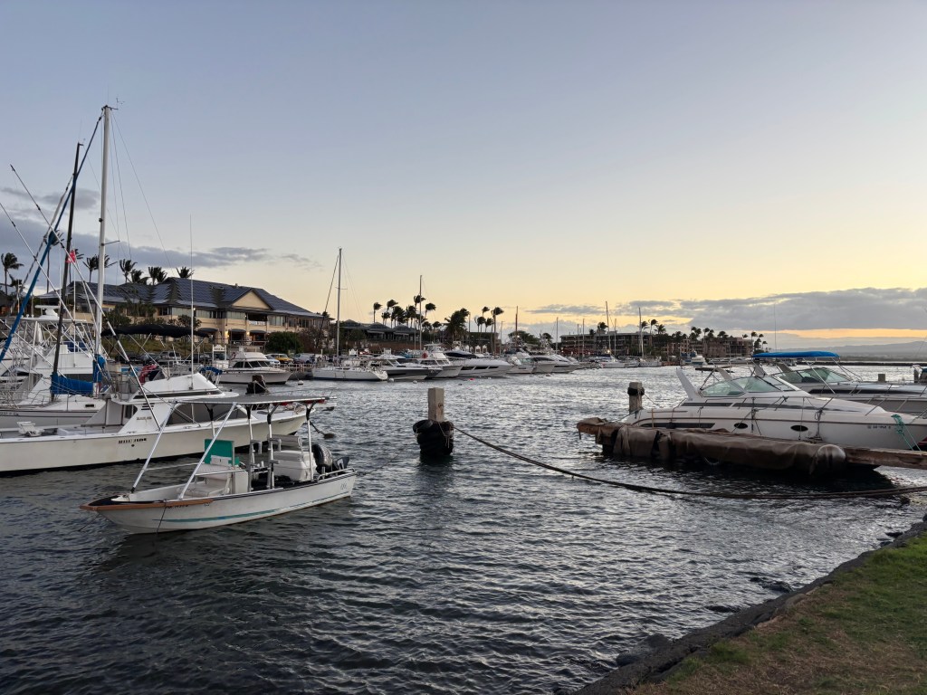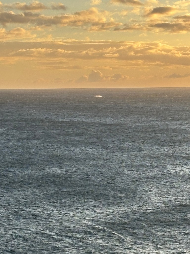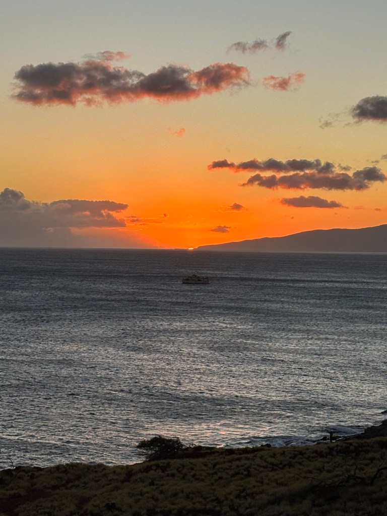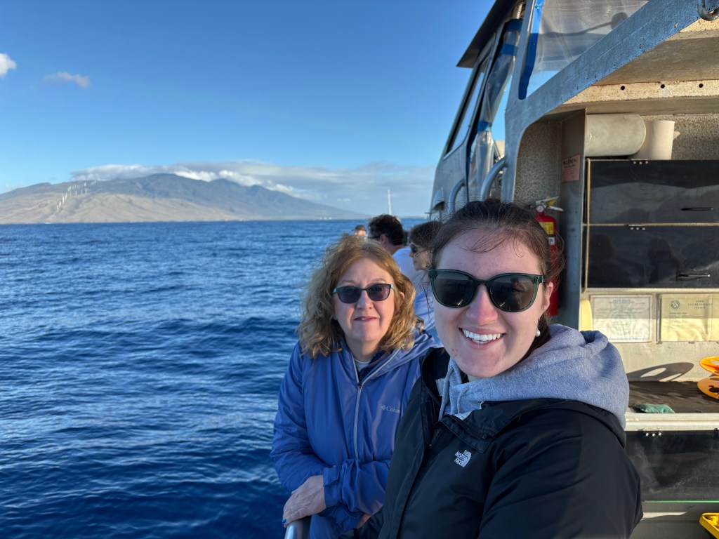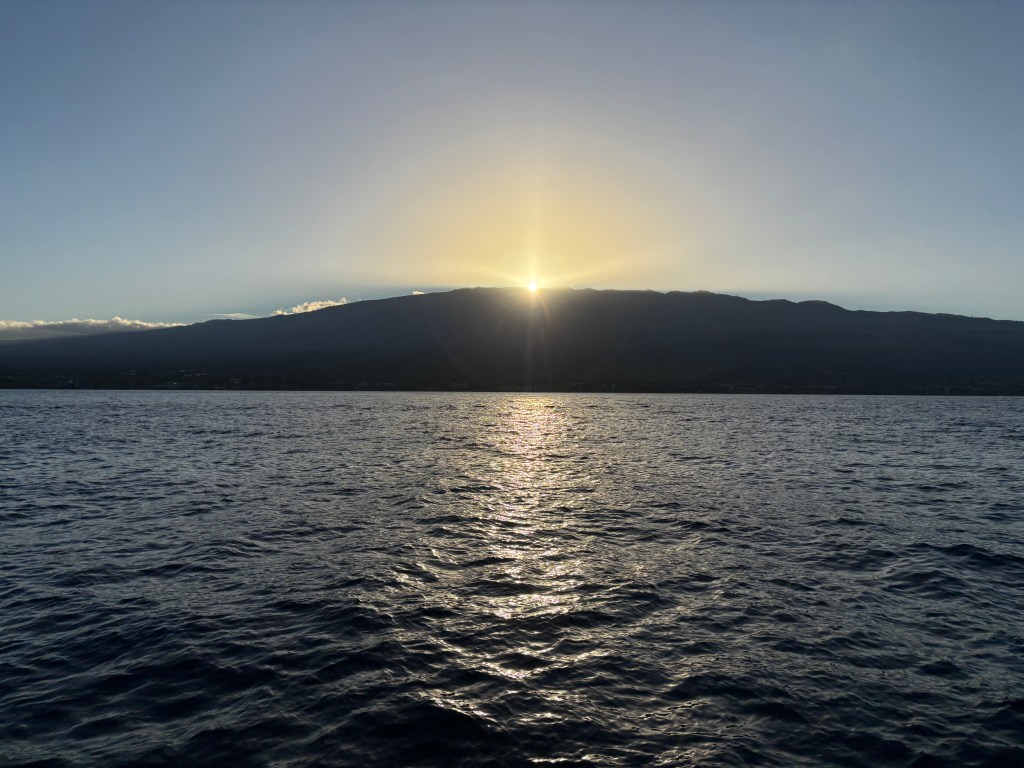 Our tour began at 7, and we spent two hours on the boat. Our guide had a master’s in conservation and was very knowledgable about whales. We enjoyed recieving information about whale migration patterns and feeding as we drove to an area where whales had been seen earlier in the morning. Our boat didn’t use any sonar because of the way the topography causes sound to bounce. Boats choose not to use sonar because if every boat used sonar, the whales would be overwhelmed by the noise within the confined space of the bays of Hawaii. Our boat drove around, looking for whales based on radio communication with other boats. Luckily, we stumbled upon a trio of young male whales and were able to follow them around for most of the ride. They said that the males didn’t usually travel together like that, but we’ve had great luck on whale watching tours recently! (Shout out to my sister’s friend Naina for suggesting this company!) At one point, the boat put down a hydrophone, or underwater microphone, so that we could listen to the whale song. It was one of the most hauntingly beautiful songs I’ve ever heard.