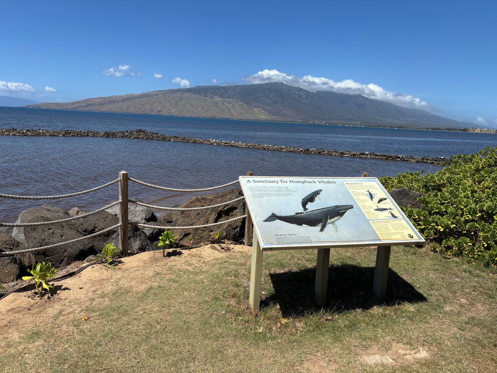 Then, we stopped off at the Hawaiian Islands Humpback Whale National Marine Sanctuary Visitor Center, which provided background information on whales and NOAA research. We walked along the beach and (unsuccessfully) tried to spy any of the whales we’d seen earlier.
