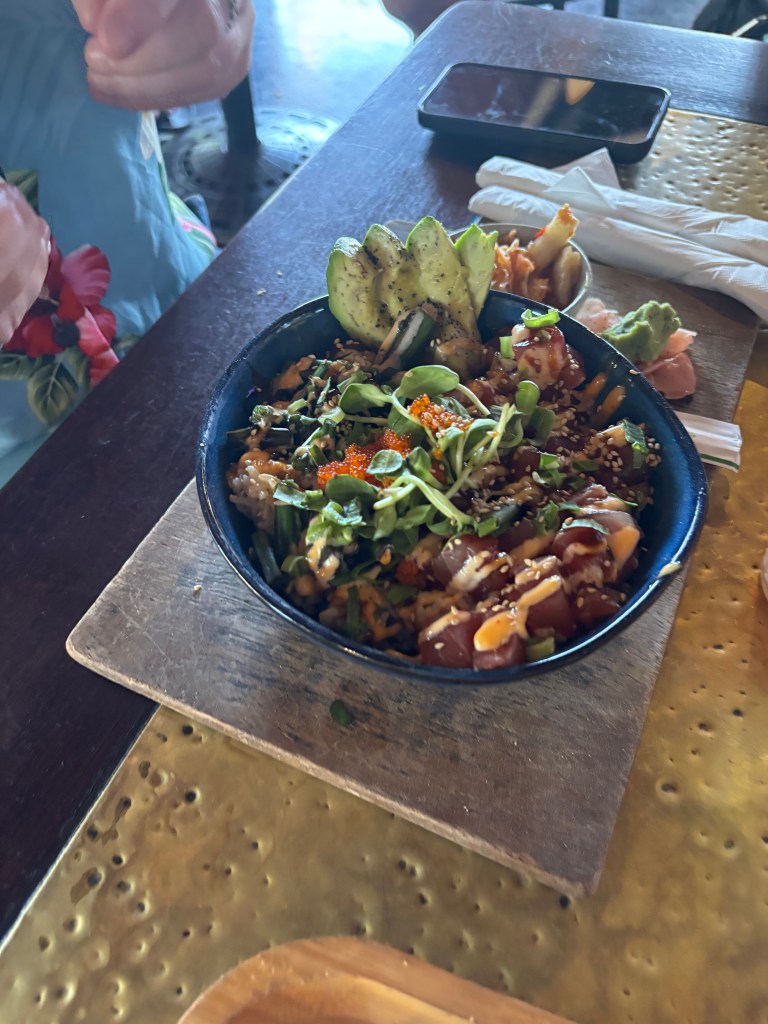 The last of Becca’s priorities had been to try some poke, so on the way to our flight off the island, we stopped at a restaurant and got her some. It was delicious! Then, we were off to the airport, boarding the airplane to our final island, the Big Island of Hawaii.