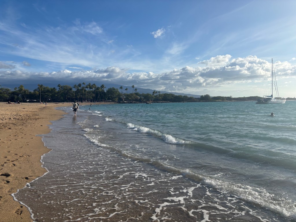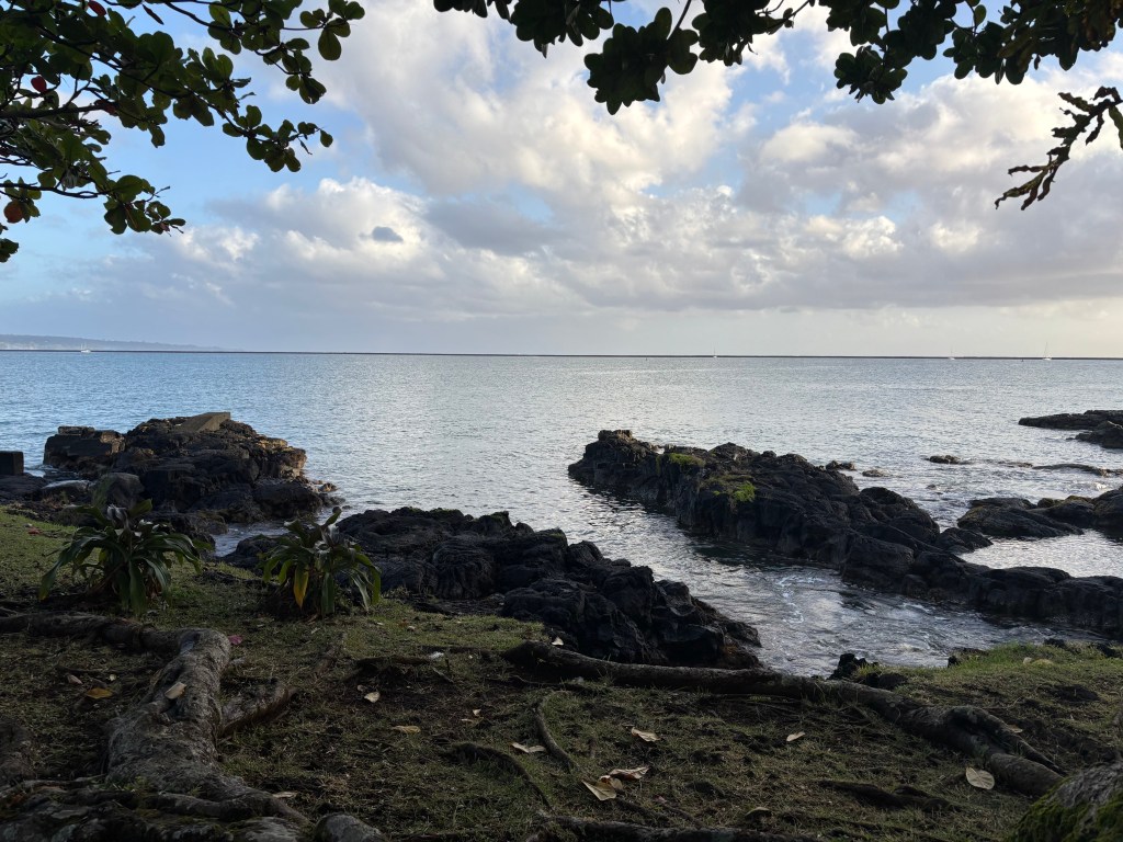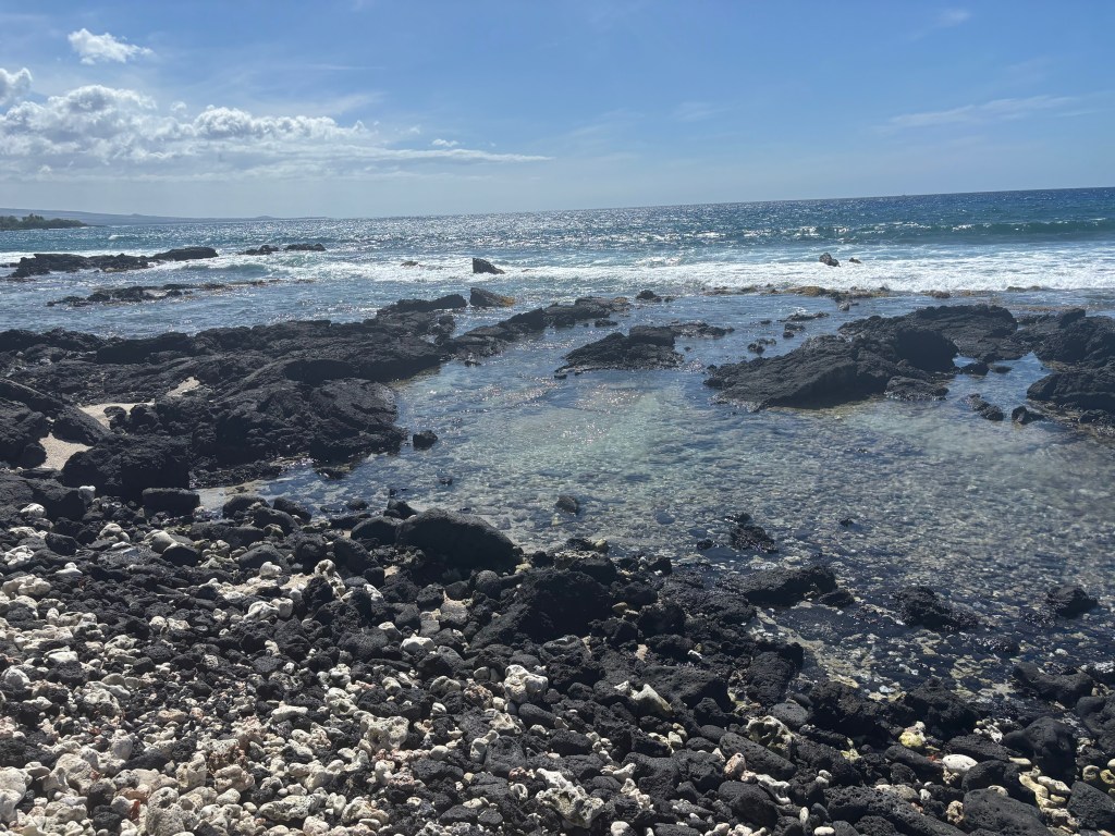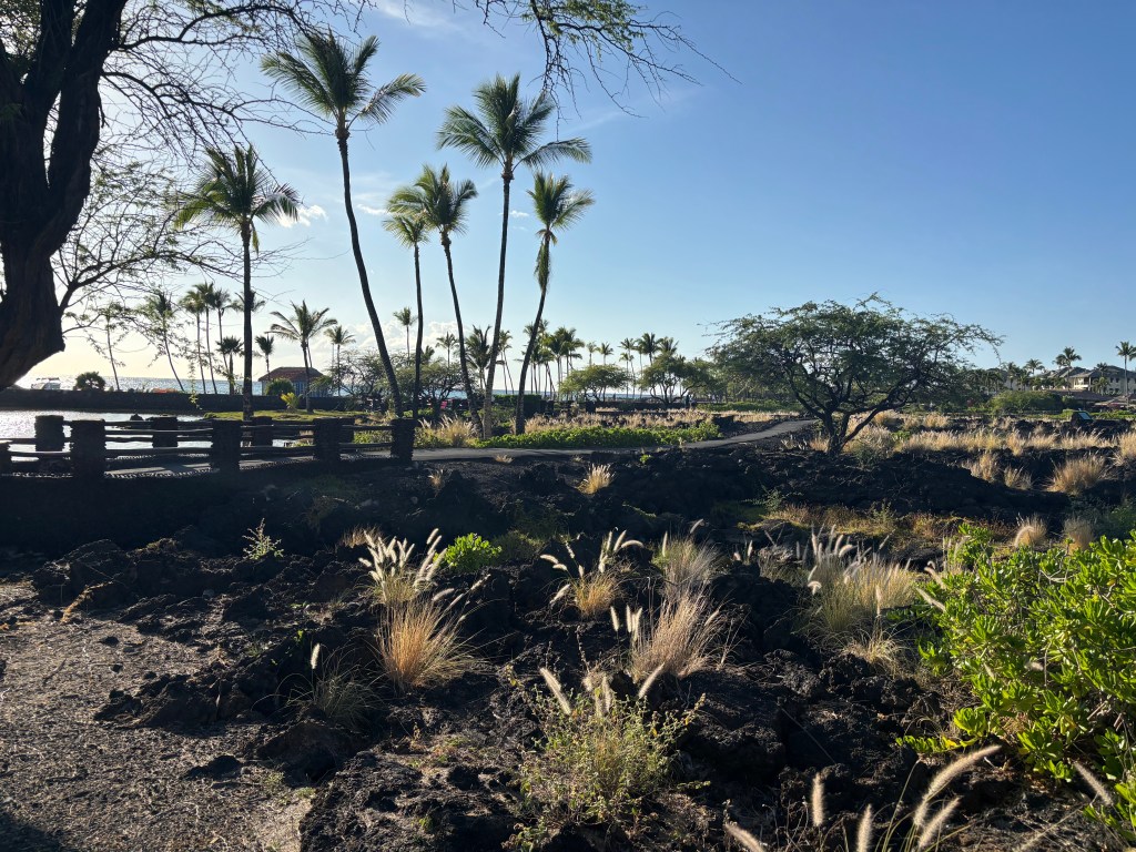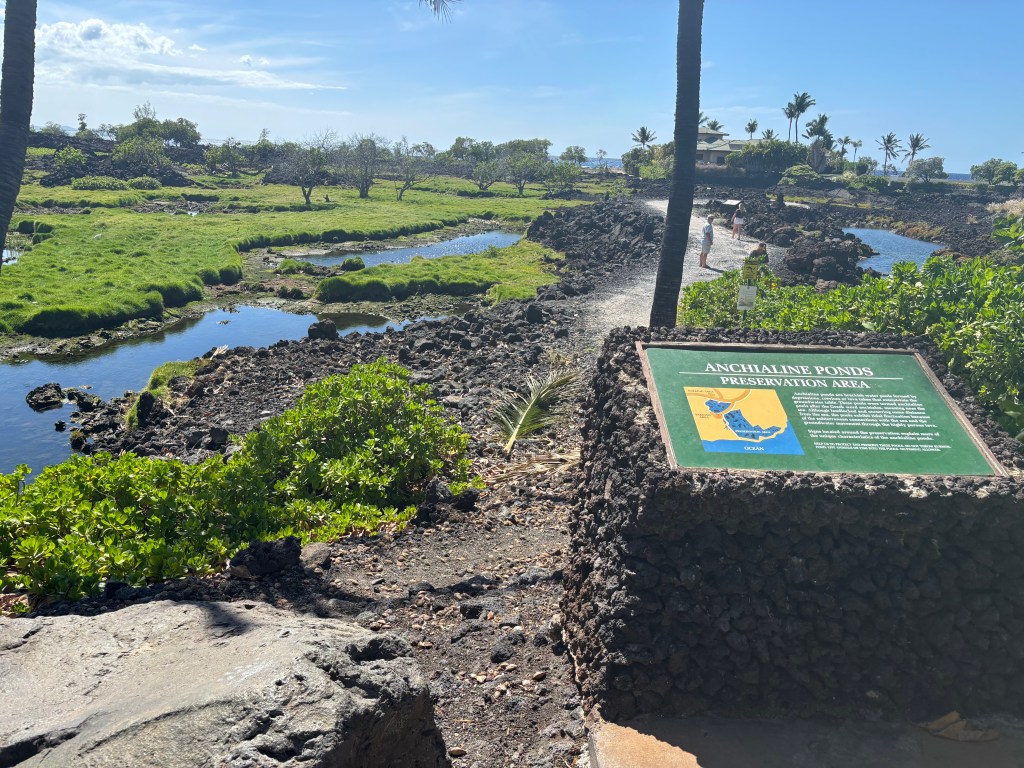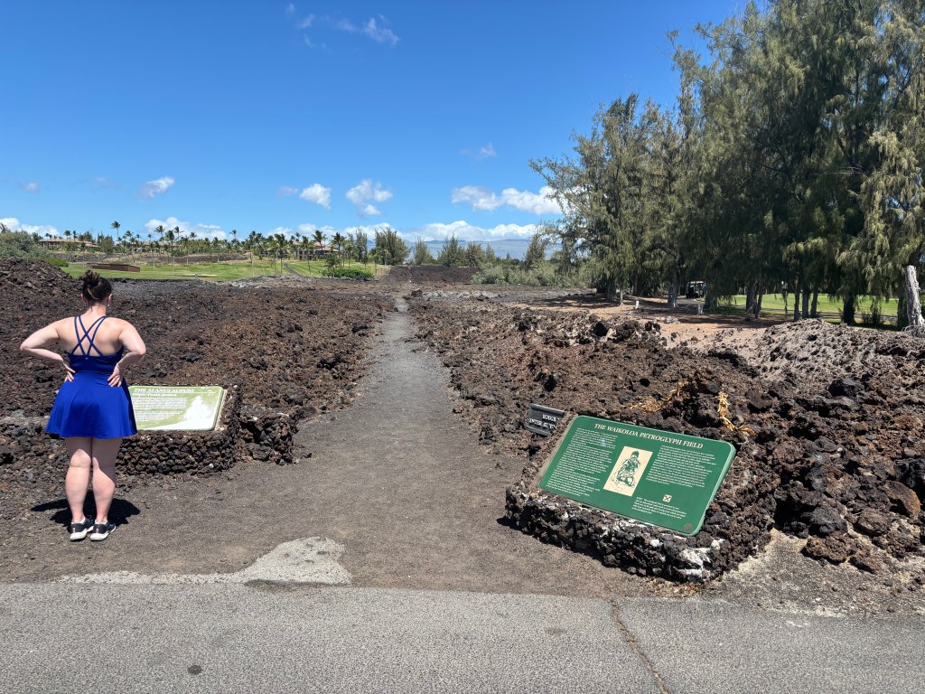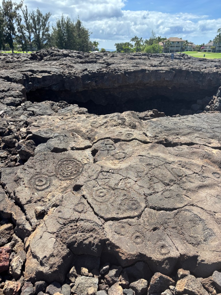 We finally found a mall at which to have lunch. We also got some of the famed shave ice. From there, we ended up stumbling on another petroglyph site in the middle of a golf course right next to the mall, and, nearby, we found a place where we could park our car and walk through a rocky path to access the resort beaches.