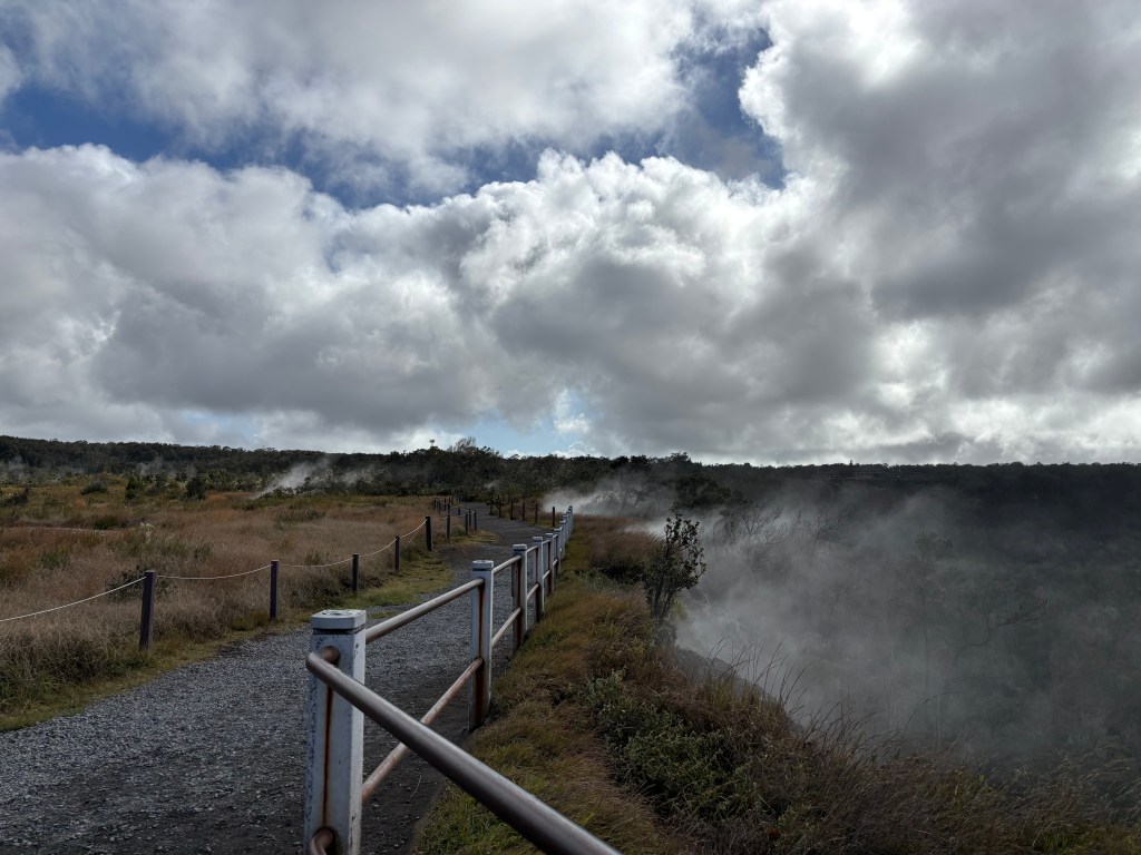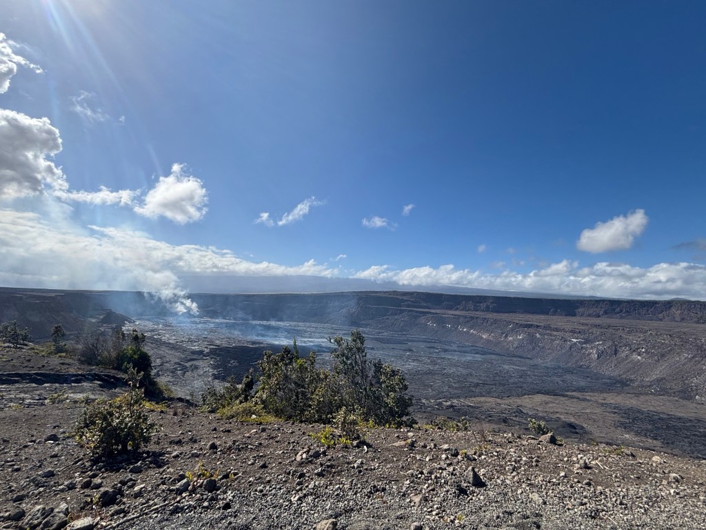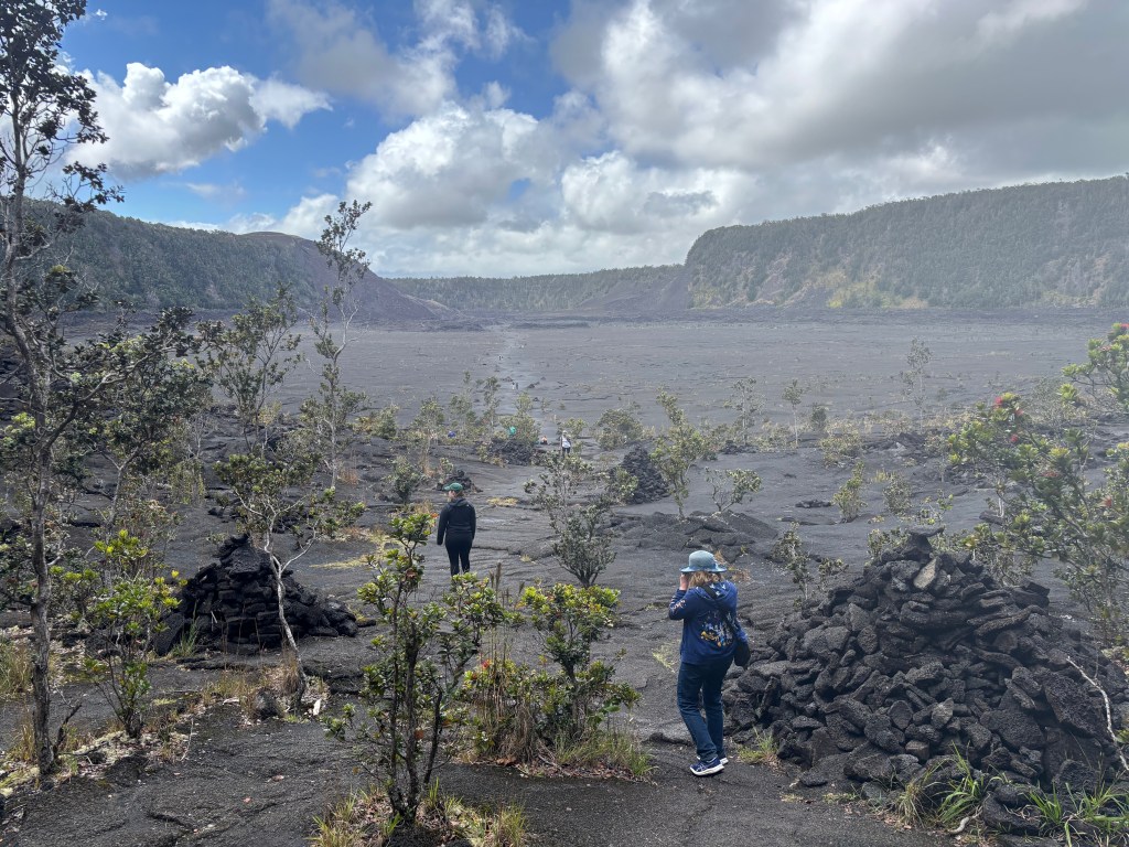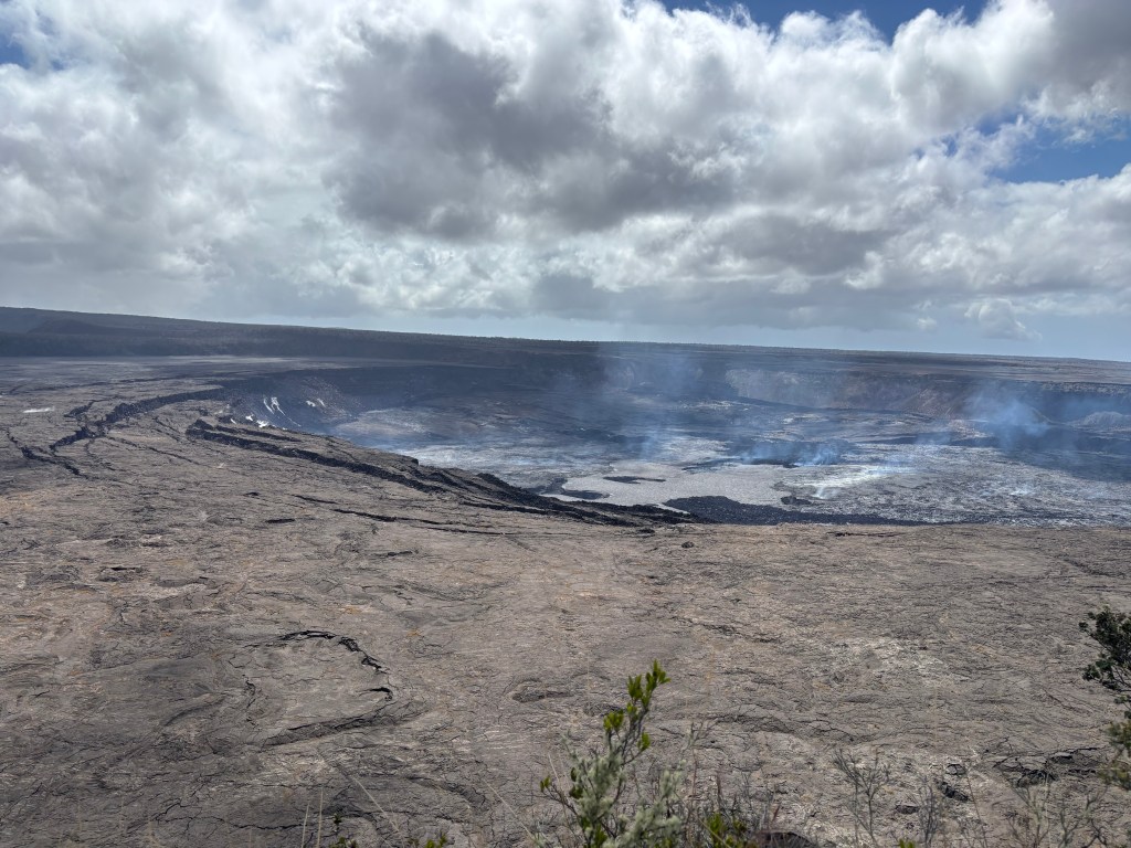 Next, we continued our drive around the crater rim, ending up at Devestation trail and the Keanakako’i Overlook. This overlook had clearly set up recently for eruption viewing.