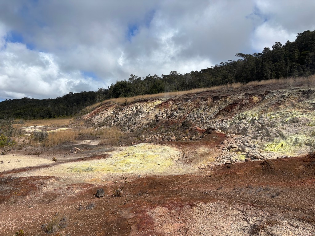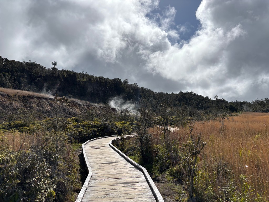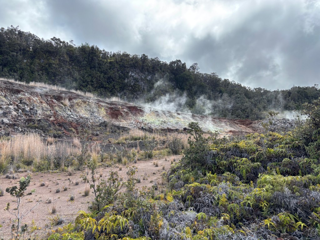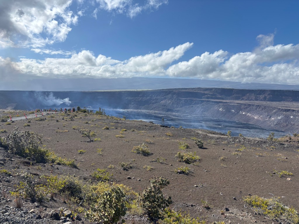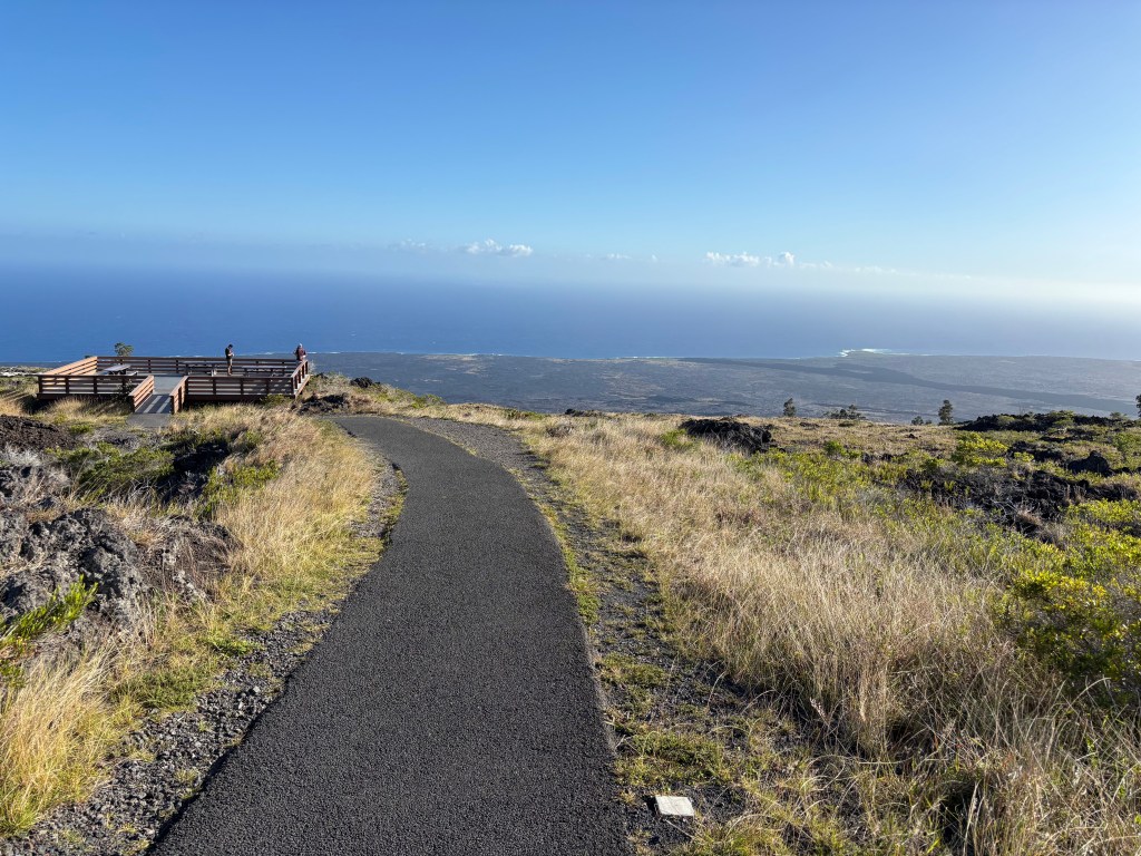 Next, we continued our drive around the crater rim, ending up at Devestation trail and the Keanakako’i Overlook. This overlook had clearly set up recently for eruption viewing.