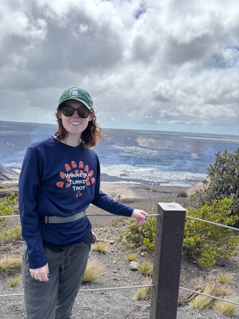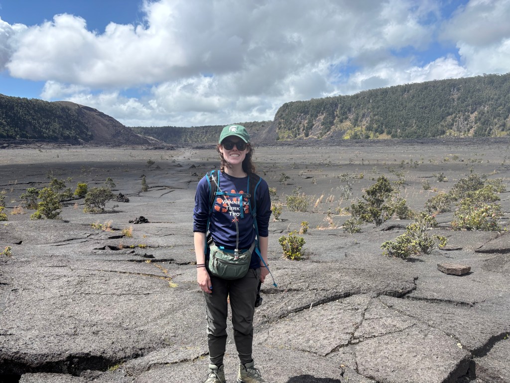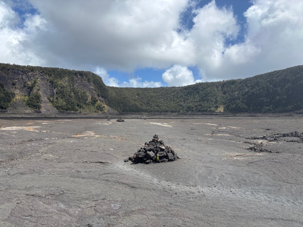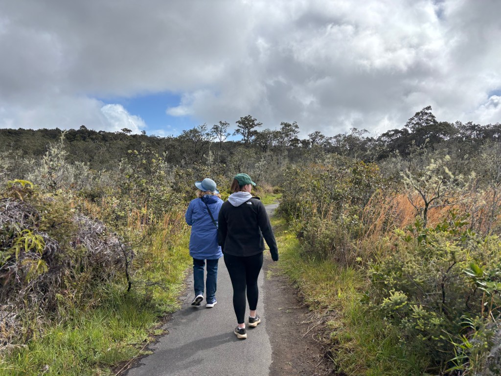 When we were done with the lava tube, we headed down the opposite direction, onto the Kilauea Iki Crater trail. I didn’t realize when we began the hike that it would bring us down into the caldera and onto the remains of an old lava flow from 1959. I thought we’d just be walking along the crater rim, and honestly, it was one of the coolest moments I’d ever experienced. I got some inkling as we continued to descend further and further, but it wasn’t until we came around the final corner that I realized we’d be able to actually walk along the floor of the volcano, on the dried lava of an old eruption.