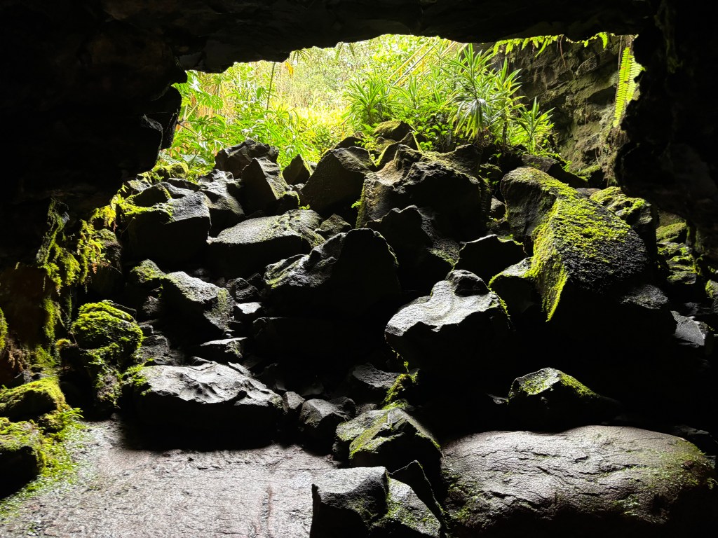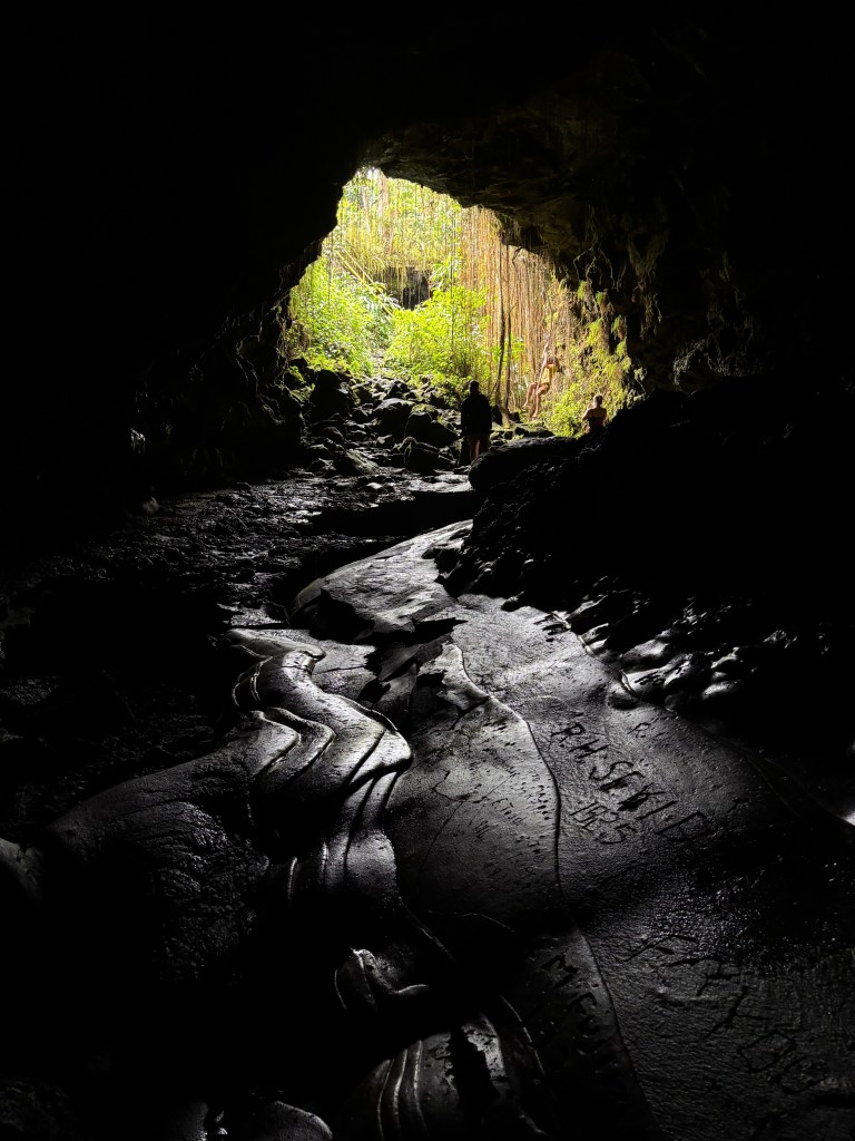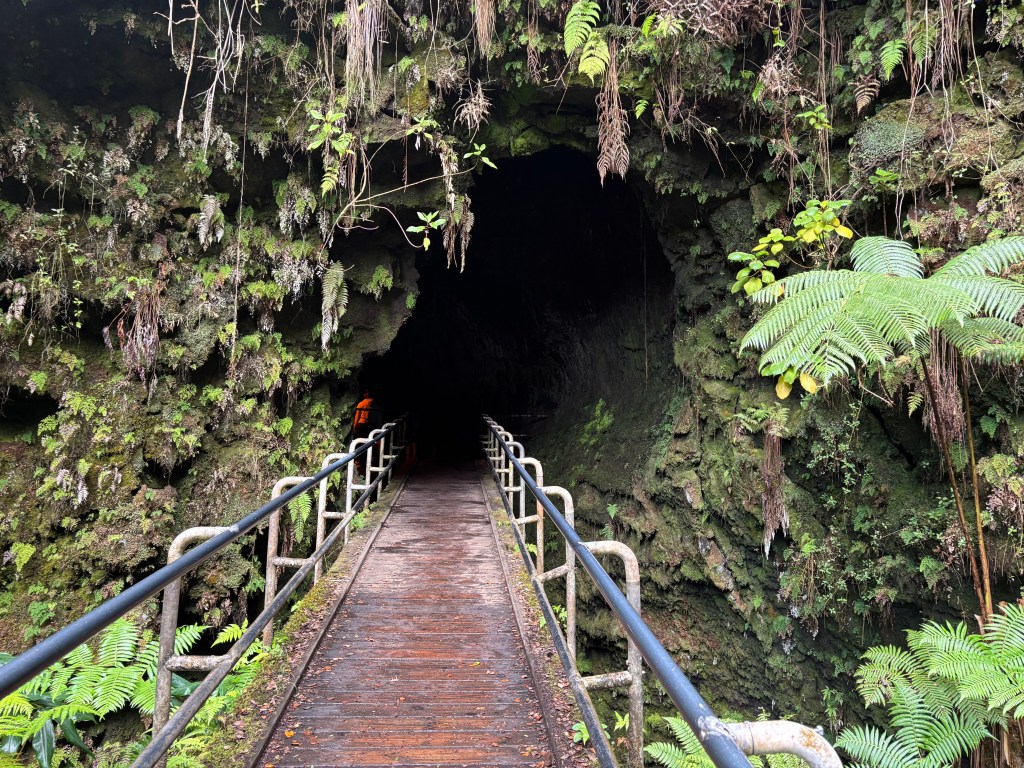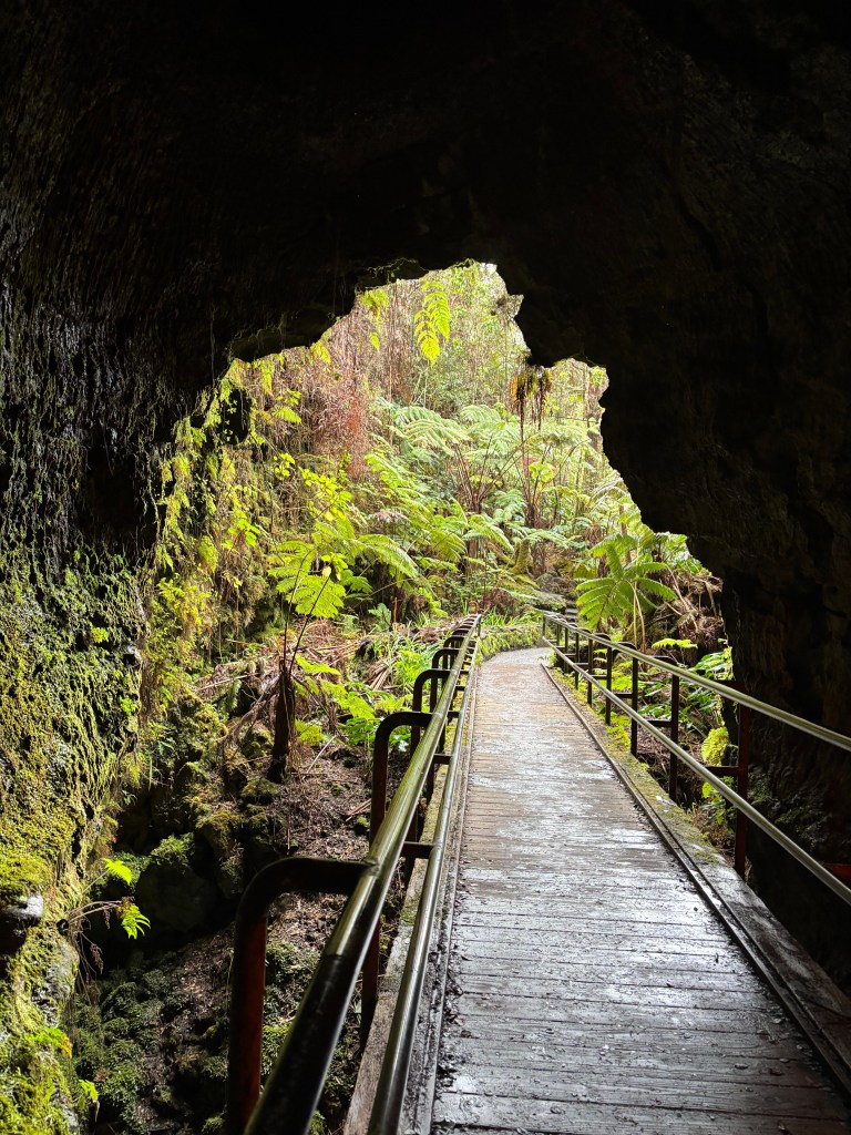 After one more lookout towards the end of the road that allowed us a different view of the caldera, we drove back down a different road to the Thurston Lava Tube, a natural tube that formed from flowing molten lava. When the lava drained away, the tube was what was left behind. The tube was unassuming, situated down some stairs in the middle of a forest. We hiked through the tube twice, marveling at the formation and the drastic temperature difference.