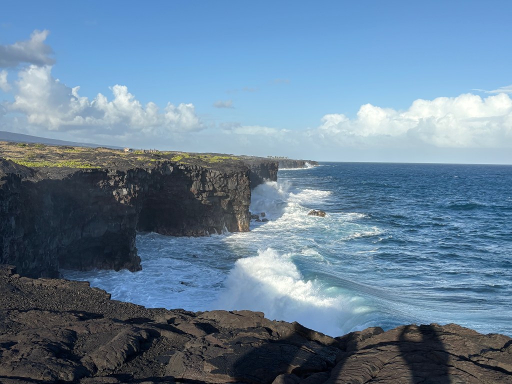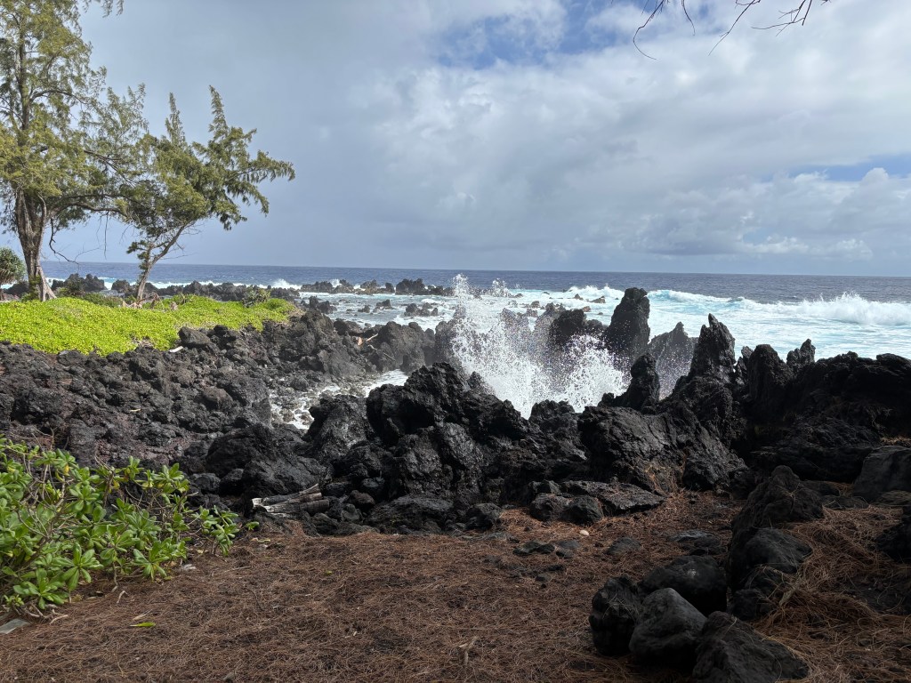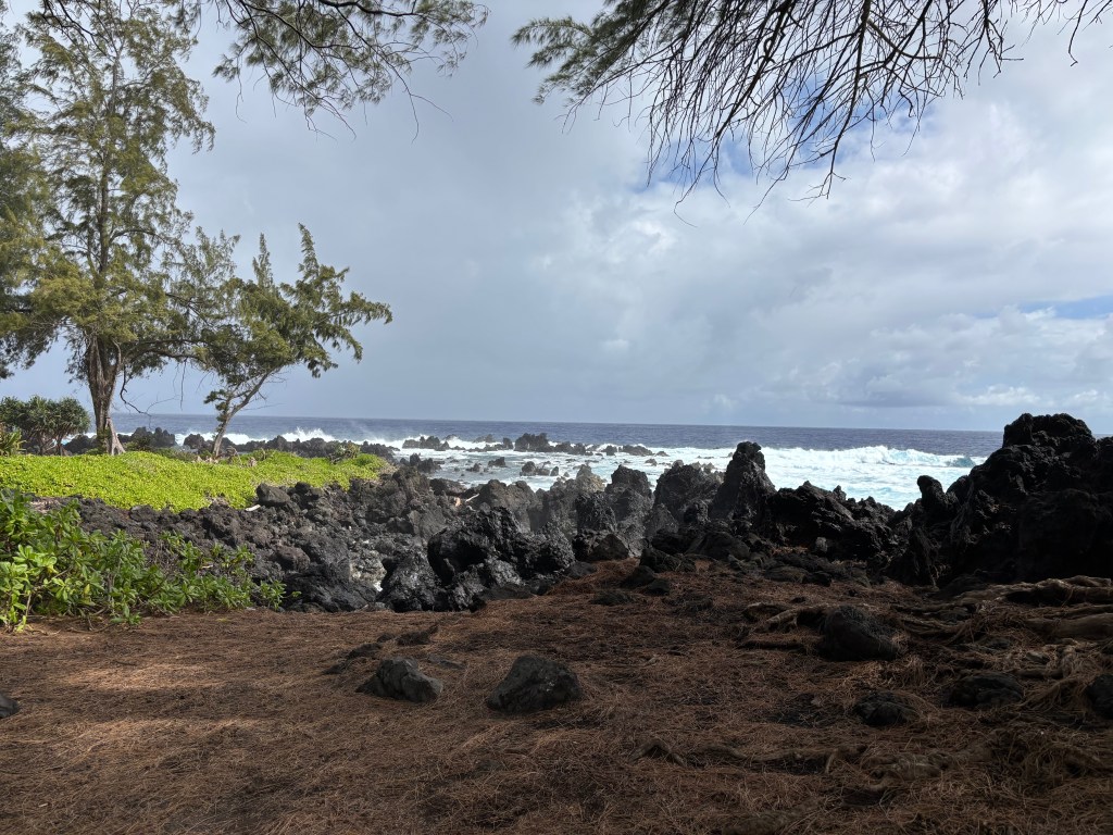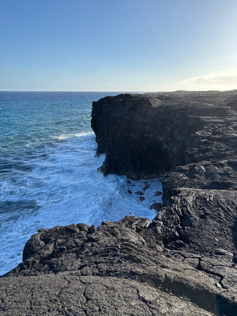 We followed the winding roads past numerous other eruption lava fields until we were able to see the water. We drove all the way down to the edge of the ocean, finding the Holei Sea Arch at the very bottom of the road.