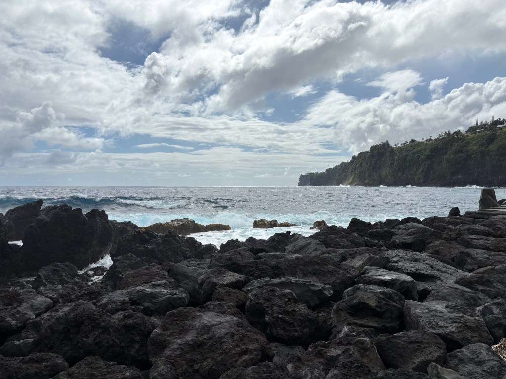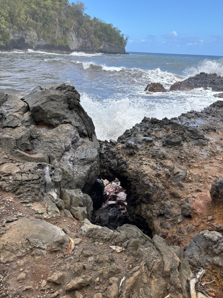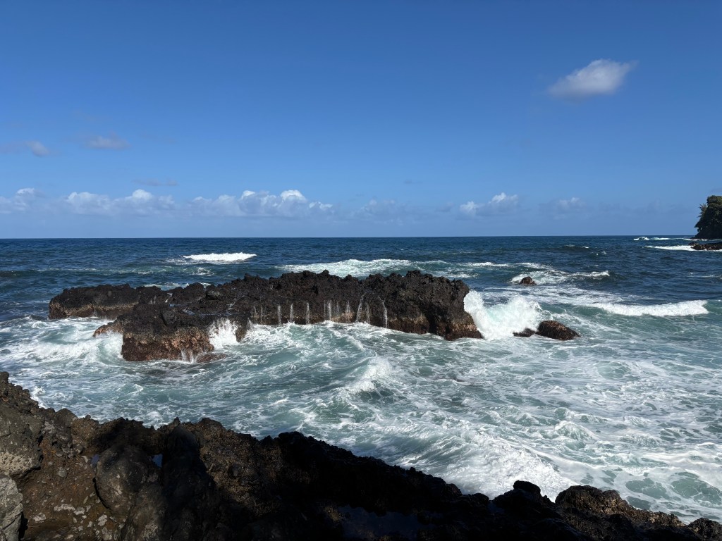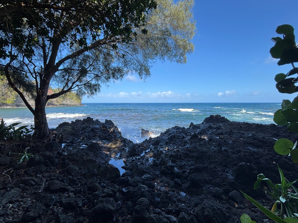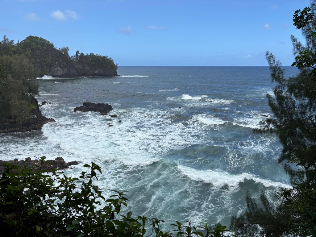 We followed the winding roads past numerous other eruption lava fields until we were able to see the water. We drove all the way down to the edge of the ocean, finding the Holei Sea Arch at the very bottom of the road.