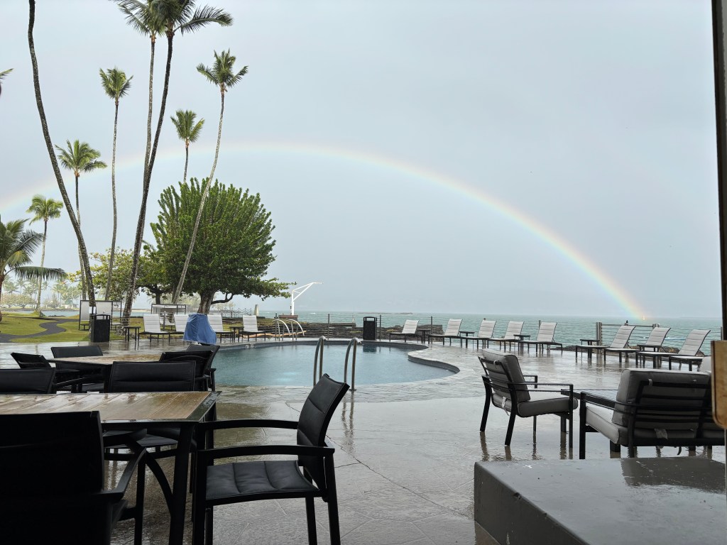 Our second day on the Big Island opened up with another rainbow. Because we’d finally seen my number one tourist site, I was in a relaxed mood and much more willing to just go where the day would take us. After enjoying the rainbow at breakfast, we checked out some more of the local park near our hotel, wandering through the Japanese garden and spotting some local fish and birds.