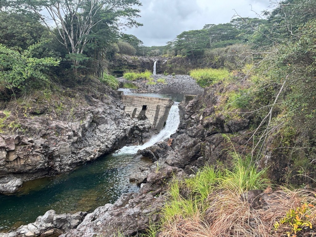 We began our drive north from Hilo, stopping at a few lookouts along the coast as we retraced our steps from yesterday for the first half-hour of the drive. We drove to a scenic point on the Kohala Mountain Road, finally seeing the west side of the island and the beaches we’d been looking so hard for yesterday. We stopped at one rocky beach, considering this pit stop. It wasn’t the prettiest or most comfortable-looking, so we decided to push on. After all, we’d seen many beaches from the lookout. But it wasn’t as easy as it seemed. Many of the beaches on the west side, it seemed, were accessible only through resorts.