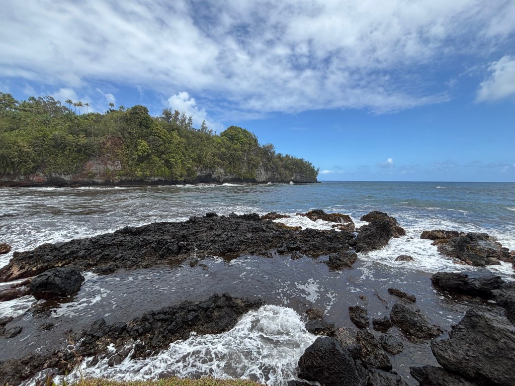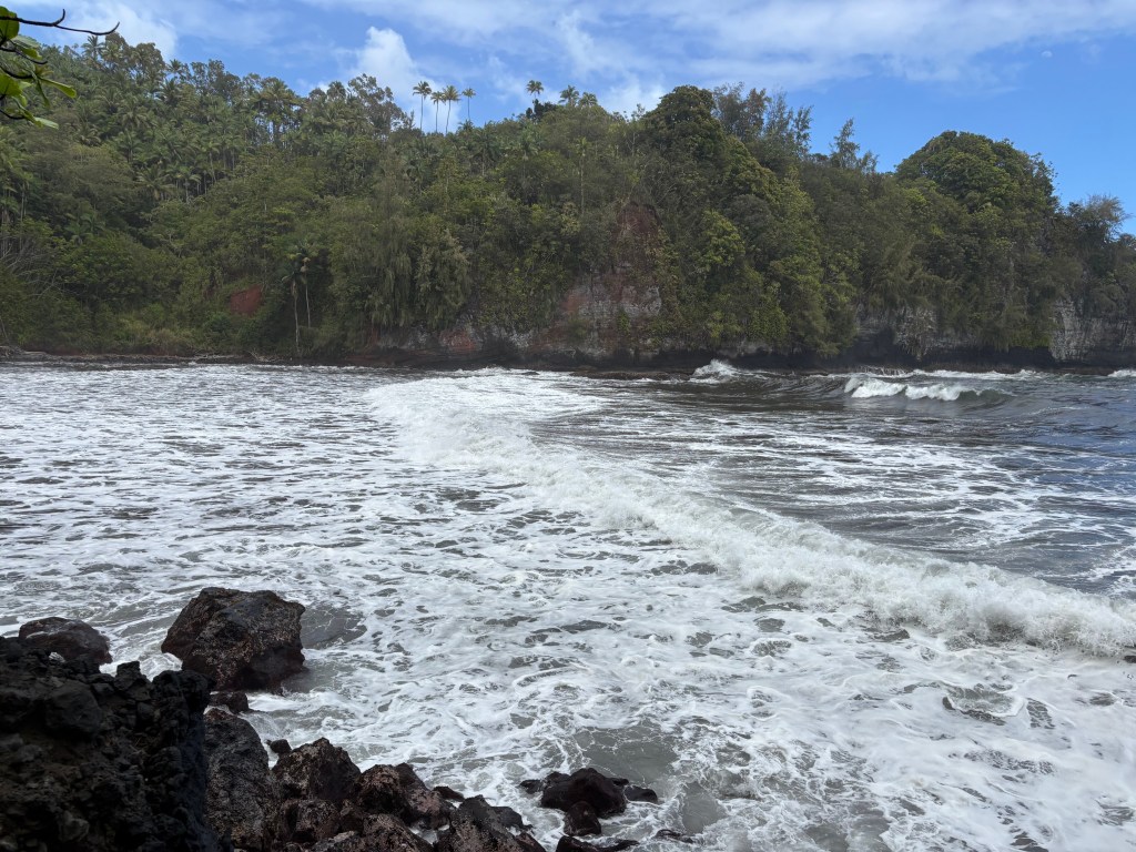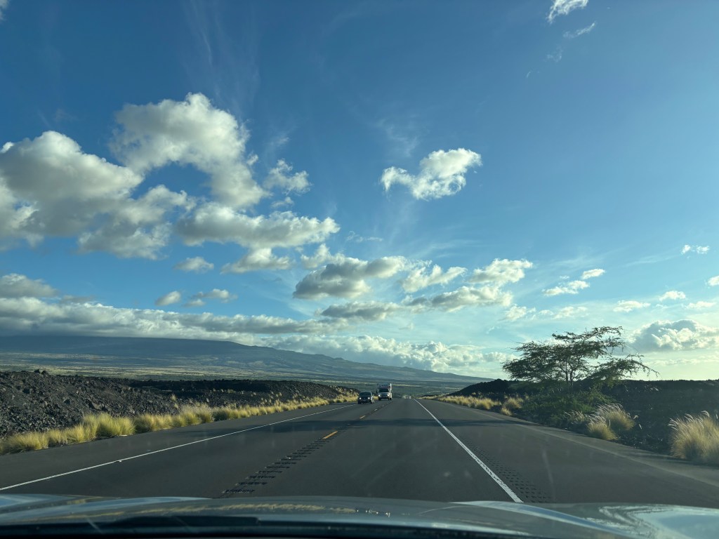 We woke up for our third day on the Big Island, now really committed to finding a beach. However, we needed to get back across the island so we could catch a flight later that day. We hoped that the west side of the island would offer better beach options. But because we’d decided to take the quick way across on our way there, we chose to take the longer way around the top of the island on our way back.