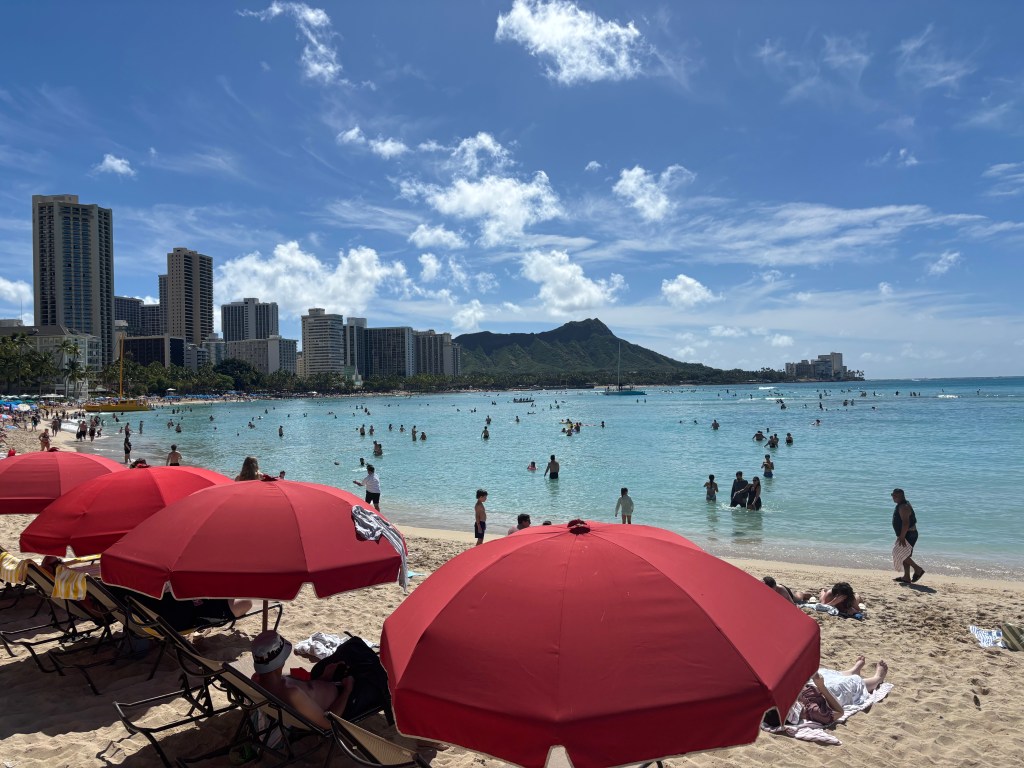 We spent some time wandering around the Waikiki area of Honululu, a ritzy shopping district reminiscent of the Magnificent Mile, before wandering onto Waikiki beach for our last true beach experience. (When in Hawaii, in true Murphy fashion, our family went to 3 islands in 10 days and didn’t truly get into the water until day 9 of 10.)
