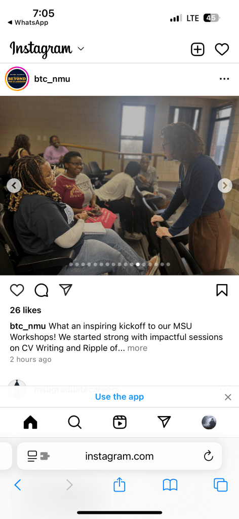 From there, Enoch and I started the first of many Student Workshops together, primarily focusing on professional development. This session was on LinkedIn, and we were able to introduce students to the fundamentals of LinkedIn profiles and job searching.