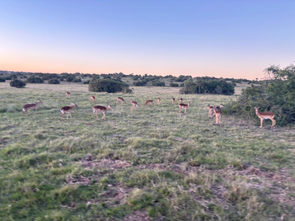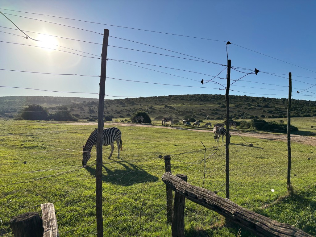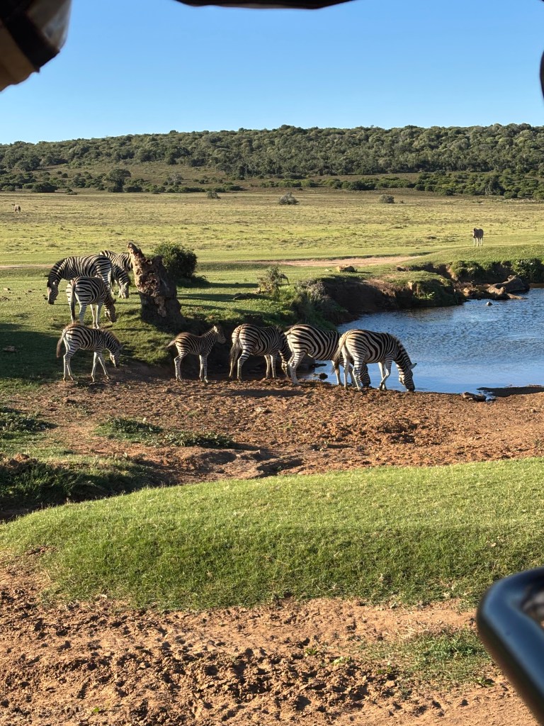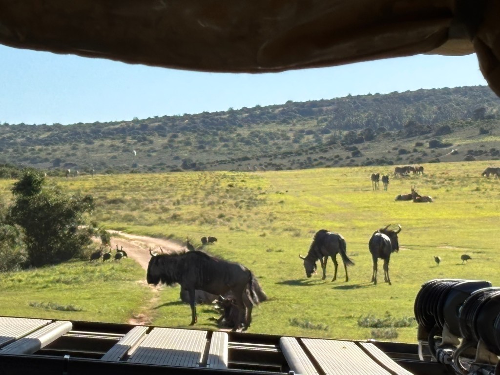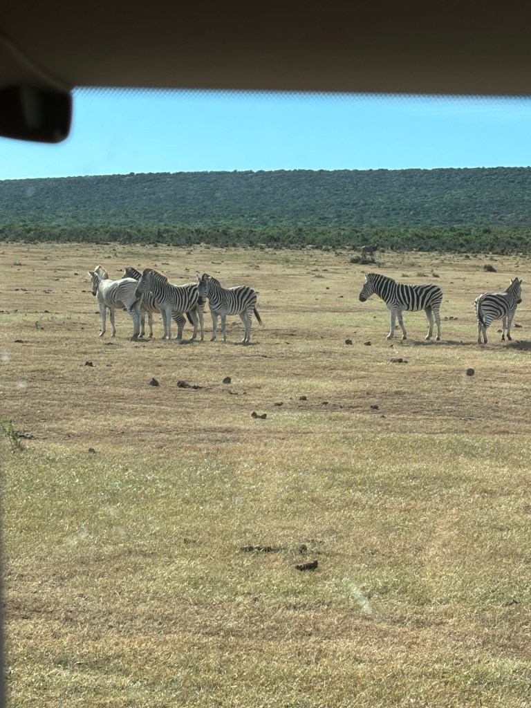 Our afternoon and evening were spent at Schotia Safaris Private Game Reserve. For this adventure, we hopped into a covered Land Rover and were driven through the park by a guide. Schotia is a family-owned private game reserve, the oldest in the Eastern Cape. It was started in the early 1800s and has been owned by the same family for six generations. They have forty different types of animals, many of which we got to see on our safari, and recently purchased more land on which to let their animals roam. While it isn’t a national park, with the lands bought and protected by the government, regardless of the wild animal habitat, it also is not a zoo, where animals are fed and given medical treatment. A game reserve is a swath of land purchased for the animals to live on, and they will usually originally be transferred onto that land from elsewhere, but ultimately they are experiencing the circle of life primarily undisturbed while on that land. The exception is when predators overhunting a certain species may prompt cause the owners to migrate populations to a different part of the park for the sake of the predator and/or the prey. Although game reserves may sometimes be used for people to hunt, this game reserve was purely for animal conservation and sightseeing, and there were actually stories we heard of rhino poaching that caused a lot of trauma and anger for the owners.