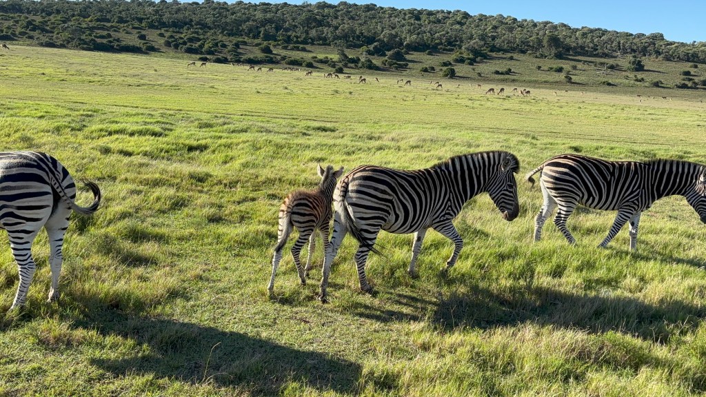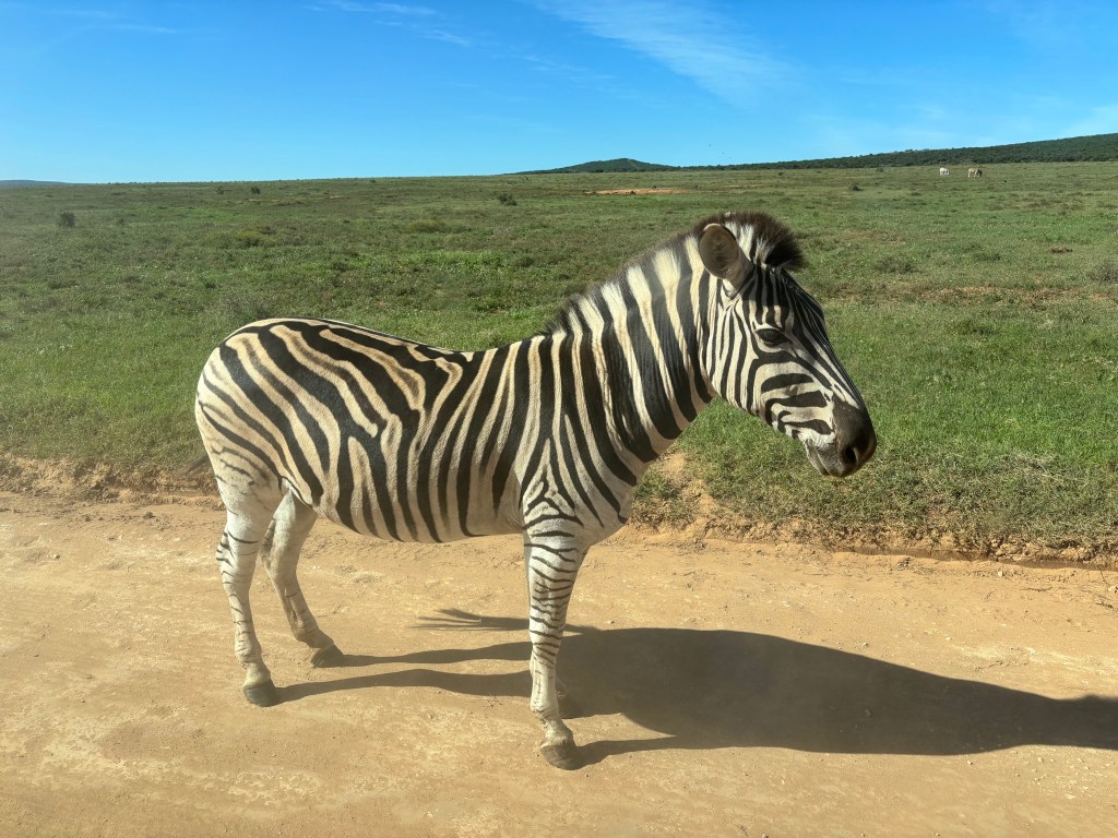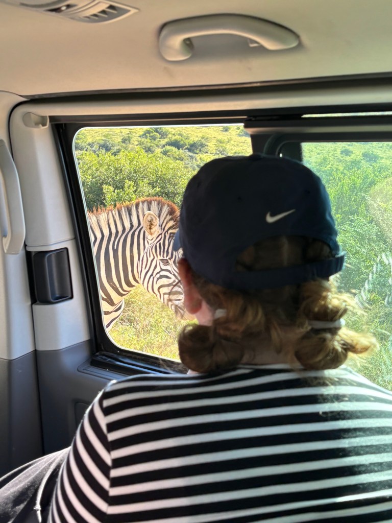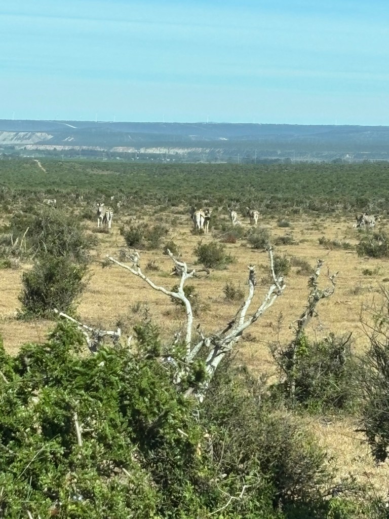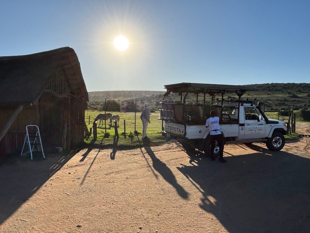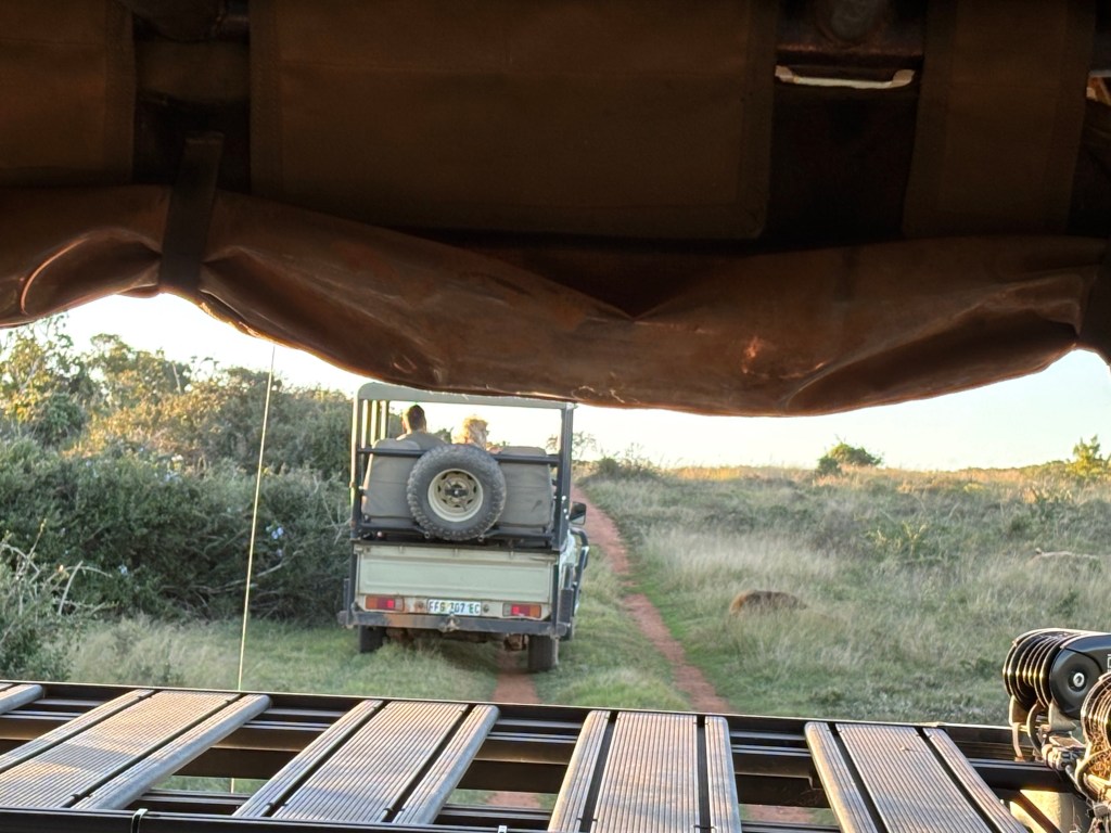 Our afternoon and evening were spent at Schotia Safaris Private Game Reserve. For this adventure, we hopped into a covered Land Rover and were driven through the park by a guide. Schotia is a family-owned private game reserve, the oldest in the Eastern Cape. It was started in the early 1800s and has been owned by the same family for six generations. They have forty different types of animals, many of which we got to see on our safari, and recently purchased more land on which to let their animals roam. While it isn’t a national park, with the lands bought and protected by the government, regardless of the wild animal habitat, it also is not a zoo, where animals are fed and given medical treatment. A game reserve is a swath of land purchased for the animals to live on, and they will usually originally be transferred onto that land from elsewhere, but ultimately they are experiencing the circle of life primarily undisturbed while on that land. The exception is when predators overhunting a certain species may prompt cause the owners to migrate populations to a different part of the park for the sake of the predator and/or the prey. Although game reserves may sometimes be used for people to hunt, this game reserve was purely for animal conservation and sightseeing, and there were actually stories we heard of rhino poaching that caused a lot of trauma and anger for the owners.