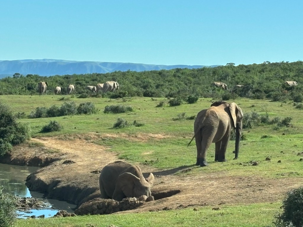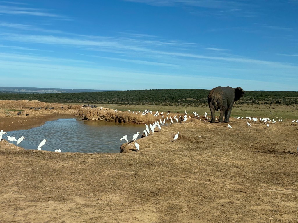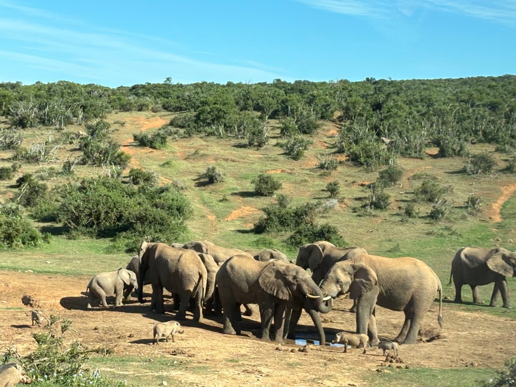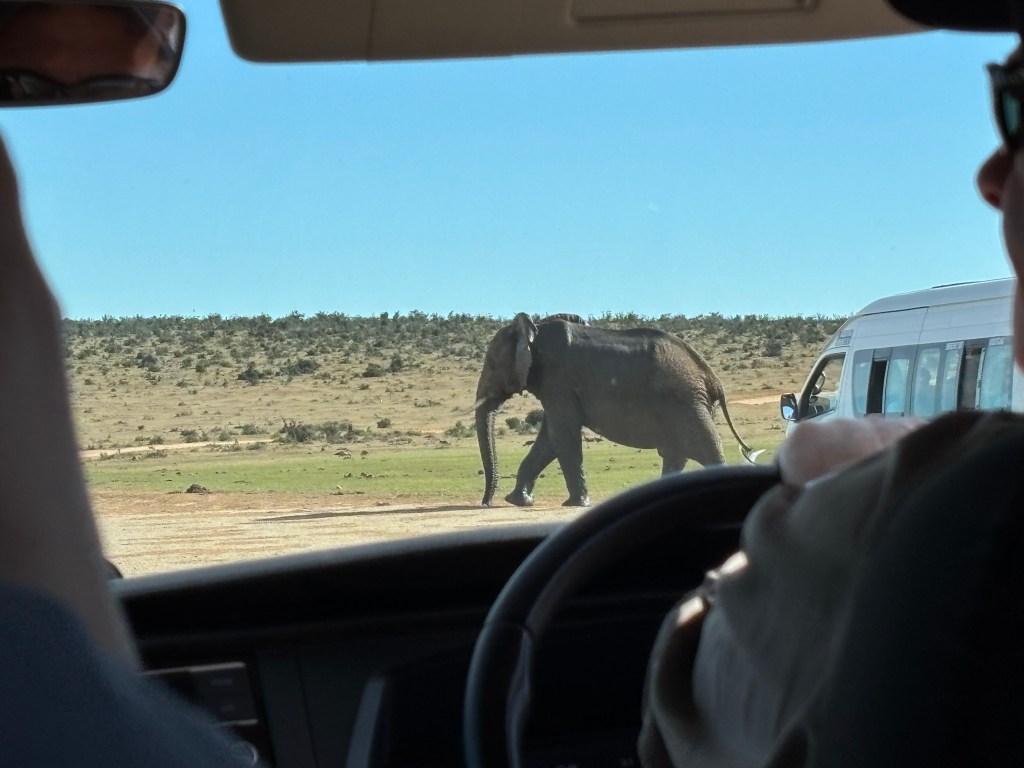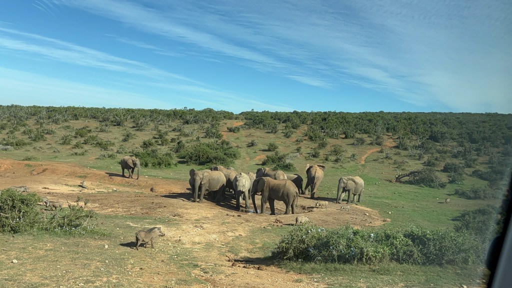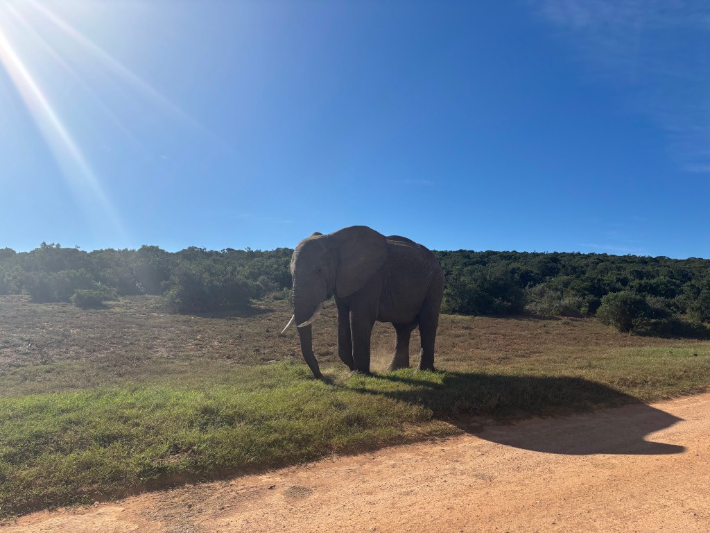 Our first Saturday in PE/GQ was our safari. The day was broken up into two parts: in the morning, we went to Addo Elephant National Park. Addo is the third-largest national park in South Africa, hosting South Africa’s “big five”, the lion, leopard, rhinoceros, elephant, and cape buffalo. It also is home to the southern right whale and great white shark, making up what they call the “Big 7”.