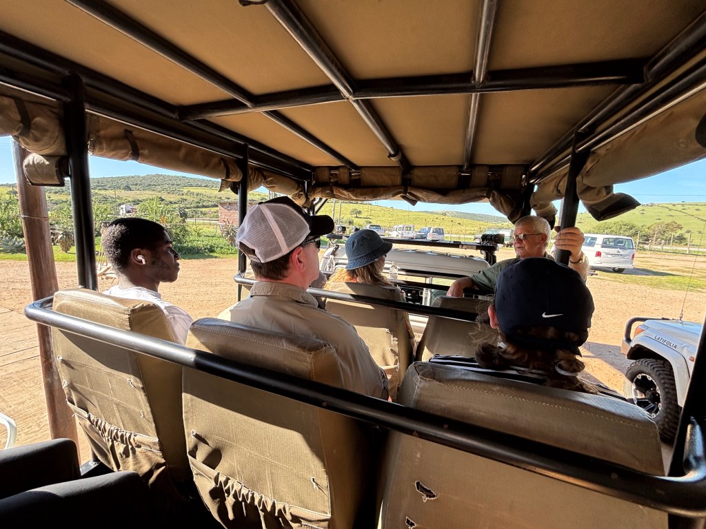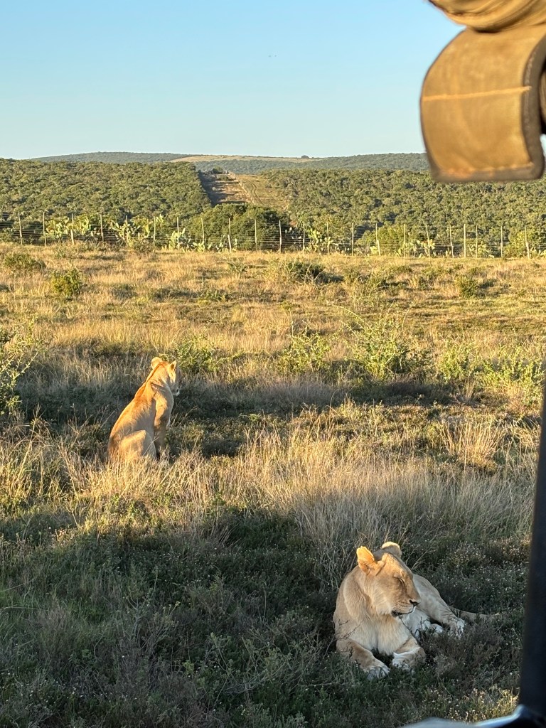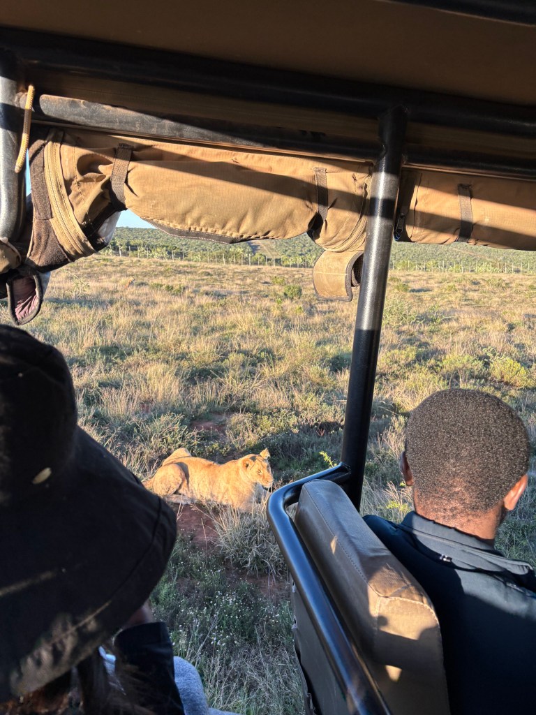 We drove around, seeing many of the same animals we’d seen at Addo. About an hour and a half into our adventure, we stopped to have some tea before heading back out again. The second half of the afternoon was filled with more animal sightings. While on the safari, we saw many animals, including elephants, warthogs, rhinos, zebras, antelopes, ostriches, lions, giraffes, and hippos. We learned that the lions, which were the stars of the day, were part of an effort to reintroduce a line of Cape lion genetics to the region. This type of lion originally went extinct in the wild in the 1800s, but the lions in Schotia have genetic similarities to the Cape lions and were reintroduced a few years ago. They were now at the point of three generations in this lion family, totaling about 9 lions in the pride, and are hoping to continue conservation of this lion population.