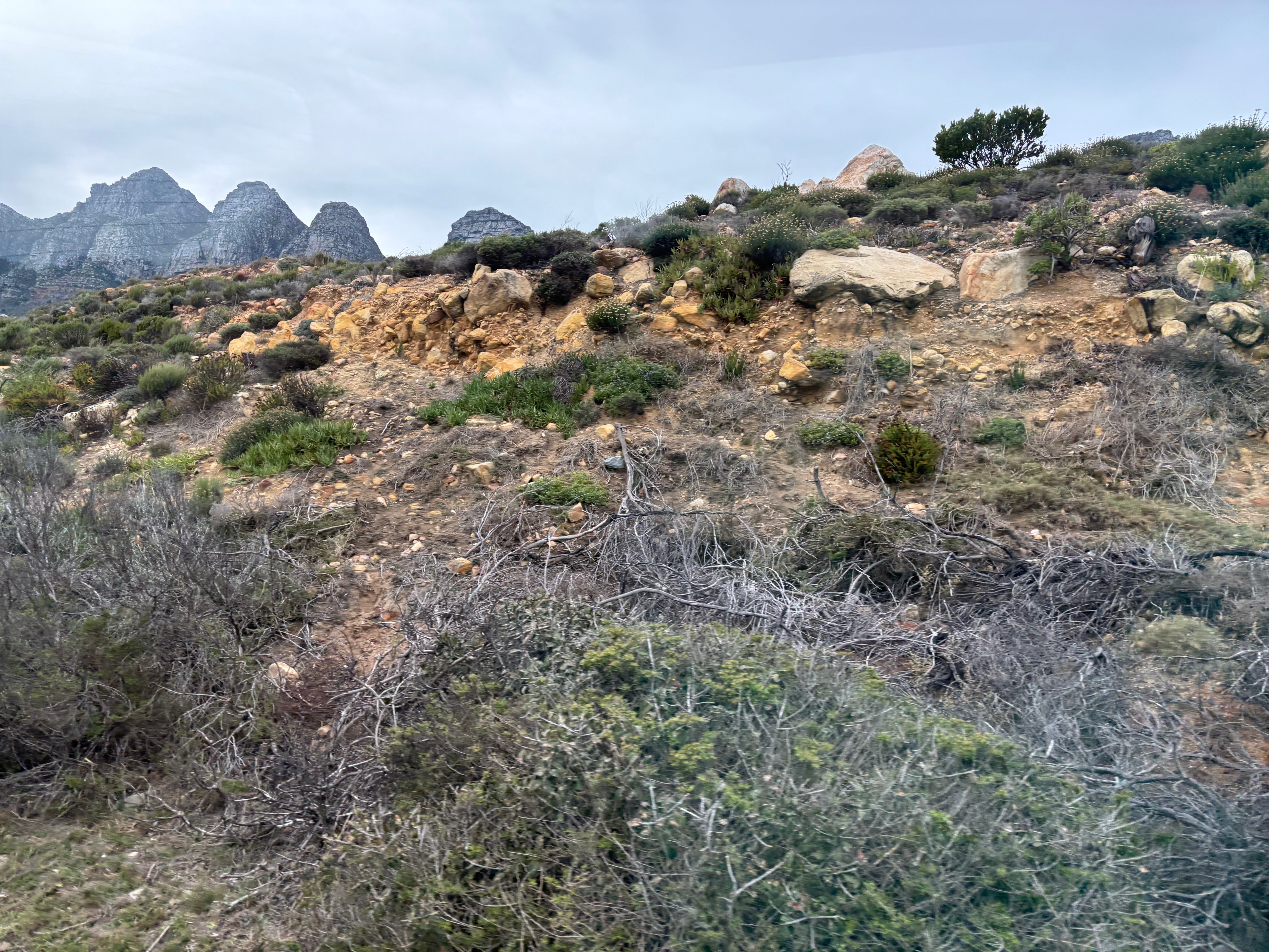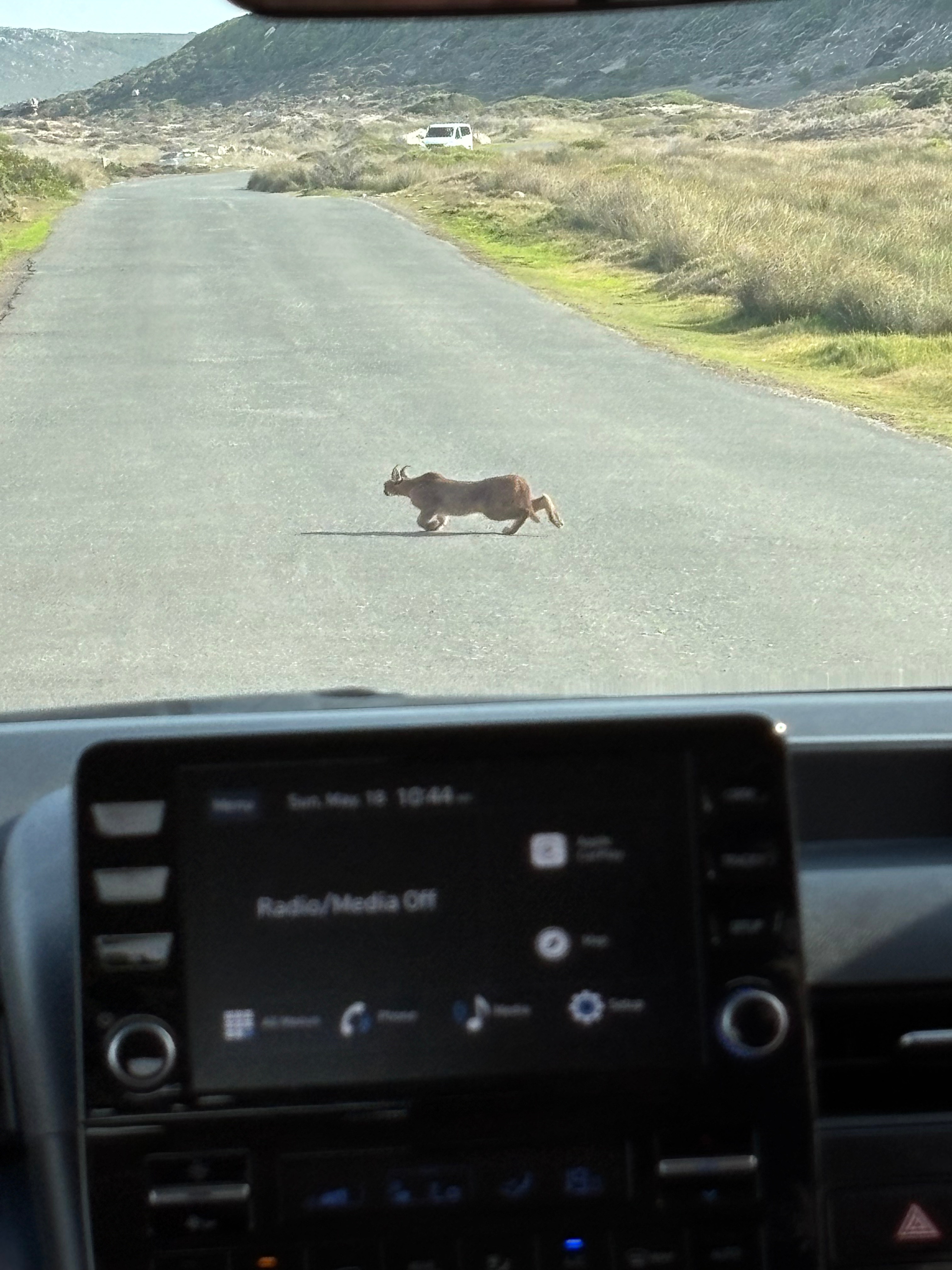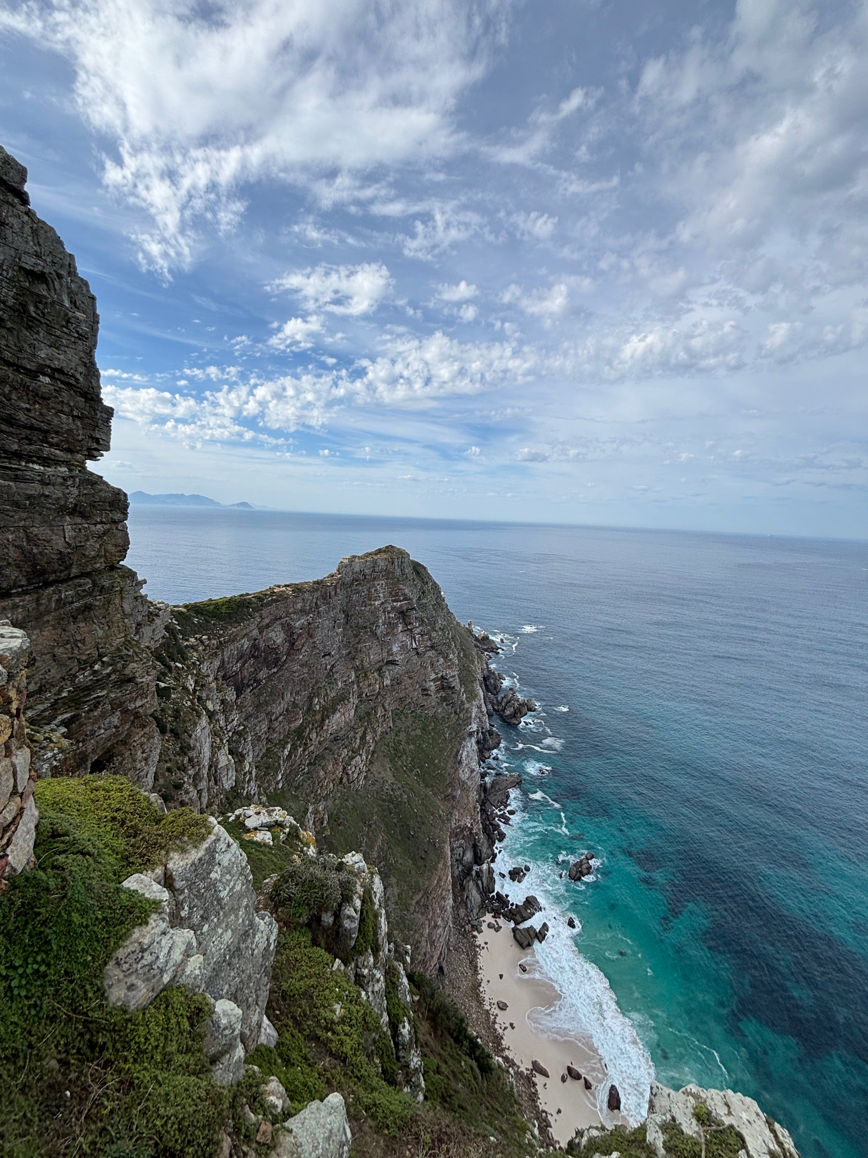 Our second full day in Cape Town wasn’t spent in Cape Town, but rather driving along the coast toward the Cape of Good Hope. All of our stops were still officially in Table Mountain National Park, which seemed to span the entire peninsula. We stopped at a few different lookouts on the drive down, catching sight of various inlets, bays, and views of Table Mountain from different angles.