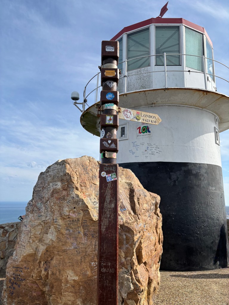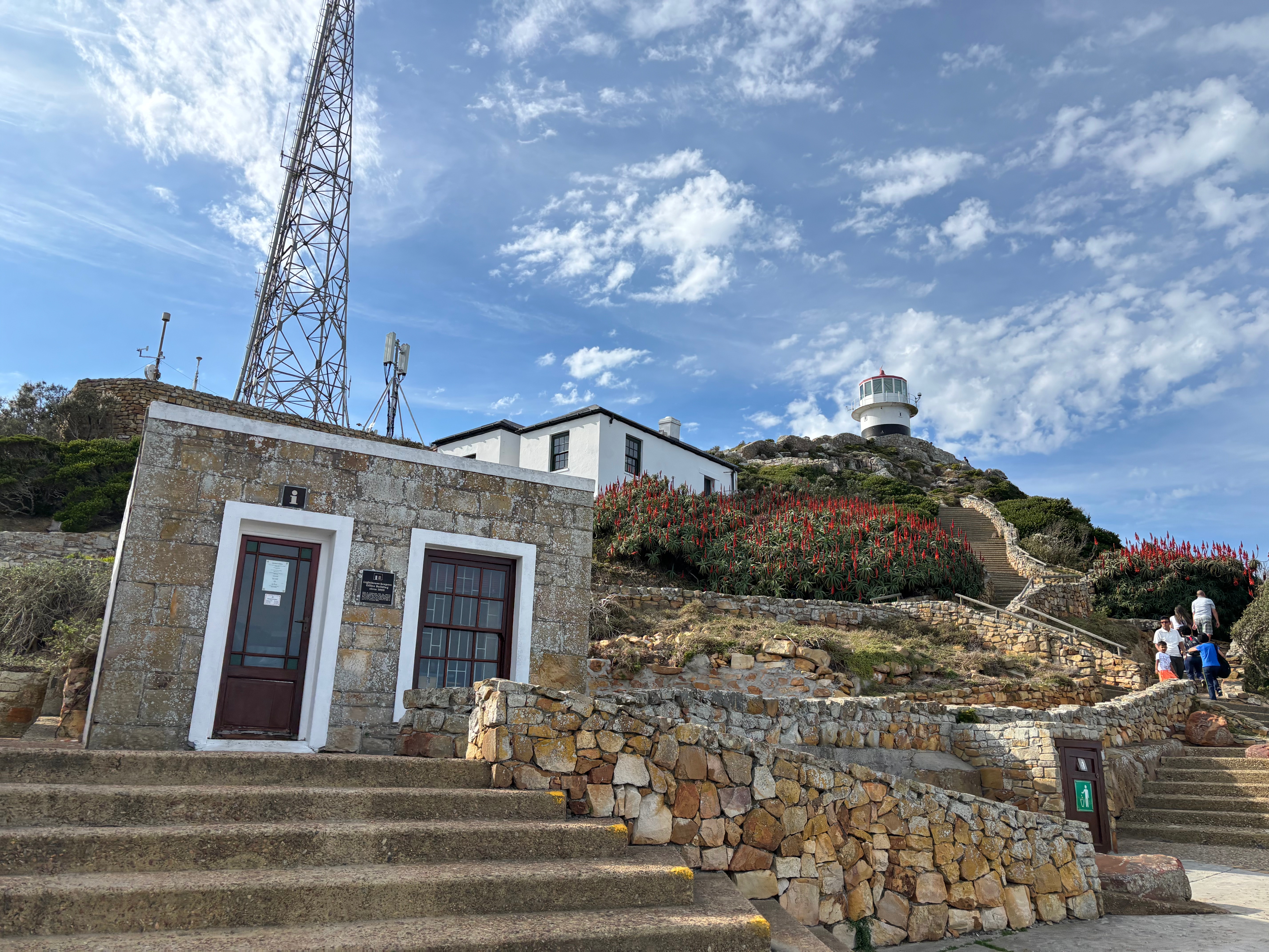 We took pictures with the sign first, just to make sure we got that out of the way before too many groups arrived and started photo bombing. Then, we wandered the beach for a bit before driving up to where we could catch the funicular. We took the funicular up the side of the mountain and then walked around at the top, all the way up to the lighthouse that sat perched atop the point. We got really great views of both directions of the ocean, and a few people even said they could see where the Indian and Atlantic Oceans met (although the official meeting place of the oceans is the actual most southern point of Africa, about two hundred miles southwest at Cape Agulhas).