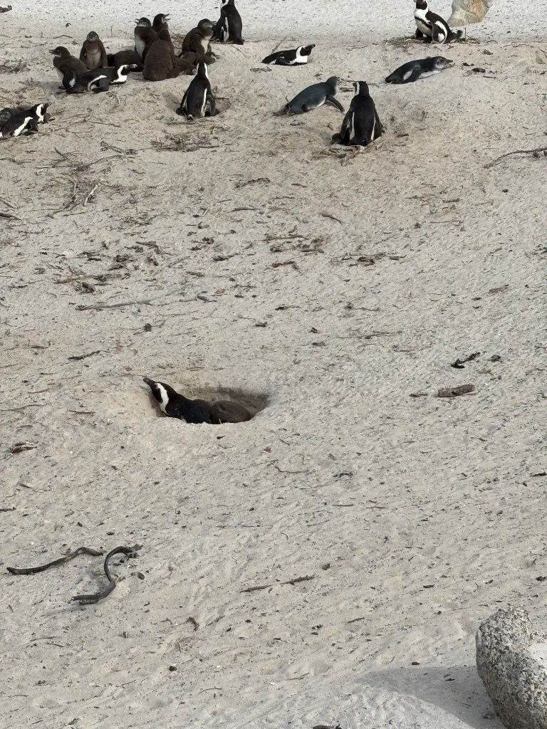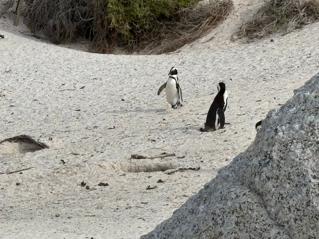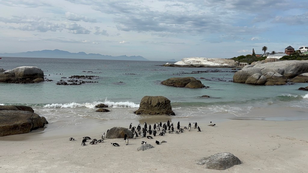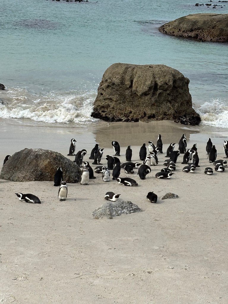 After that stop, we headed to Boulders Beach, where the penguin colony was. The penguins we saw were African penguins, on the smaller end, and the only ones that breed on the continent of Africa. Their nickname is the Jackass Penguin, thanks to the donkey-like noise they make.