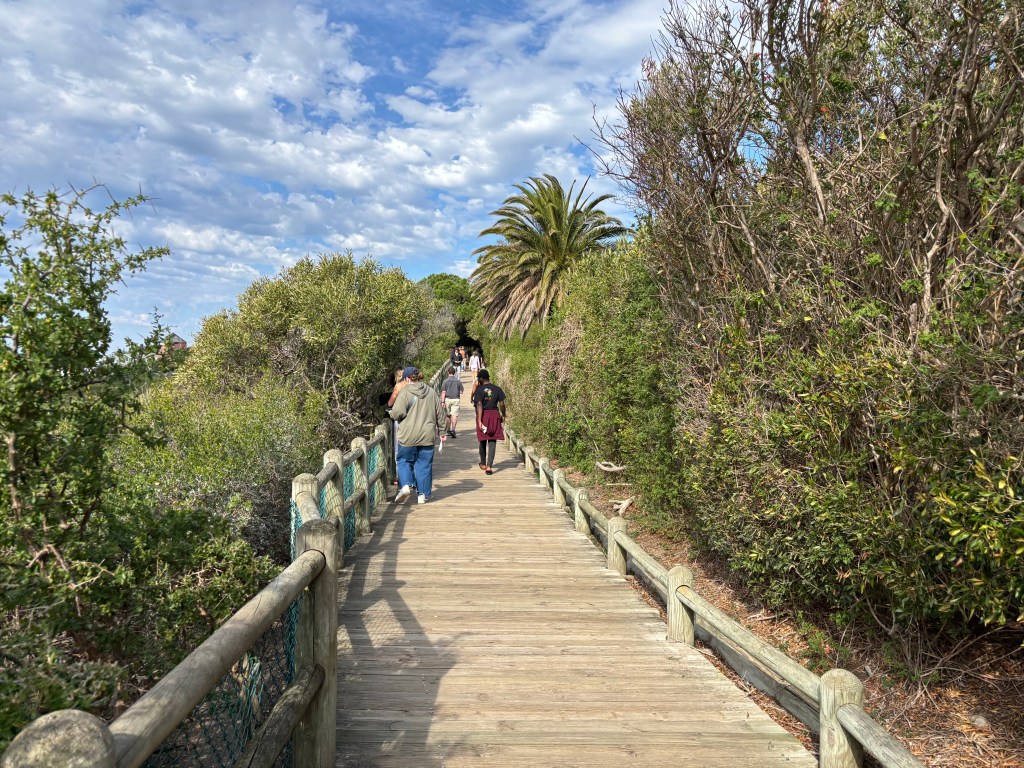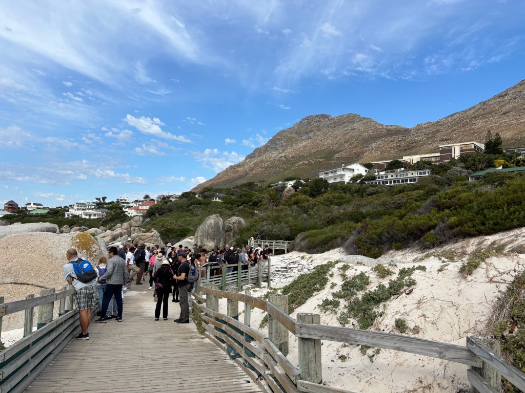 We walked along a boardwalk until we came to the official entrance, passing penguins and nests in the sand beneath us on the way. We spent about an hour wandering various boardwalks set up above the sandy beaches, where below the penguins (with their teenage chicks) hopped along, burrowed themselves in nests, swam, and just generally looked adorable. We also caught another monkey sighting as in the town above, we watched a drama unfold between a baboon and a townswoman’s open window.