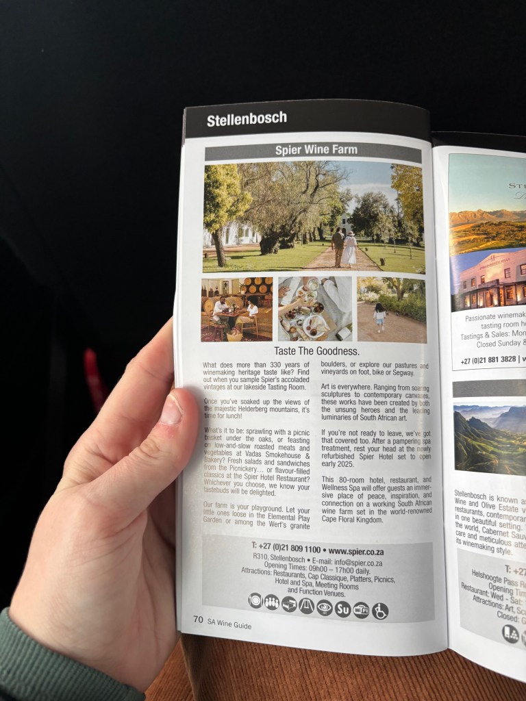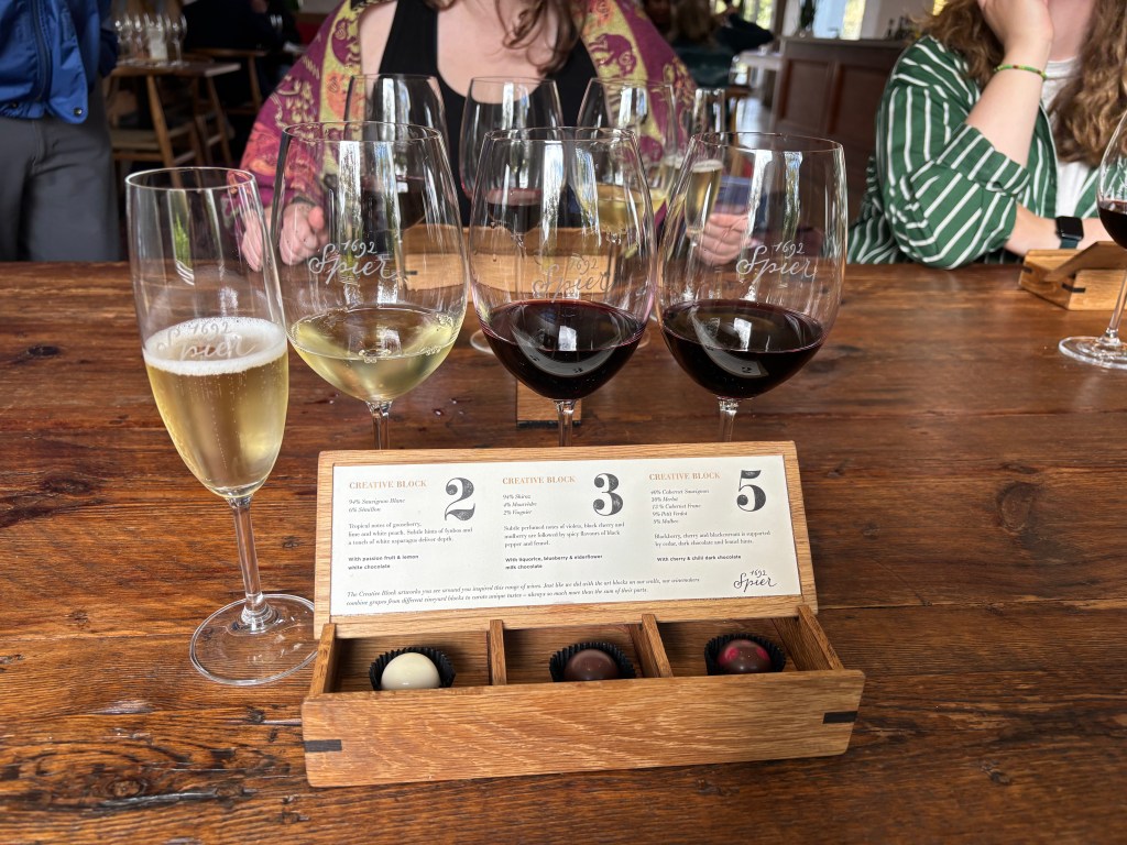 On day 3, we first drove to the town of Stellenbosch, a college town and ritzy neighborhood not far from Cape Town, where we were able to do some more souvenir shopping in cute boutiques and grab some coffee and tea. Stellenbosch is also the area where South Africa’s wine country is situated, and after our short stint in the town, we headed off to Spier Winery for a wine tasting.