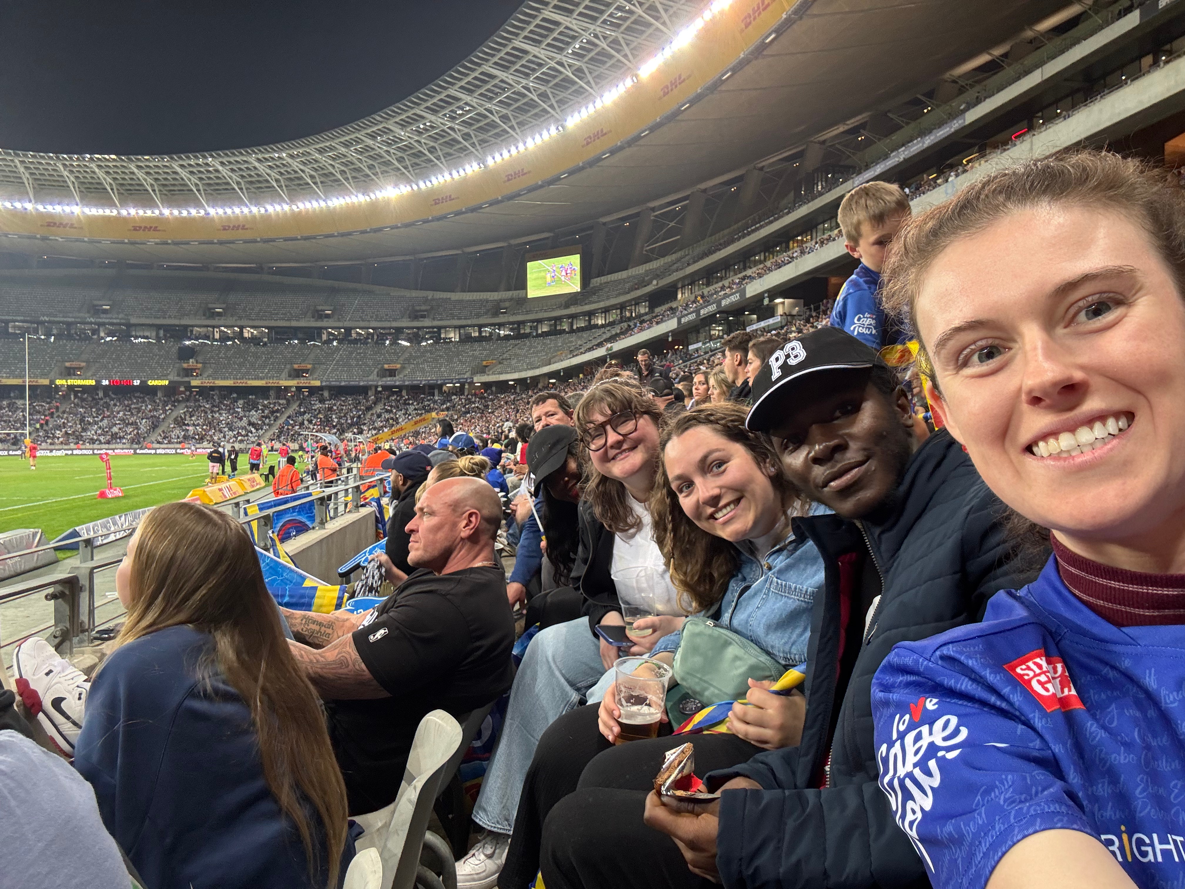 Dr. W had heard from the program alumni that there was a local rugby game going on that night, and he asked us if we wanted to go. Wanting to experience the local culture, all of us jumped at the chance to attend the match. So after dinner, we walked over to the stadium, only a short distance from where we were staying, and cheered on the DHL Stormers. Every time the team won, a small remote control DHL truck was driven onto the field, which was such a random and fun sports team’s celebration tradition. During one of the intermissions, I went to the gift shop and bought myself some sports gear, because I love being a fan. Our team ended up winning heftily, and we walked back to our hotel in a great mood.