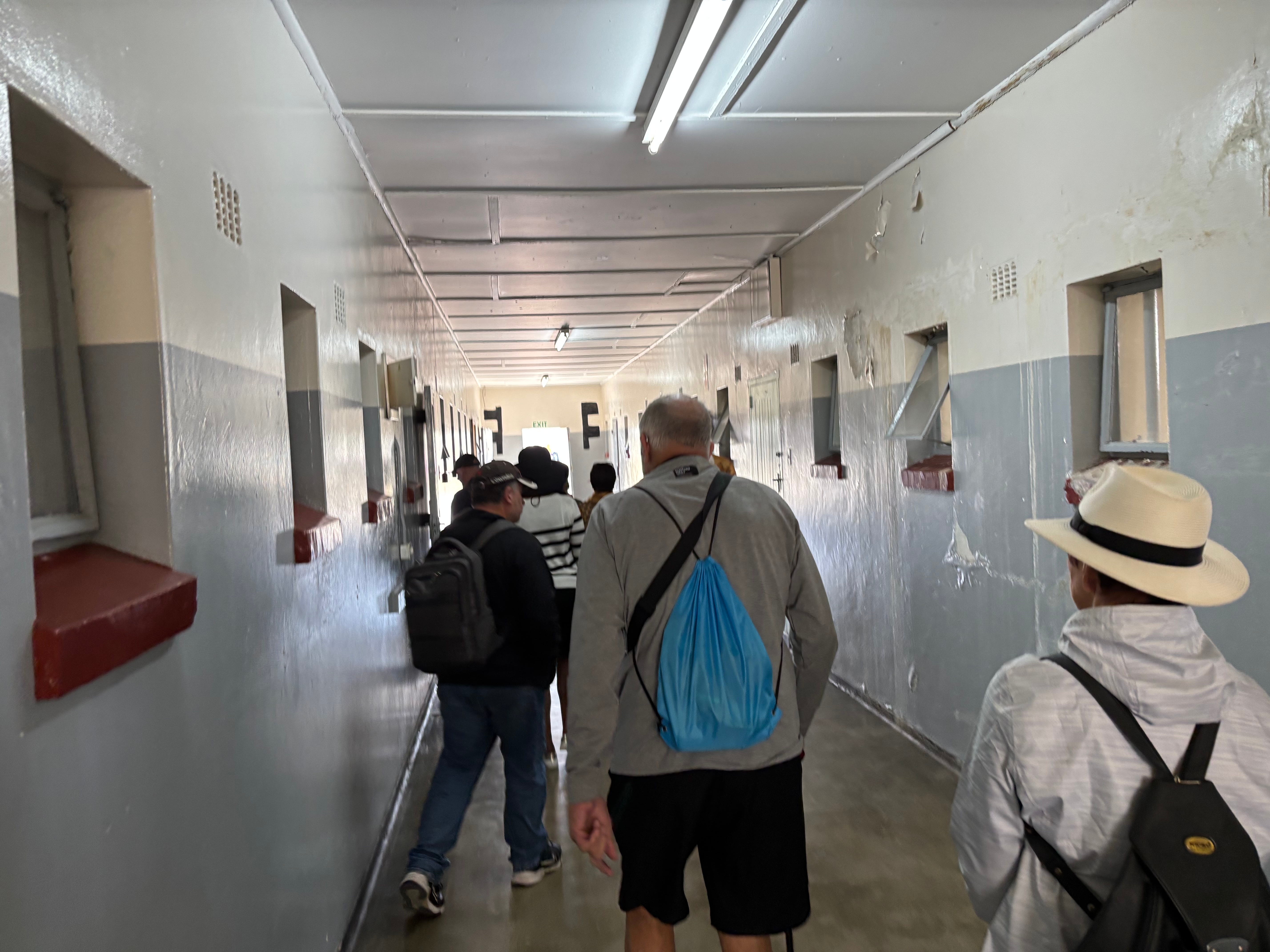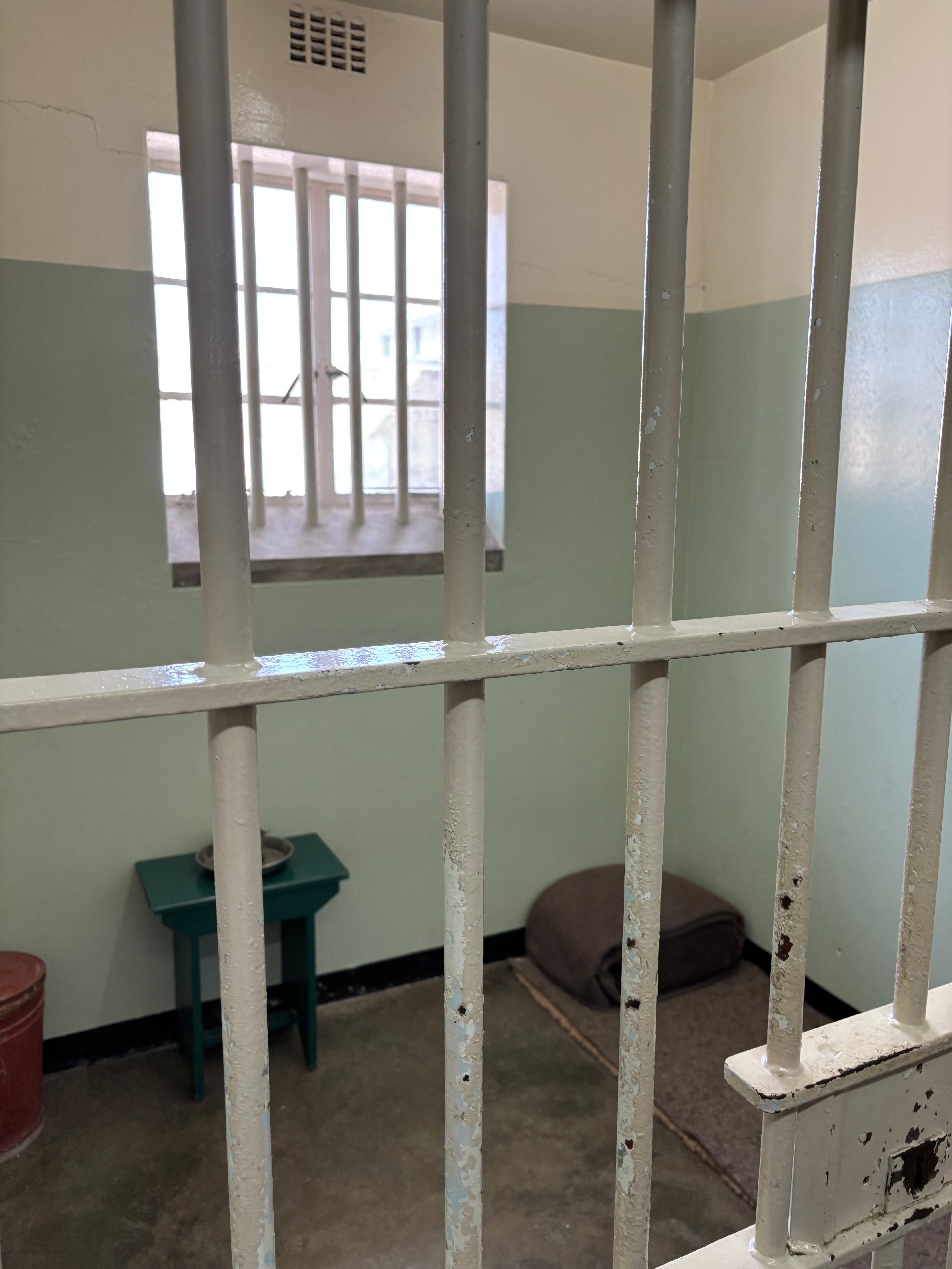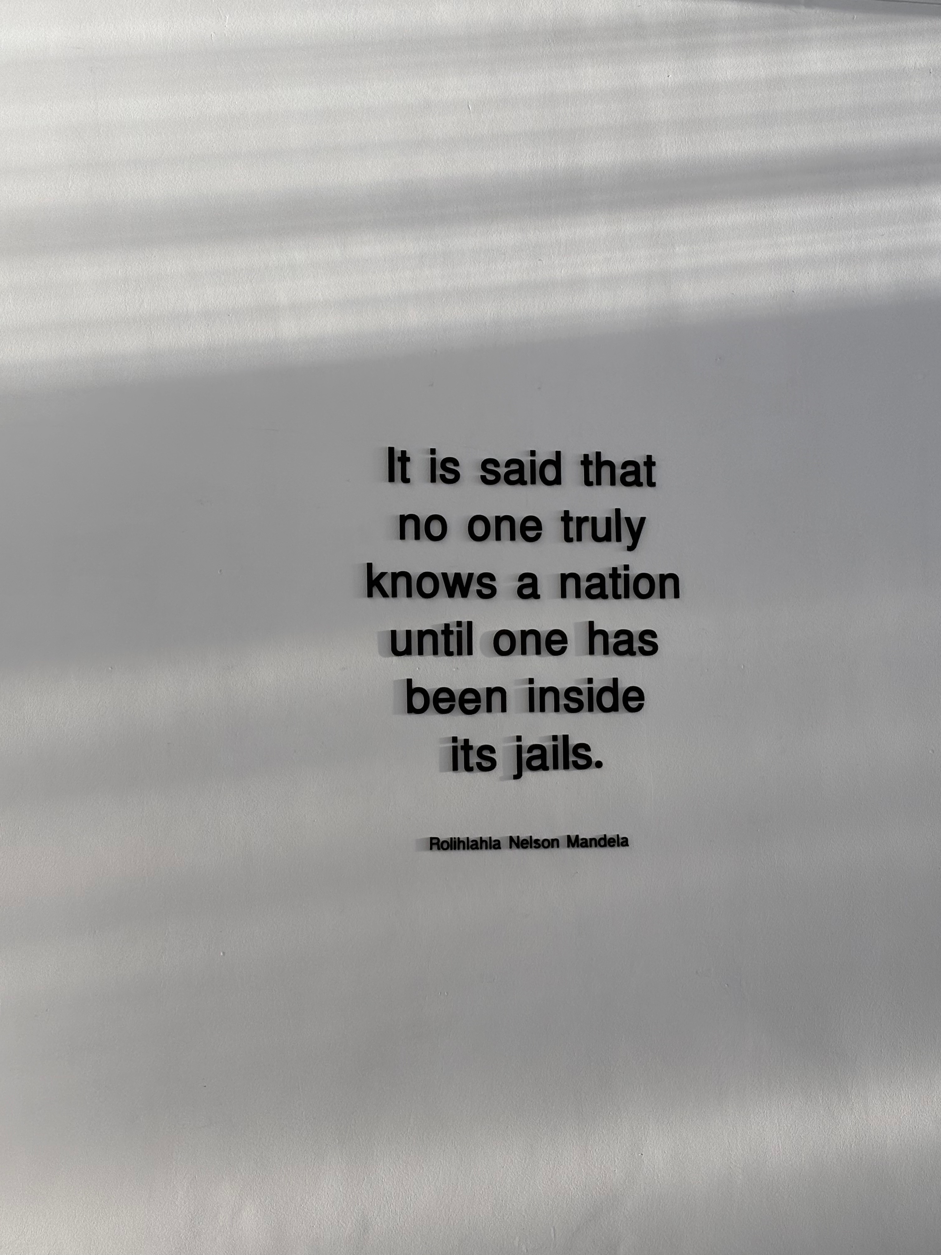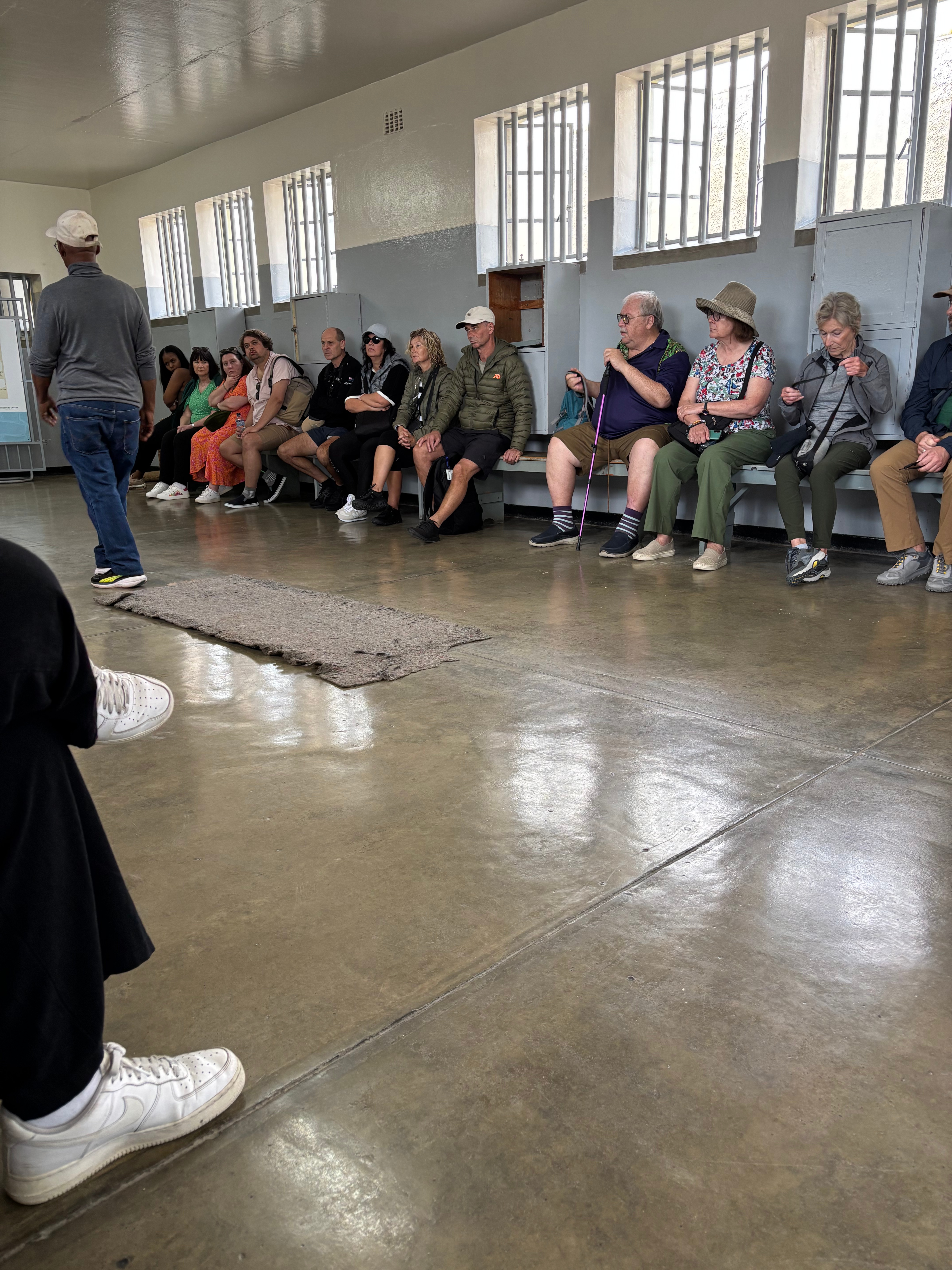 He gave us an introduction outside, then brought us into a room where prisoners would have slept on the floor. There, he recounted his various experiences. Finally, when that was done, he took us through the rest of the prison, including Nelson Mandela’s single-person cell. We were let out into the prison yard where, as we were leaving, he asked to shake each one of our hands to thank us for listening to his story and sharing the message of peace and advocating for an end to systemic oppression.