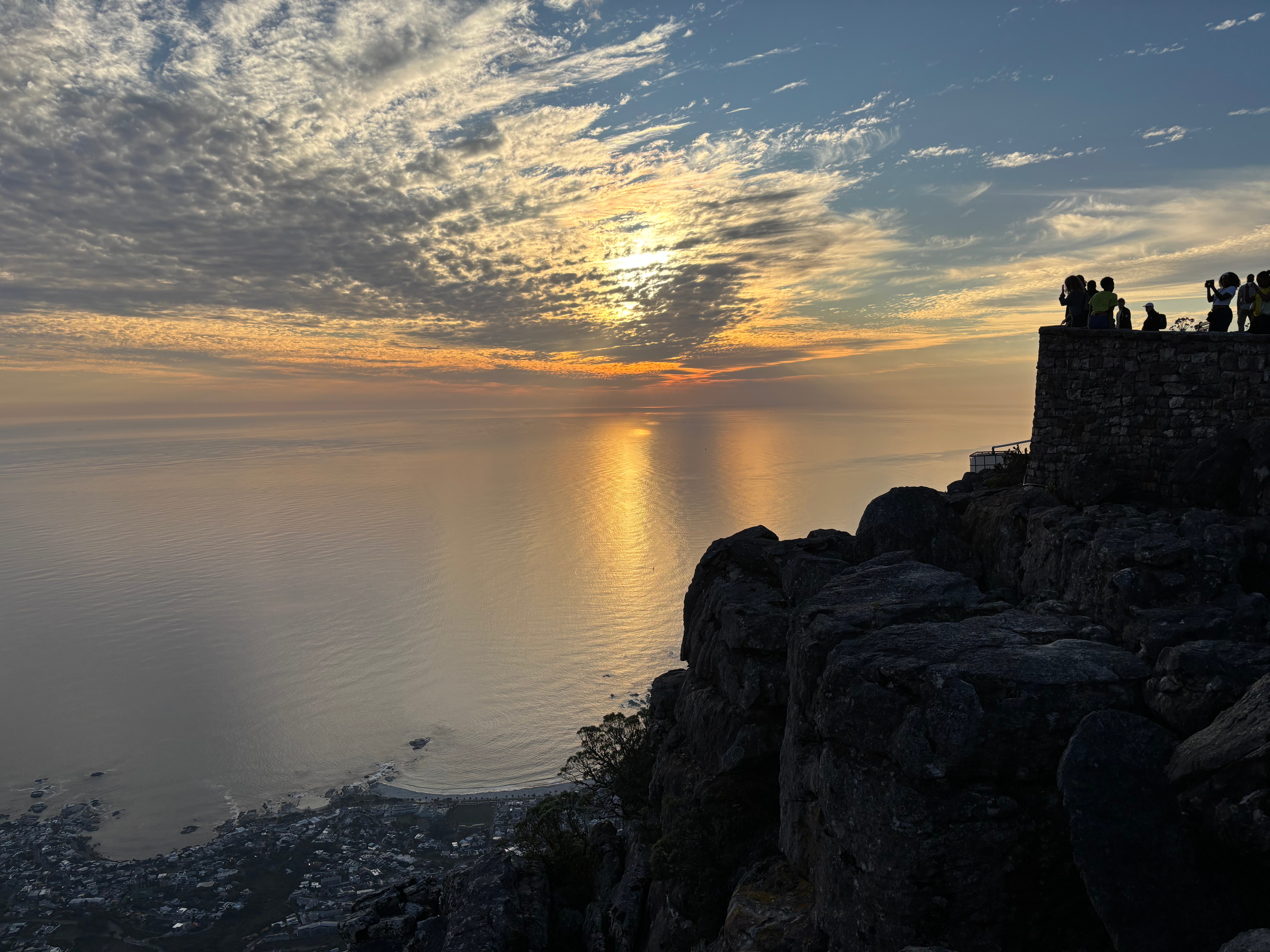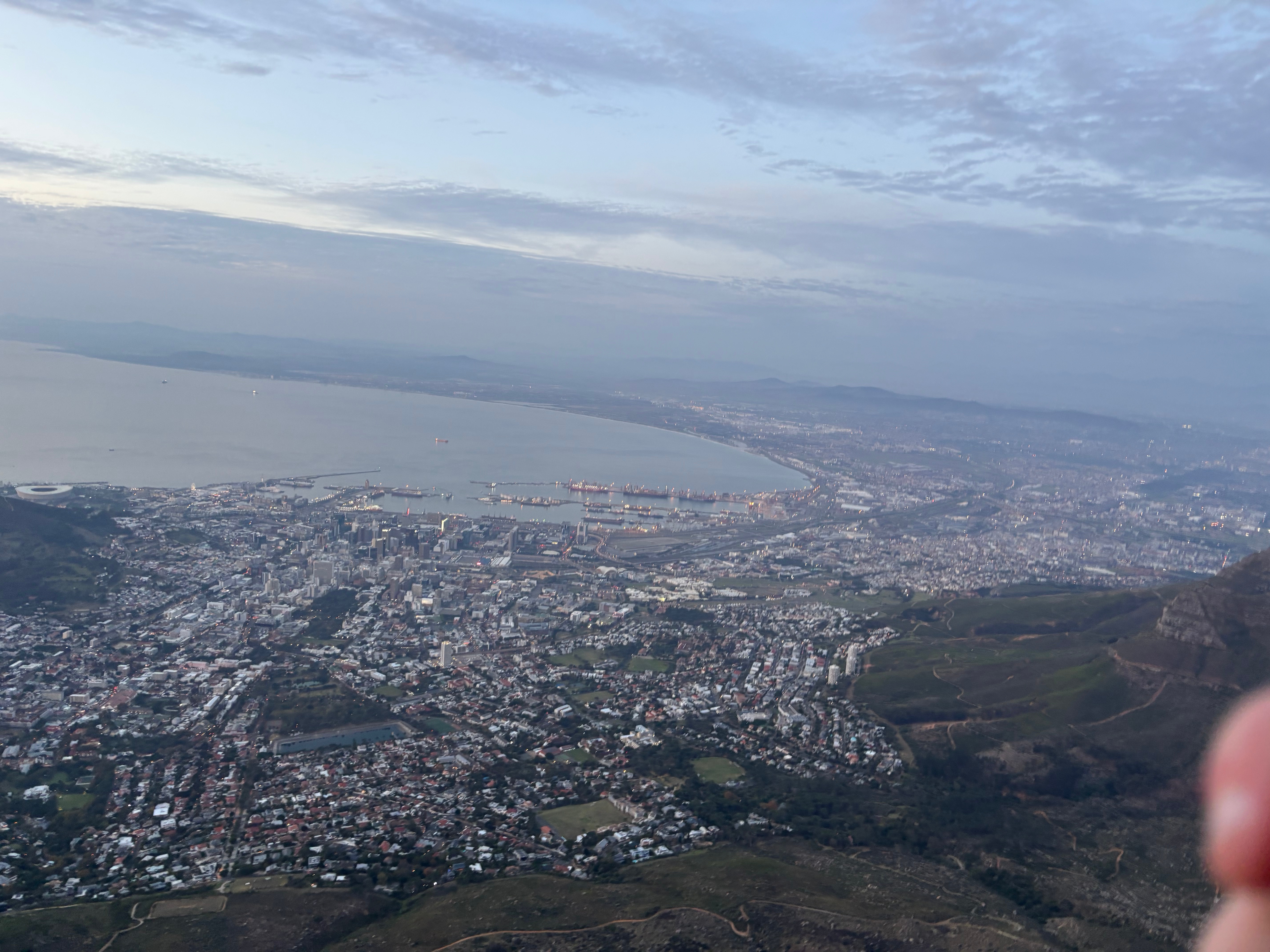 We got off the plane and started our drive to our hotel, catching sight of Table Mountain, the main geological feature of the area. It was a stark contrast, driving from the airport to our hotel, because we passed areas of extreme poverty before entering the city and finding ourselves in a wealthy shopping district. While we had seen some of the extreme poverty while in PE/GQ, especially around the medical school buildings, the contrast between Cape Town and the surrounding townships was much starker. It was the first of a series of extreme contrasts that we experienced during our time in Cape Town, and an important observation when considering all the things we’d learned about South Africa in our preparation and time there.