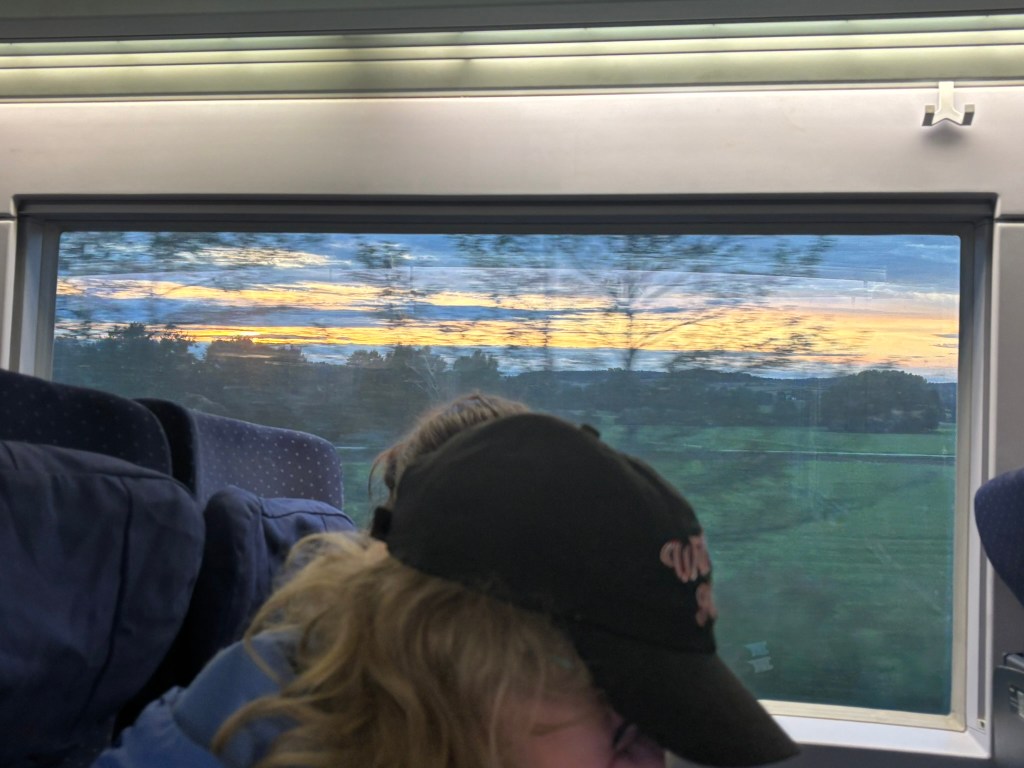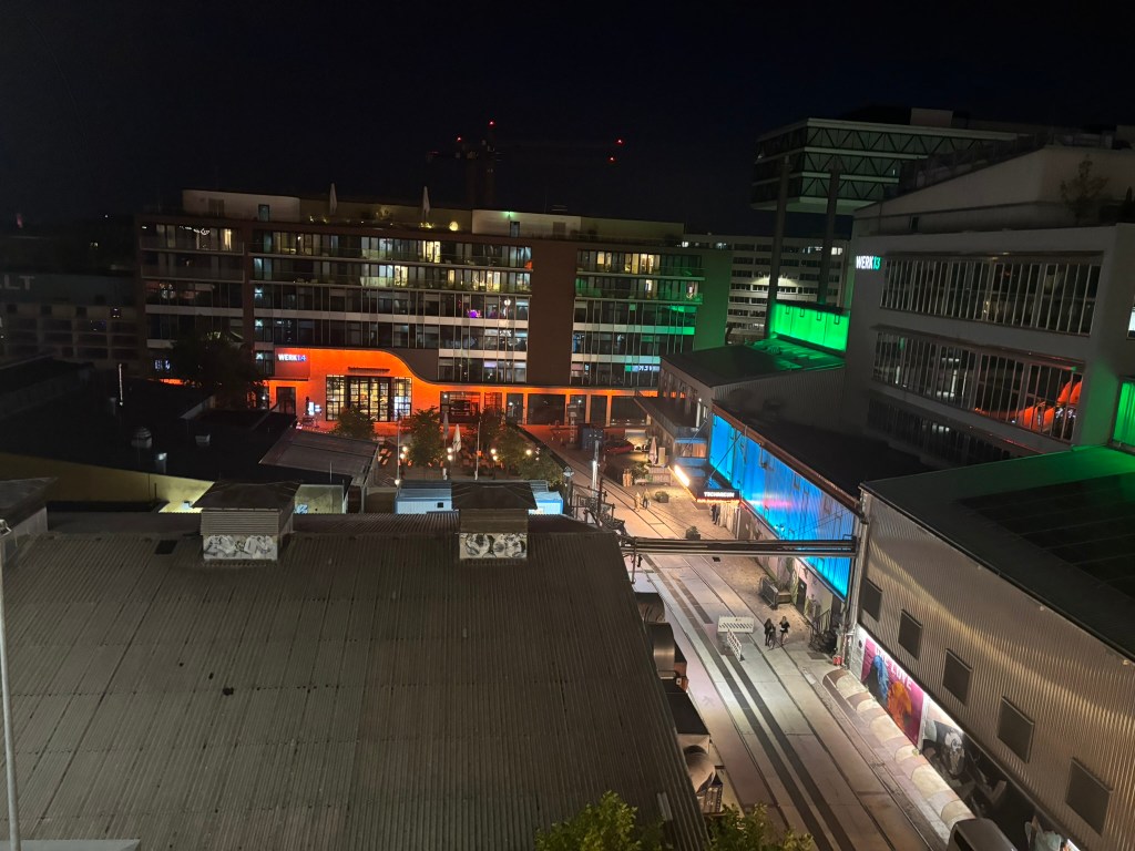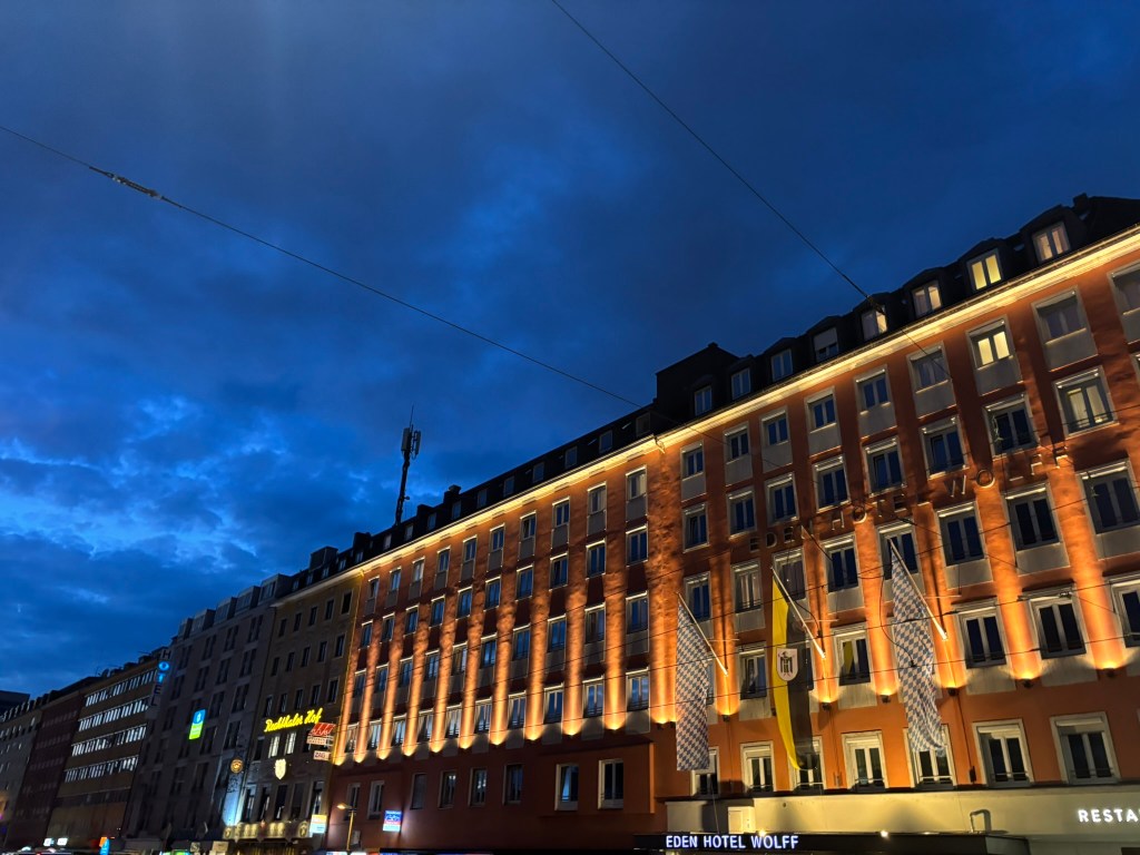 After the hour-ish long train ride, during which we caught sunset, we arrived in Munich in the evening and immediately made our way to the hostel.