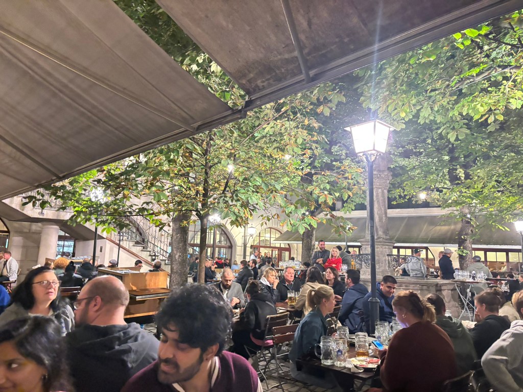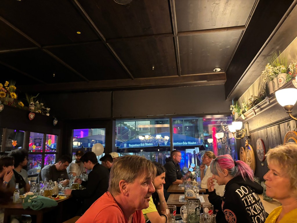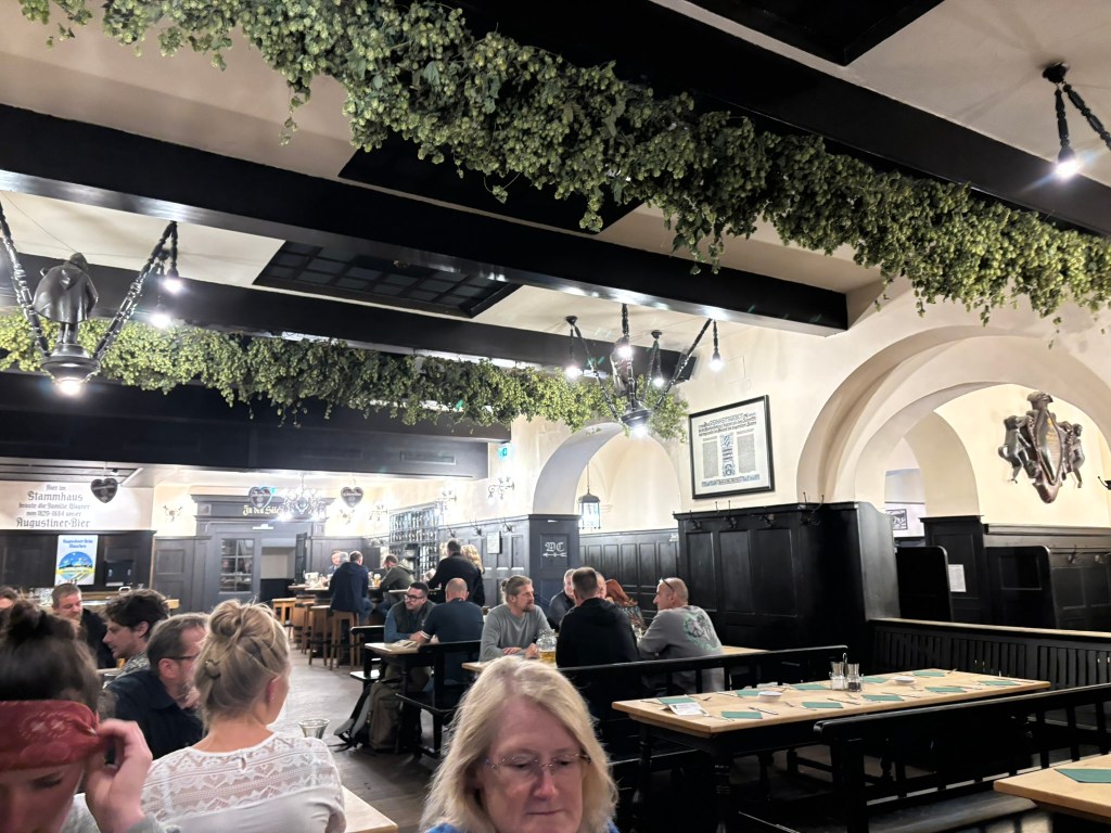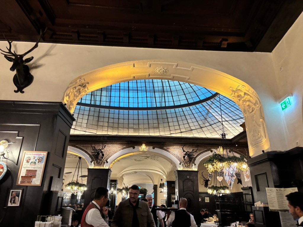 Once we checked into the hostel, we met up with Mark, his mom, and his sister. They’d eaten already, but we hadn’t. They were happy to join us on our first adventure, one of the staples of Munich, the Hofbräuhaus Beer Hall. After the beer and the dinner, we headed back to the hostel and immediately fell asleep.